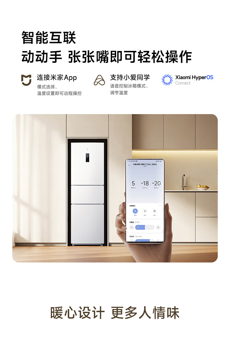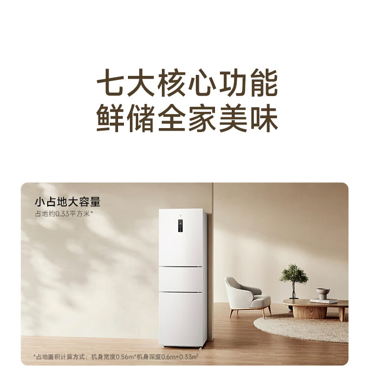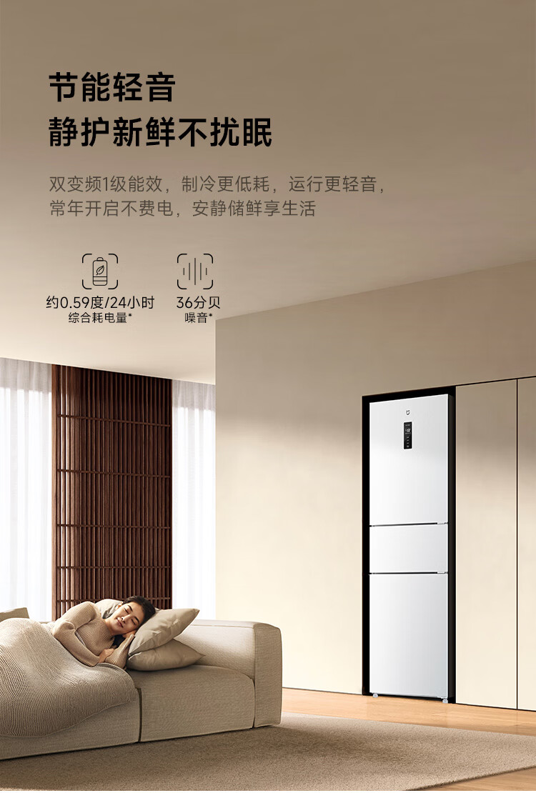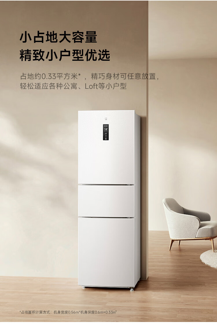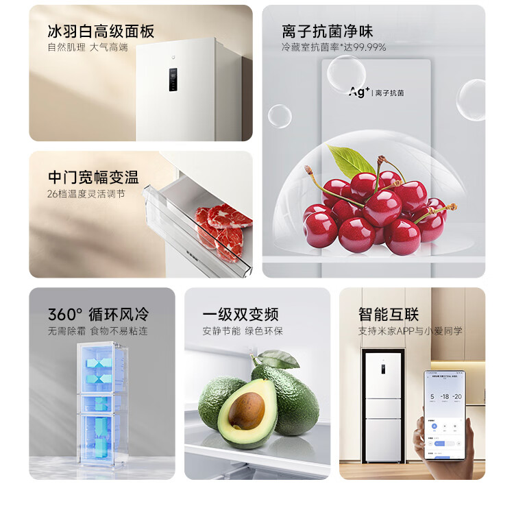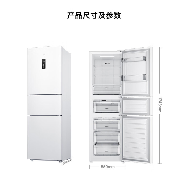 米家小米256升变频一级风冷无霜三门小型家用电冰箱 白色银离子除菌净味BCD-256WMSA01