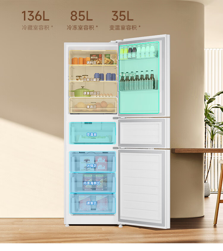 统帅(Leader)海尔出品三门三温三开门家用电冰箱218升 一级双变频风冷无霜黑金净化宿舍租房办公室国家补贴20% 【省电王】2天仅约1度电 冰箱