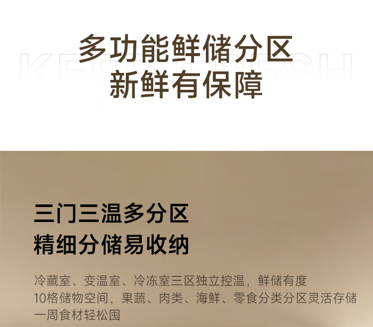 海尔(Haier)国家补贴20%太白310升风冷无霜黑金净化三档变温抽屉式三开门家用电冰箱一级能效节能变温以旧换新 【咨询领补贴】BCD-310WGHD3E7WV