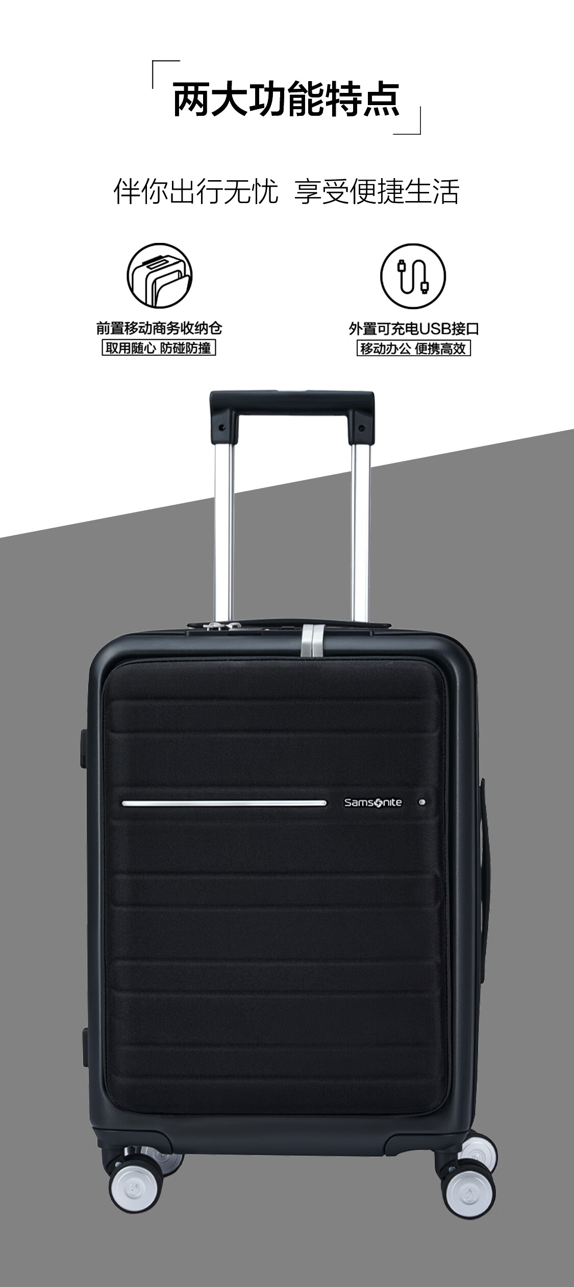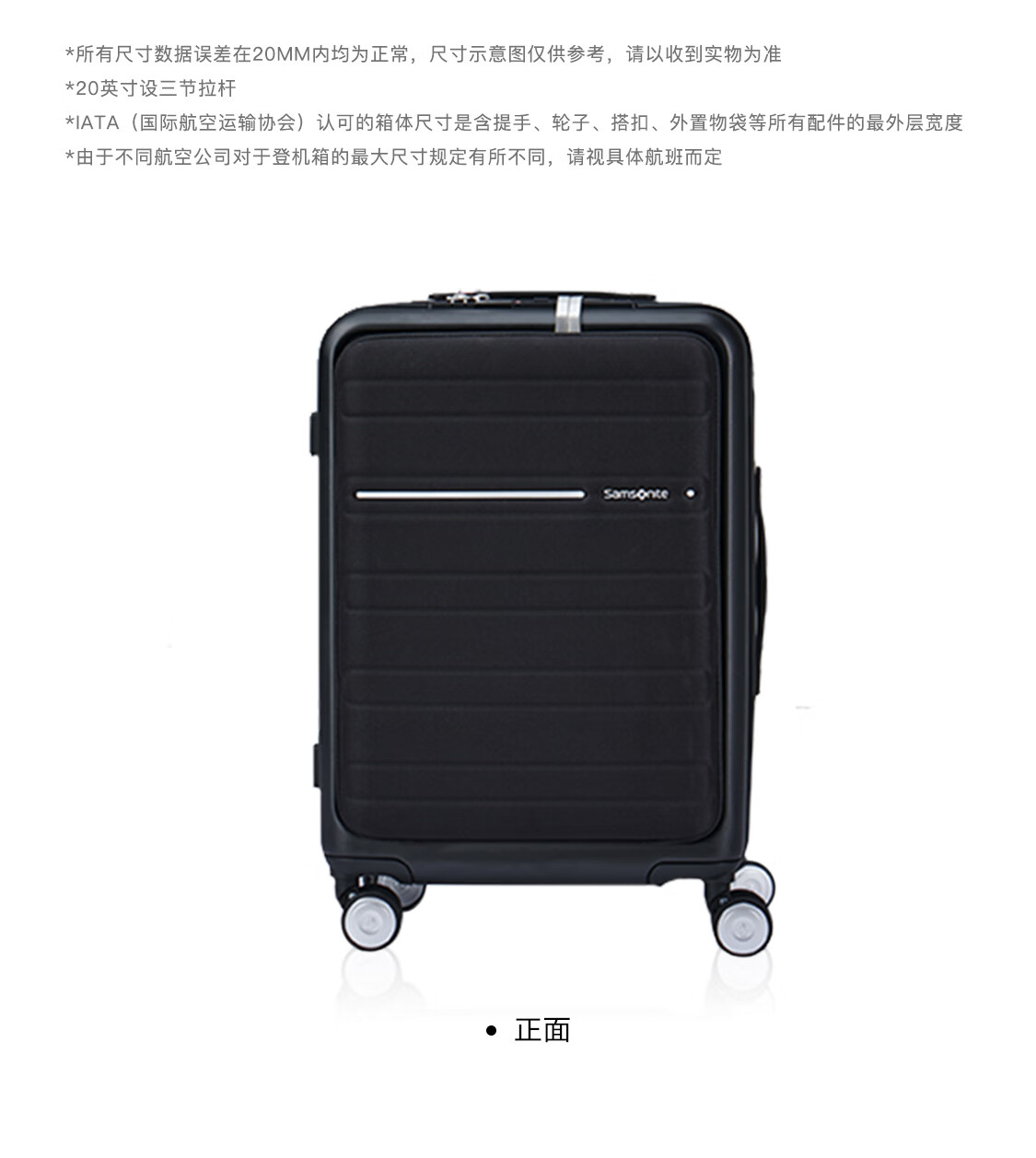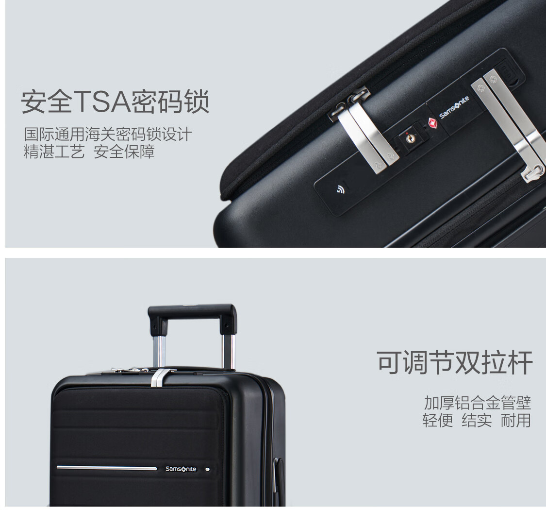 新秀丽(Samsonite)行李箱20英寸拉杆箱商务旅行箱前开口密码登机箱黑色TD8