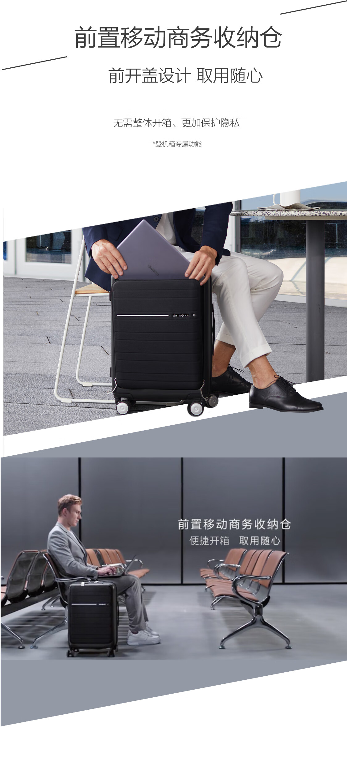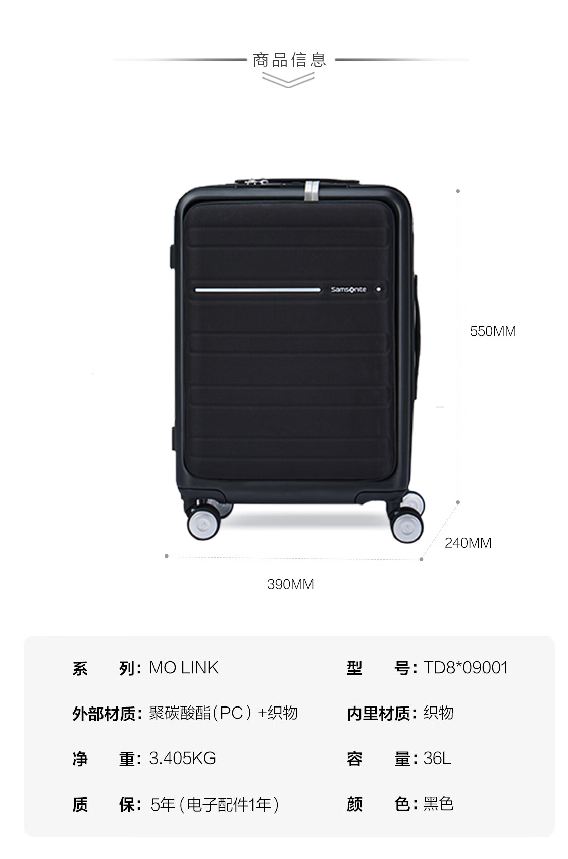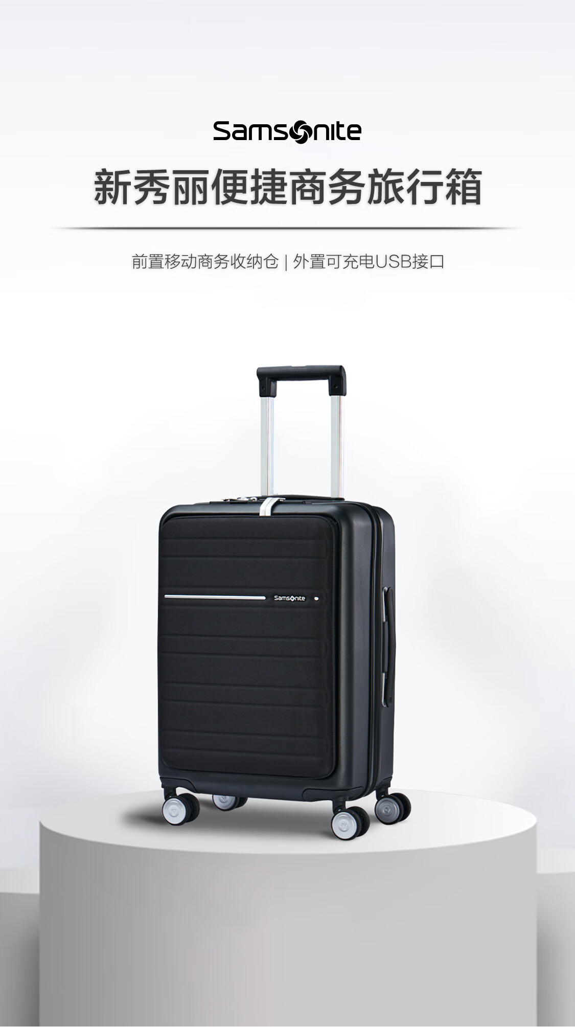新秀丽(Samsonite)行李箱20英寸拉杆箱商务旅行箱前开口密码登机箱黑色TD8
