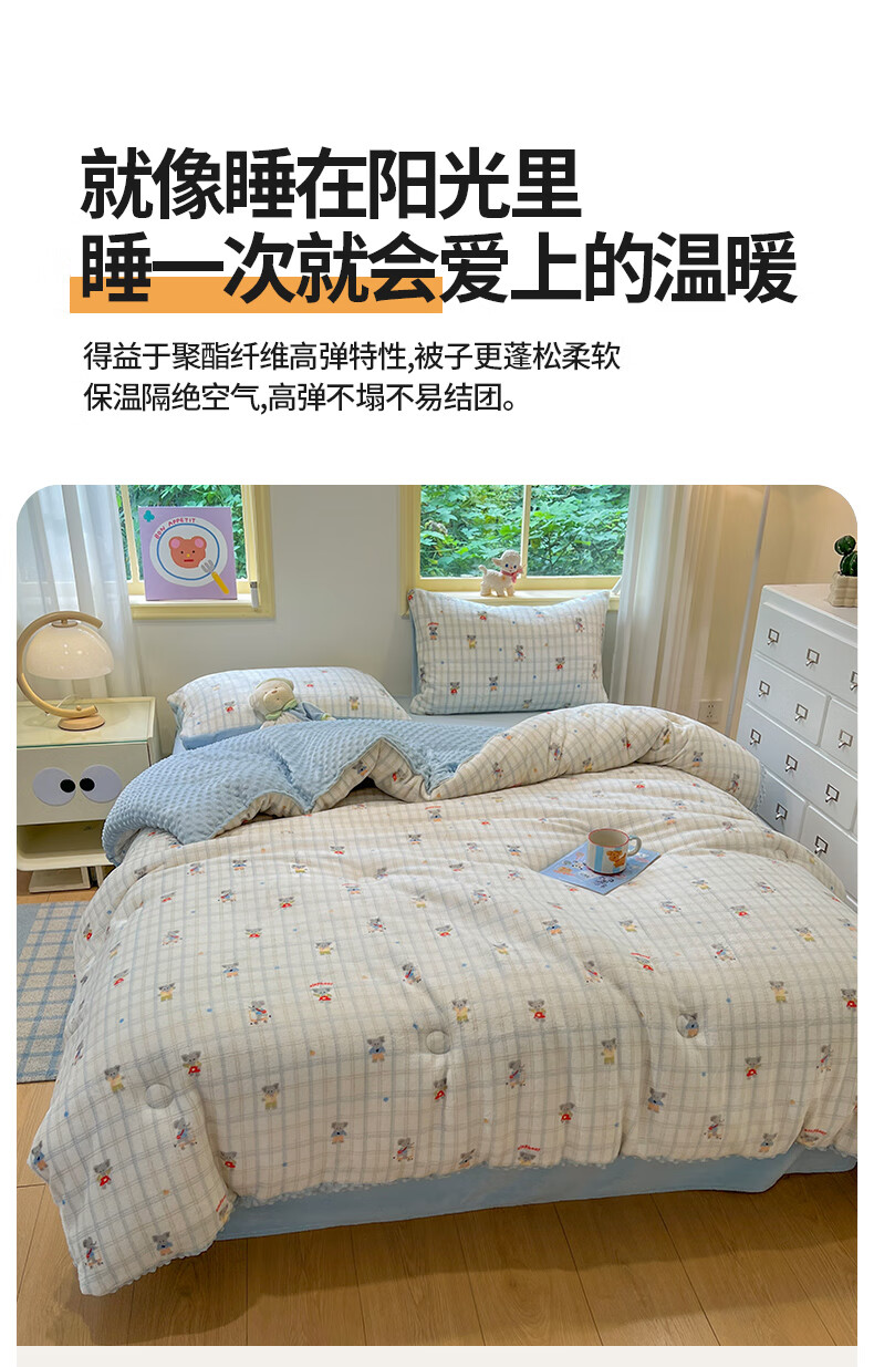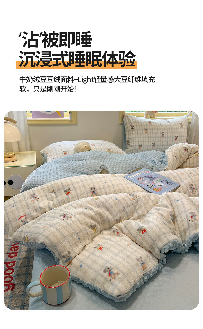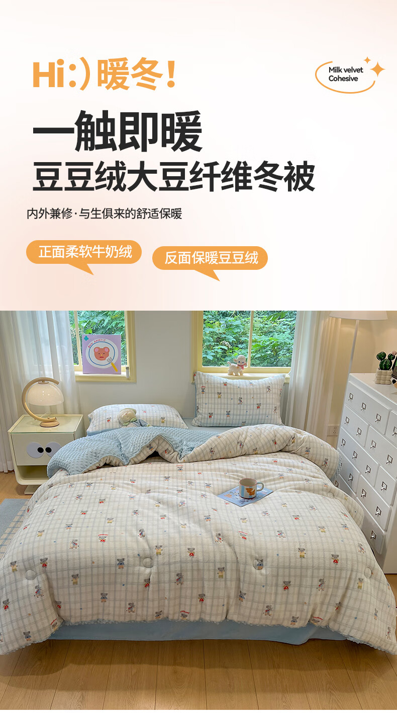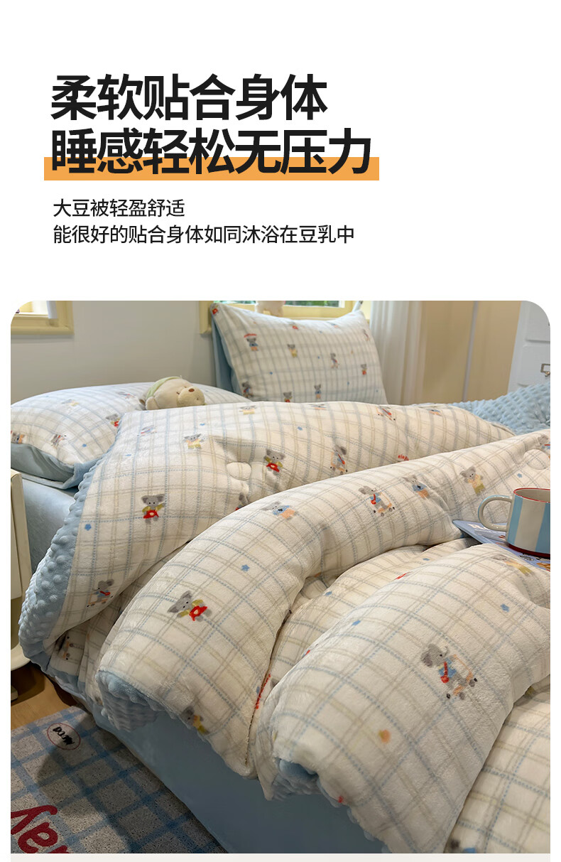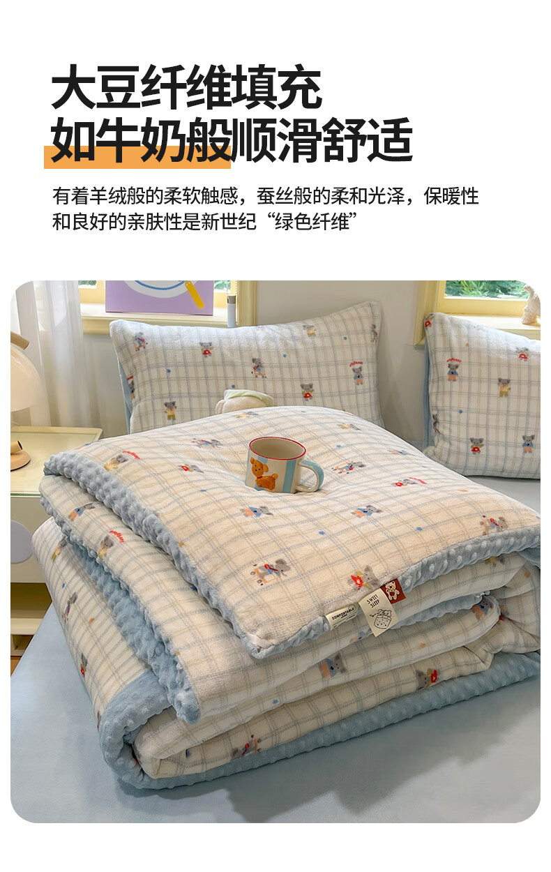 苏萱大豆纤维2025新款牛奶绒豆豆被加厚保暖被子冬被单双人儿童棉被芯 粉粉蕾丝熊 150*200cm春秋被【约重4斤 适合室温15-25℃】