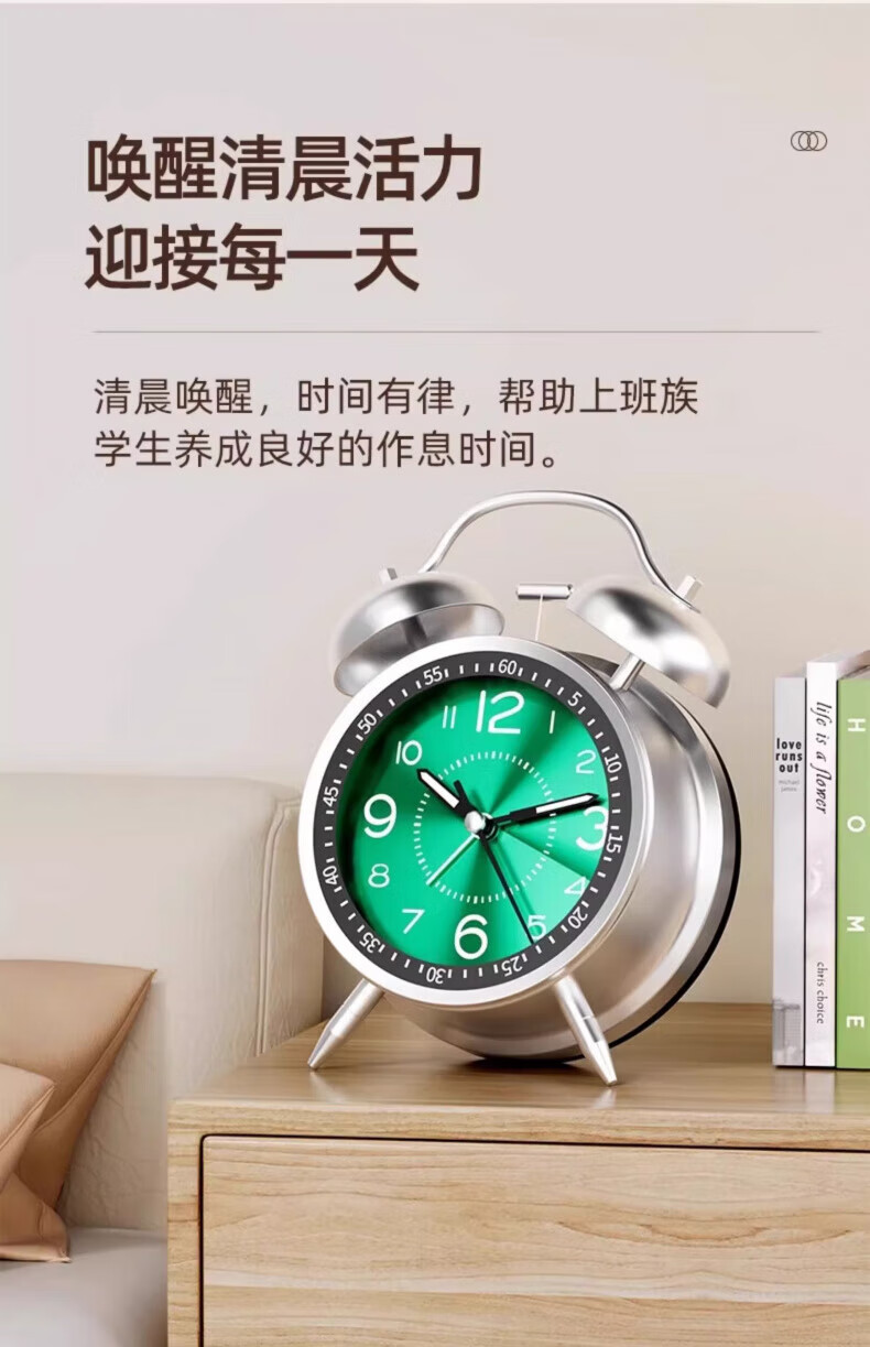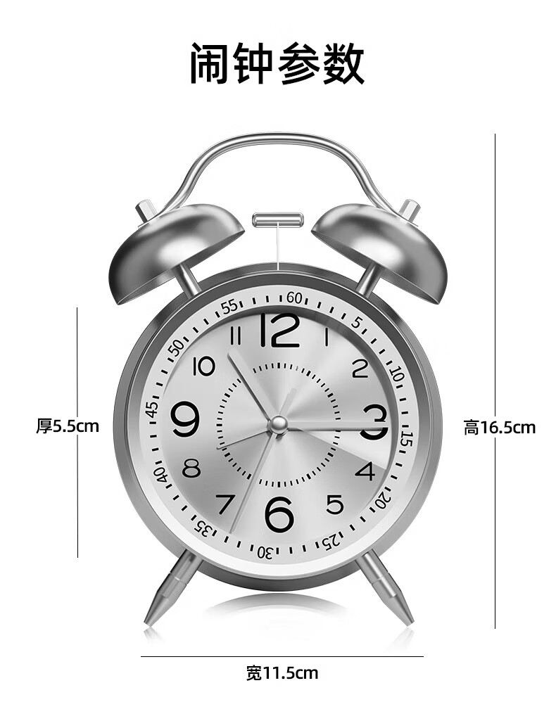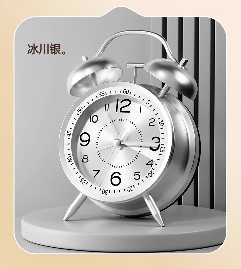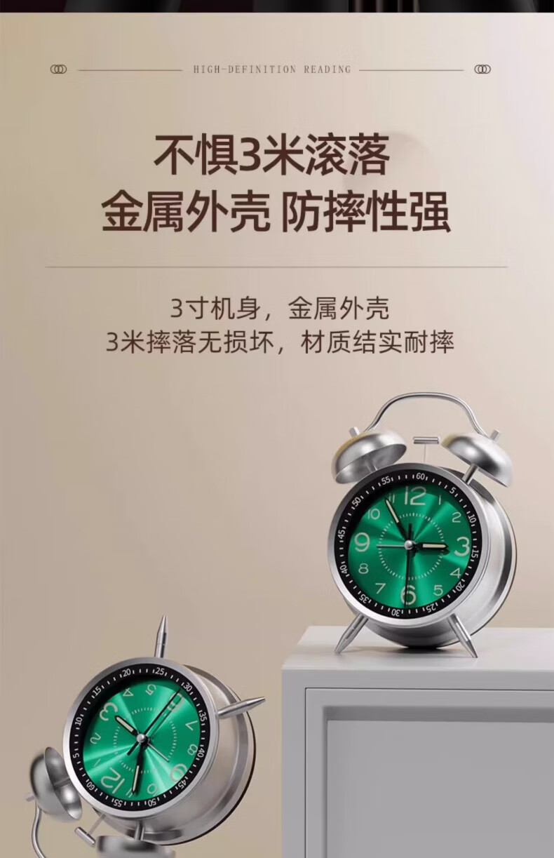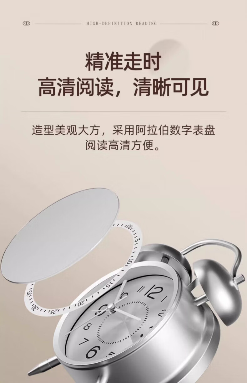 DEATKN德国机械闹钟老式起床初高中学生老人强力叫醒充电小闹铃 品质大号夜光-冰晶白【夜光钟面】+含电池
