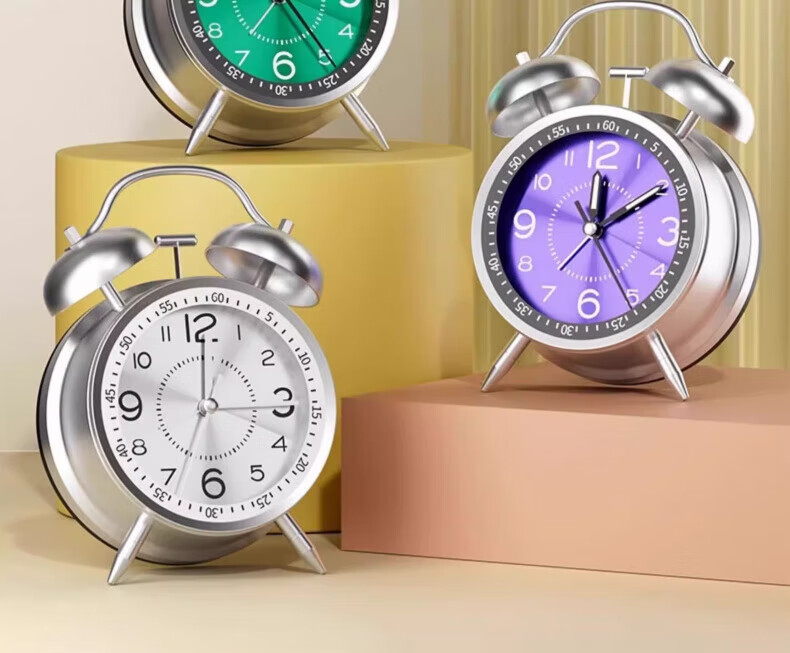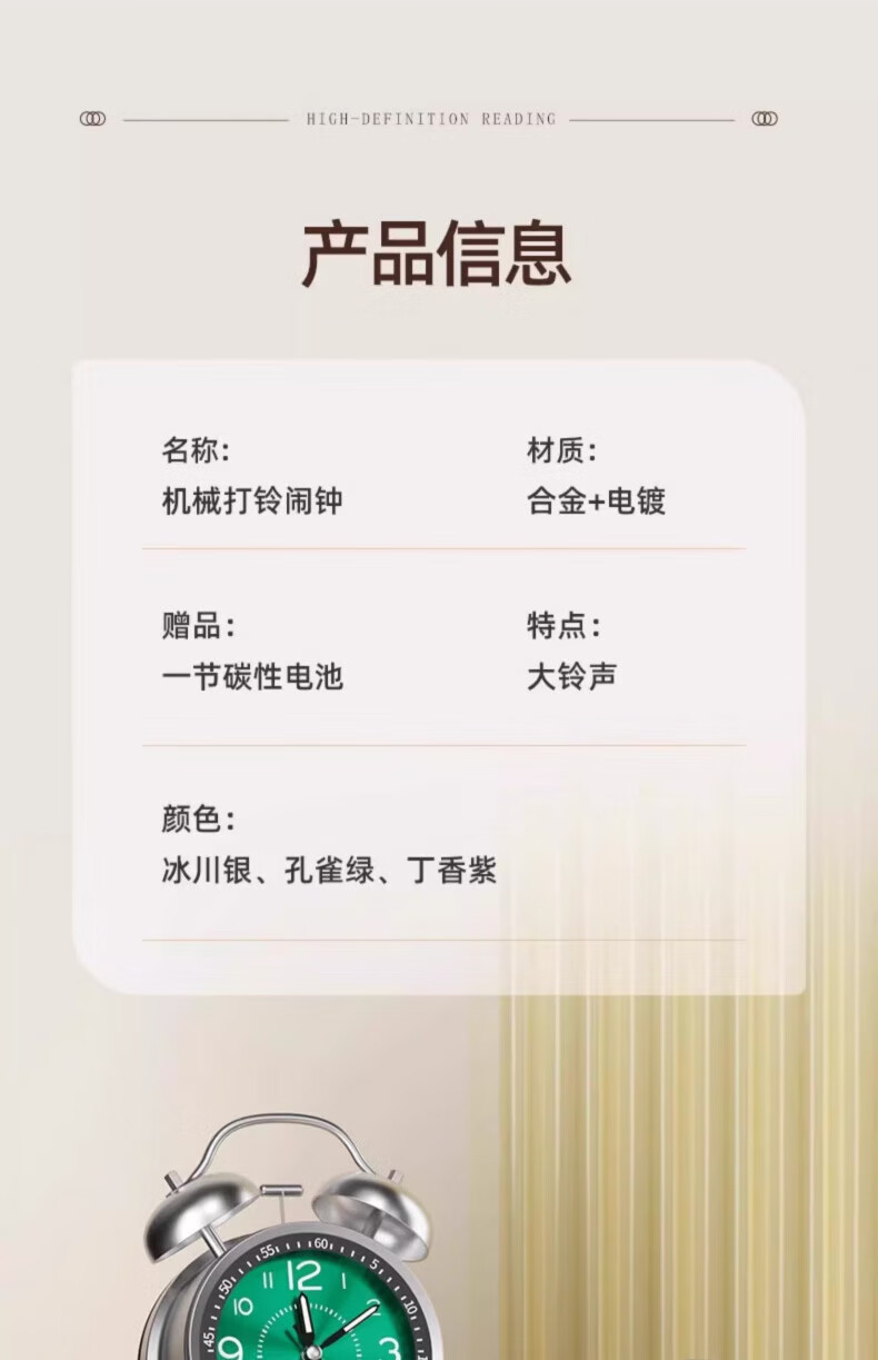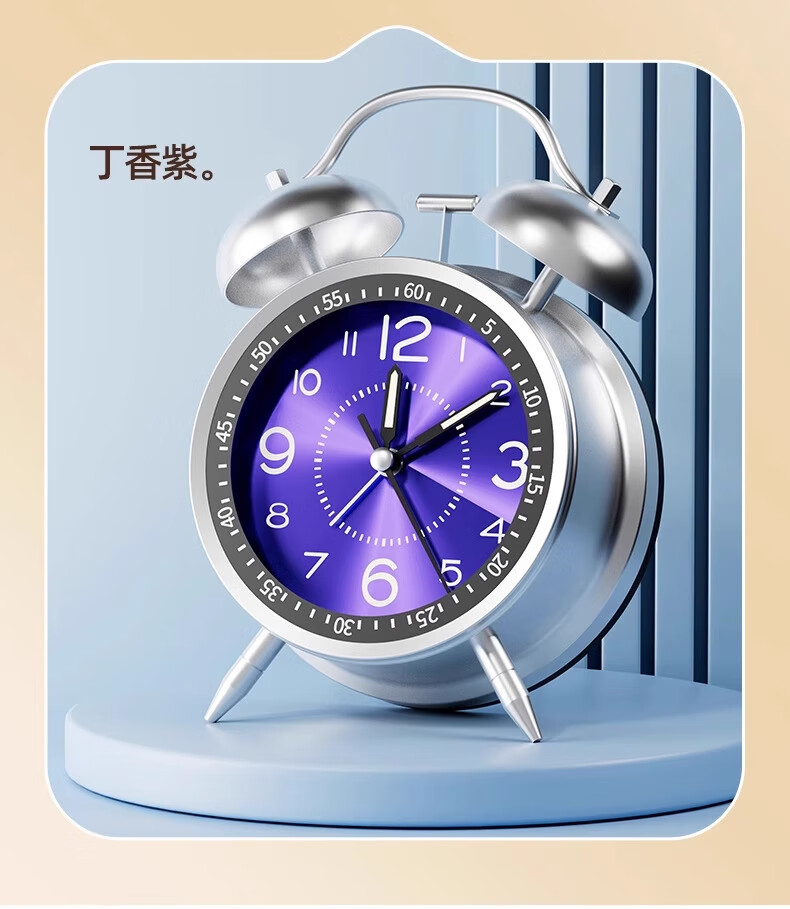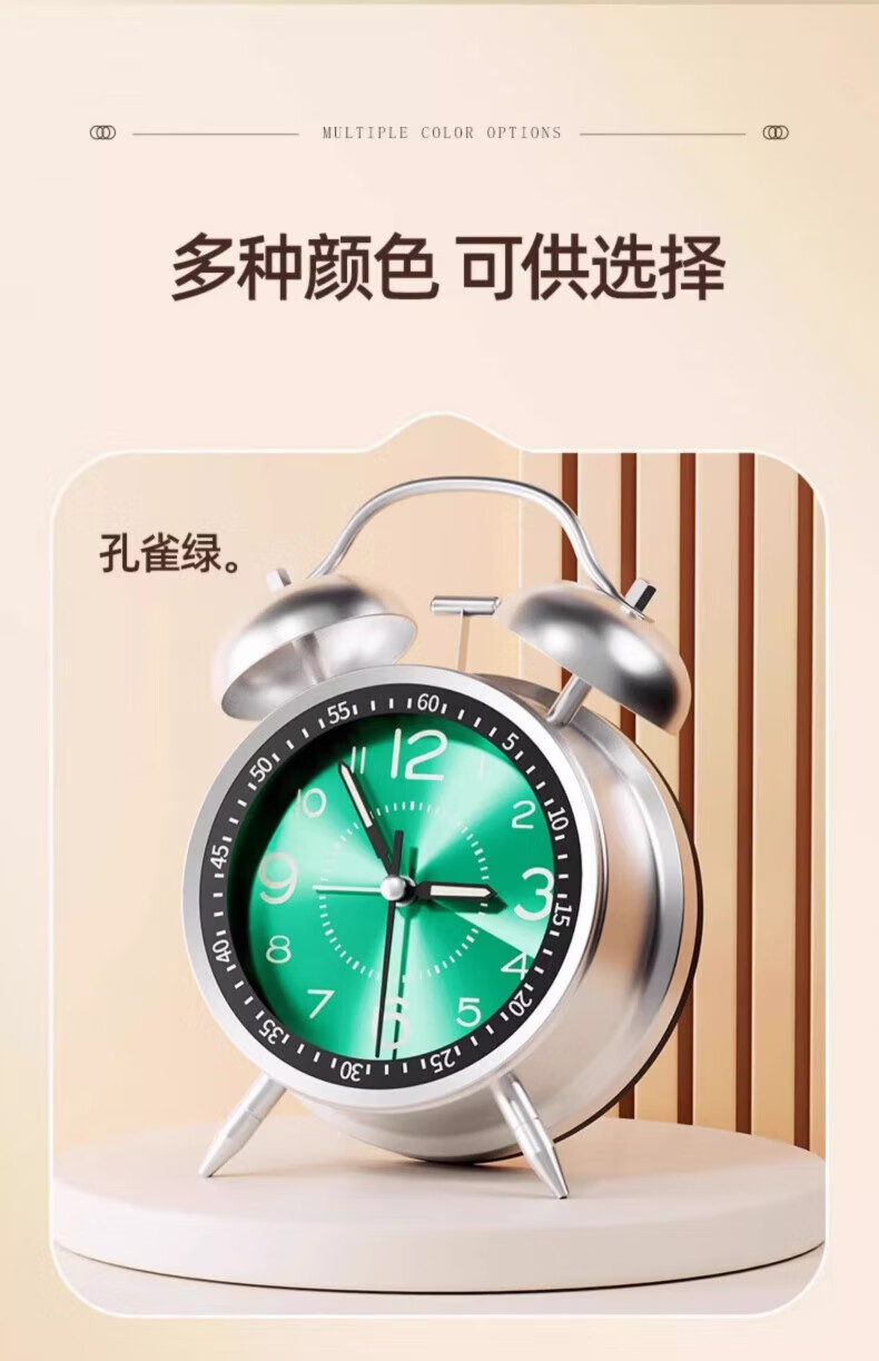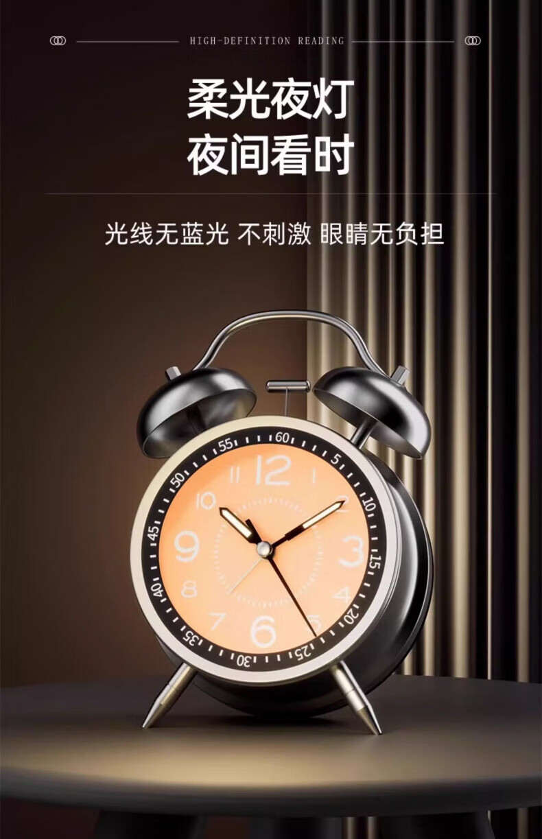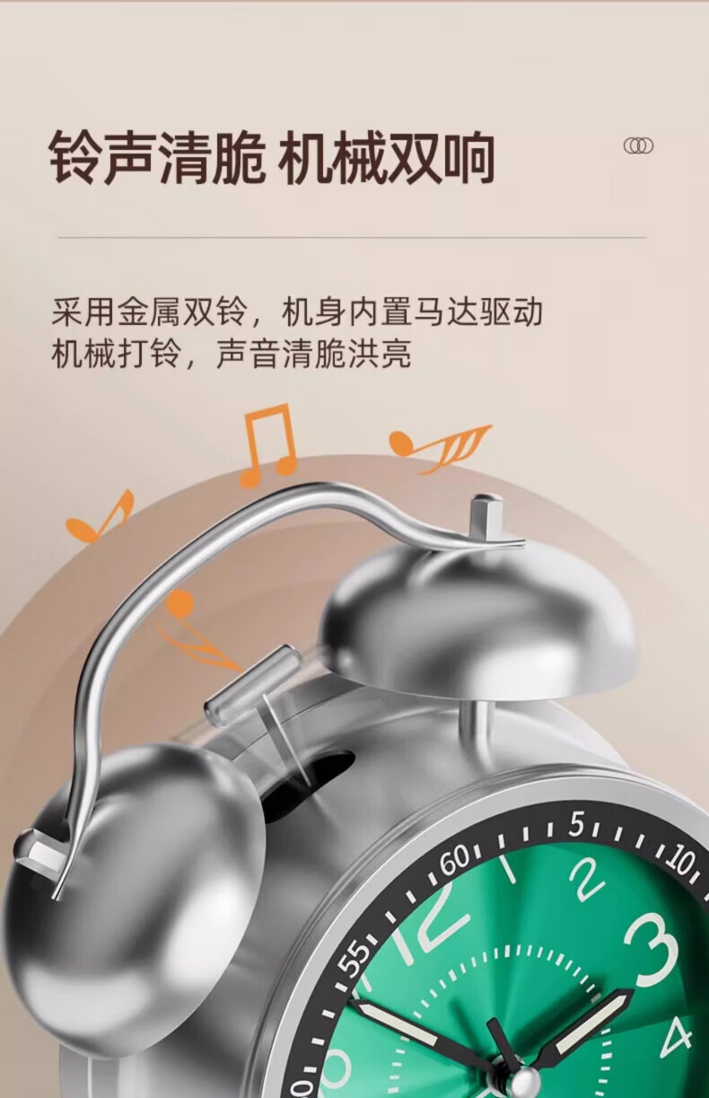 DEATKN德国机械闹钟老式起床初高中学生老人强力叫醒充电小闹铃 品质大号夜光-冰晶白【夜光钟面】+含电池