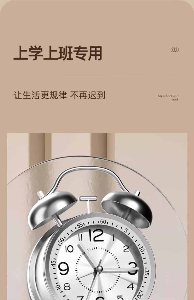 DEATKN2025新款机械闹钟初高中学生老人起床强力叫醒充电小闹铃 升级充电冰晶白-走时精准/加厚玻