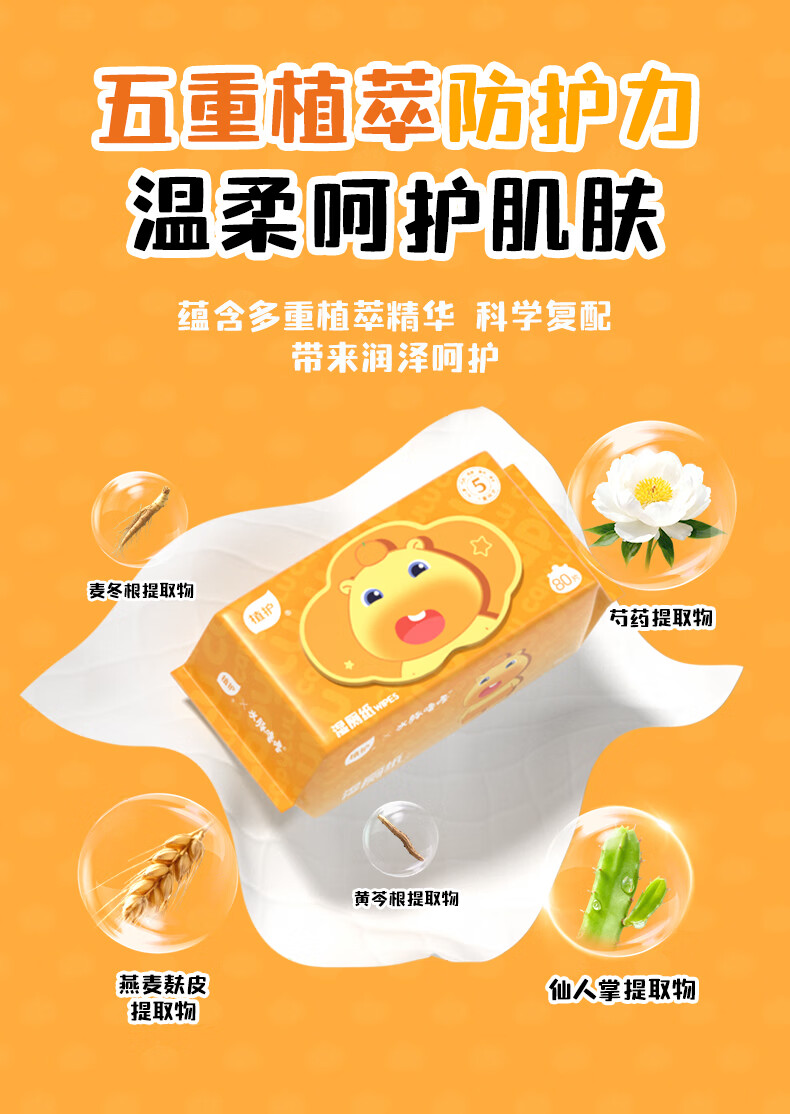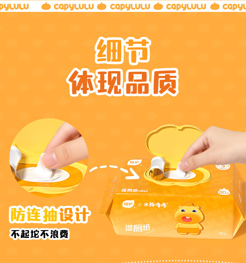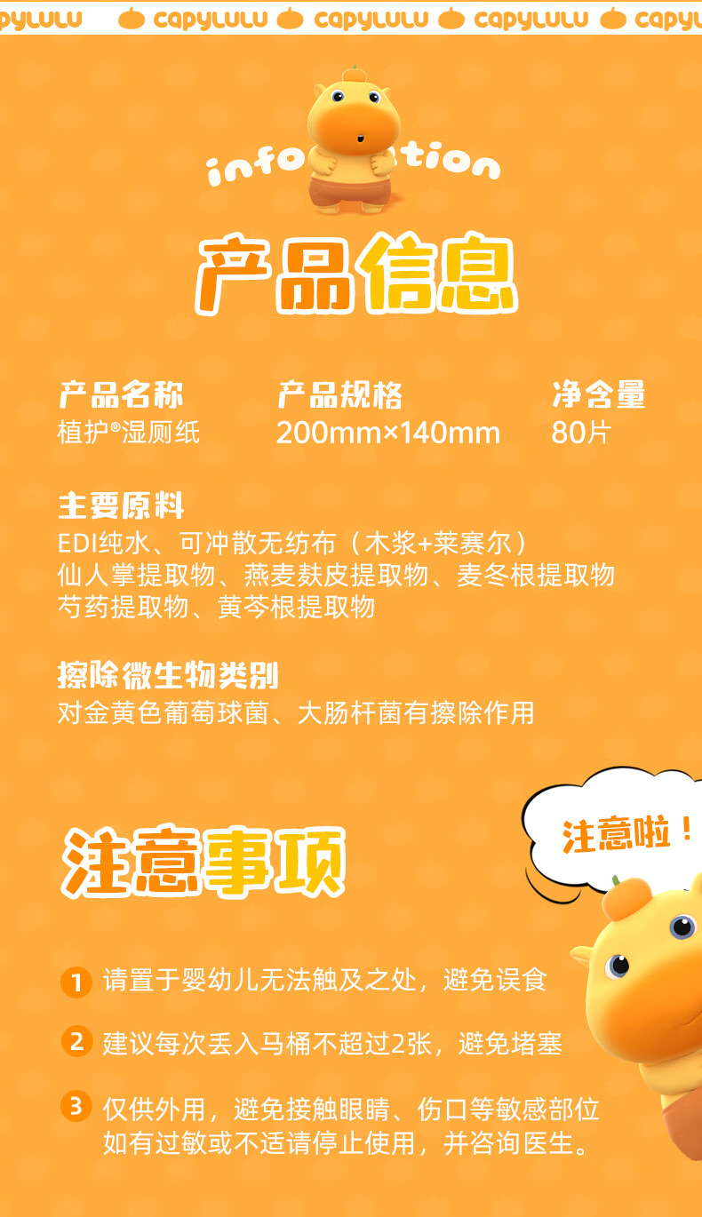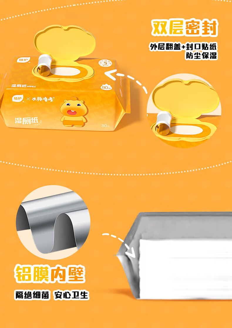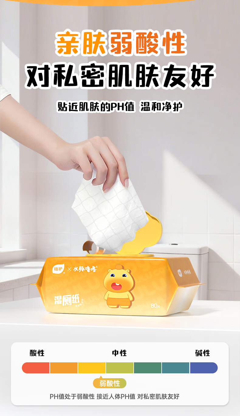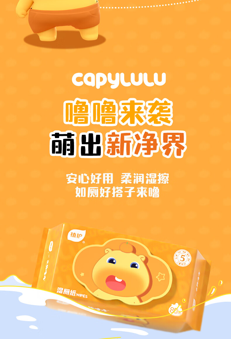 植护水豚噜噜联名款湿厕纸家庭装80抽*5包 可水解洁厕湿纸巾 婴童适用