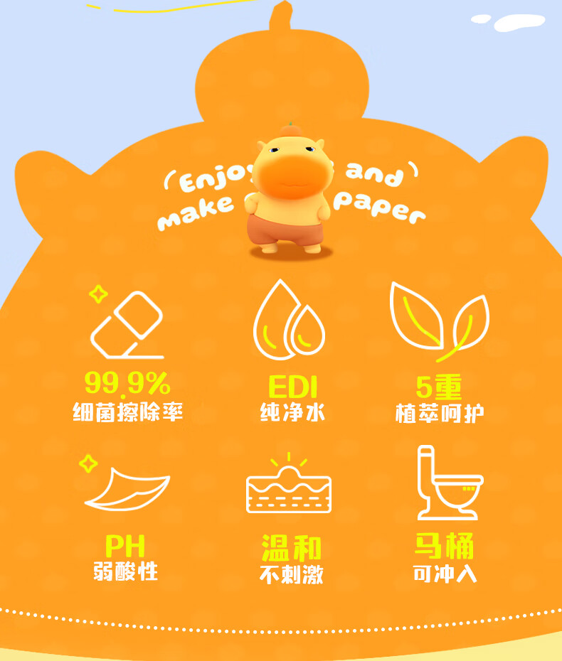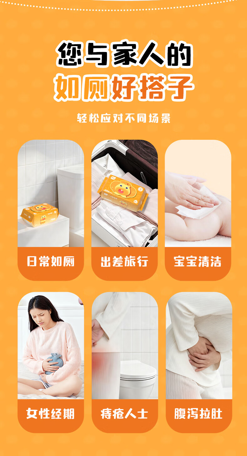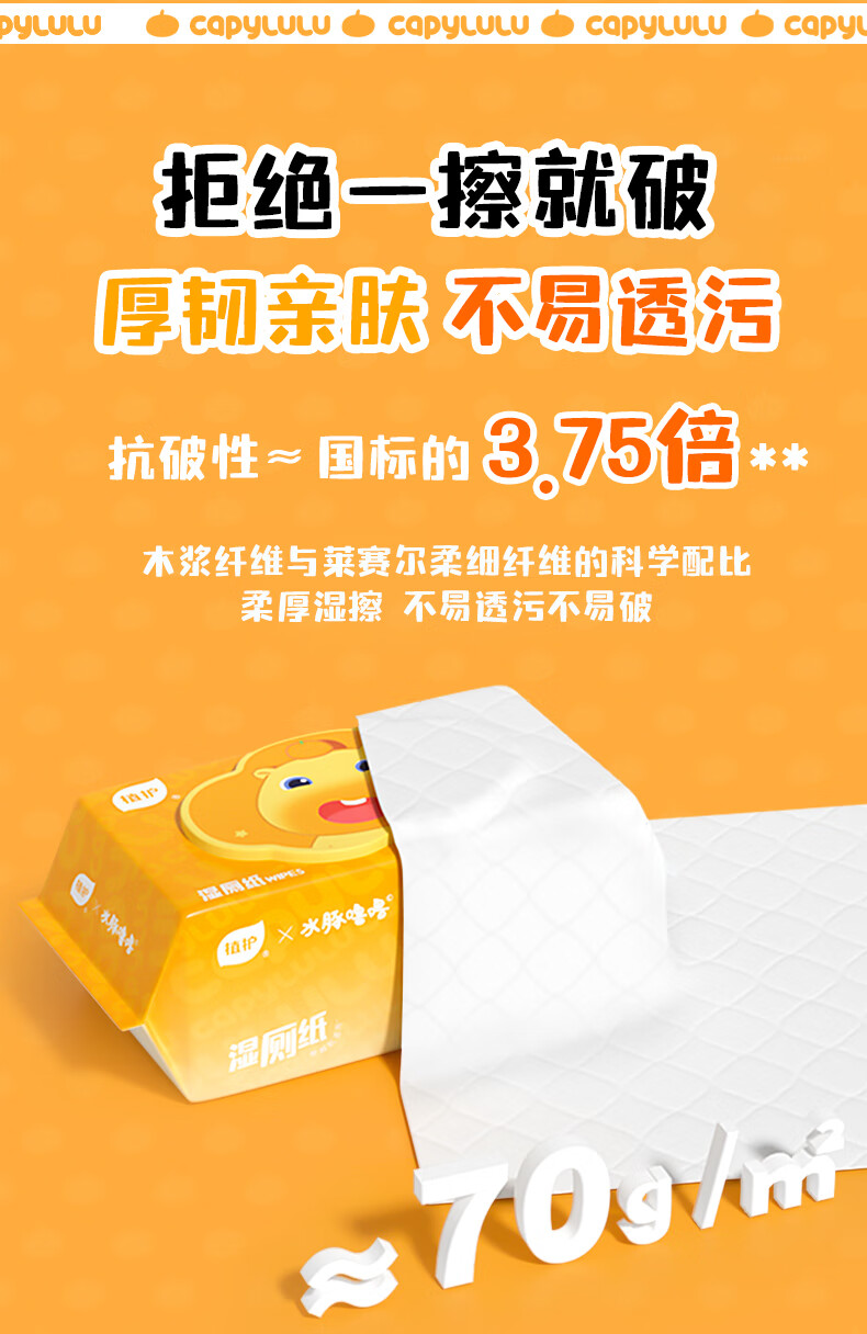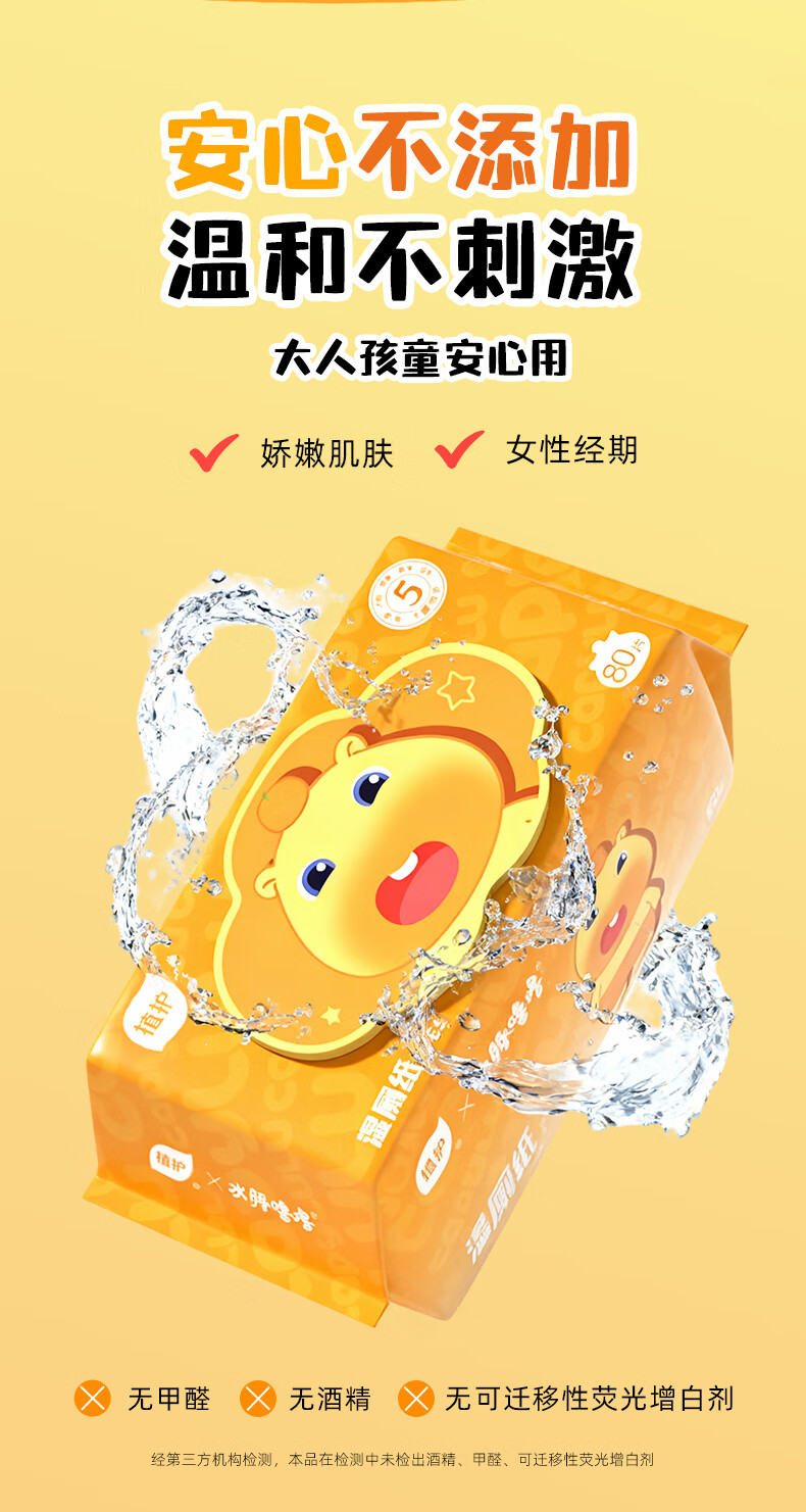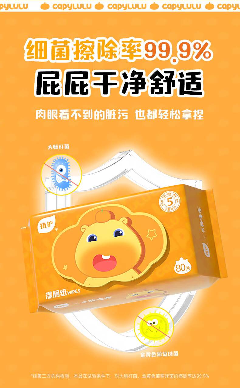 植护水豚噜噜联名款湿厕纸家庭装80抽*5包 可水解洁厕湿纸巾 婴童适用