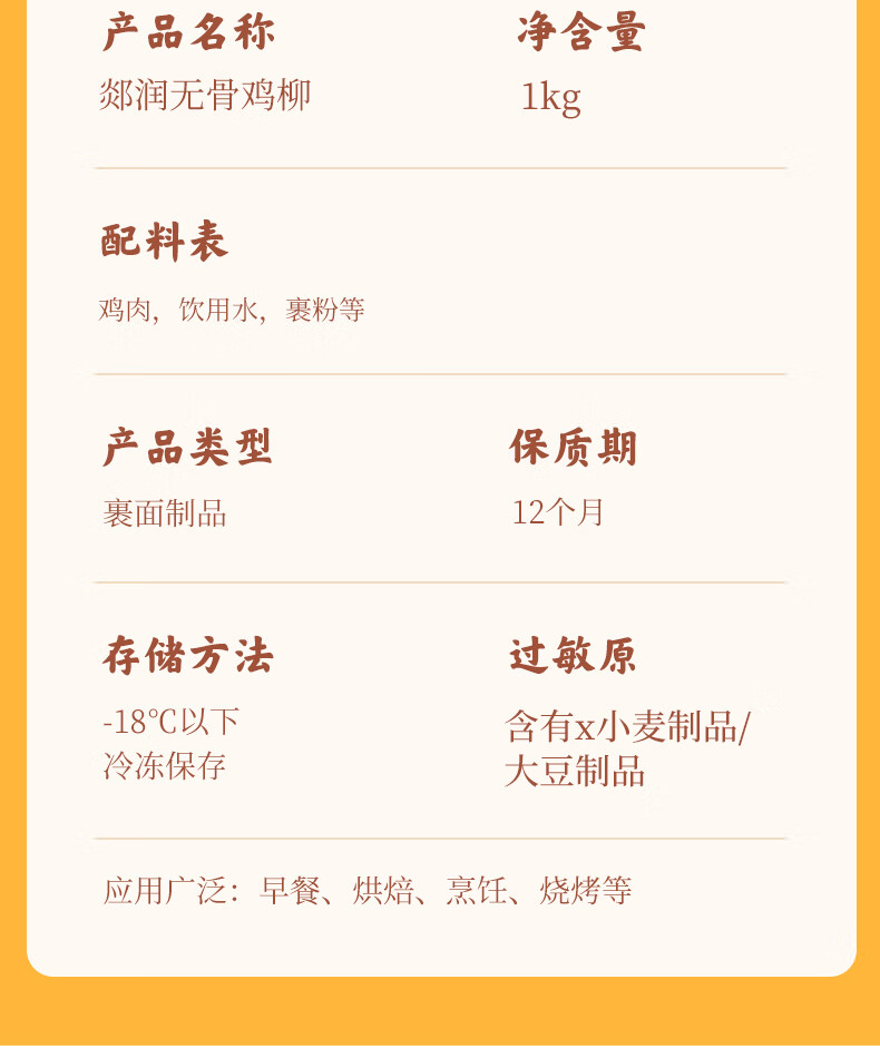 郯润食品 无骨鸡柳1.8斤/袋 冷冻整切鸡胸肉鸡柳油炸小吃空气炸锅食材