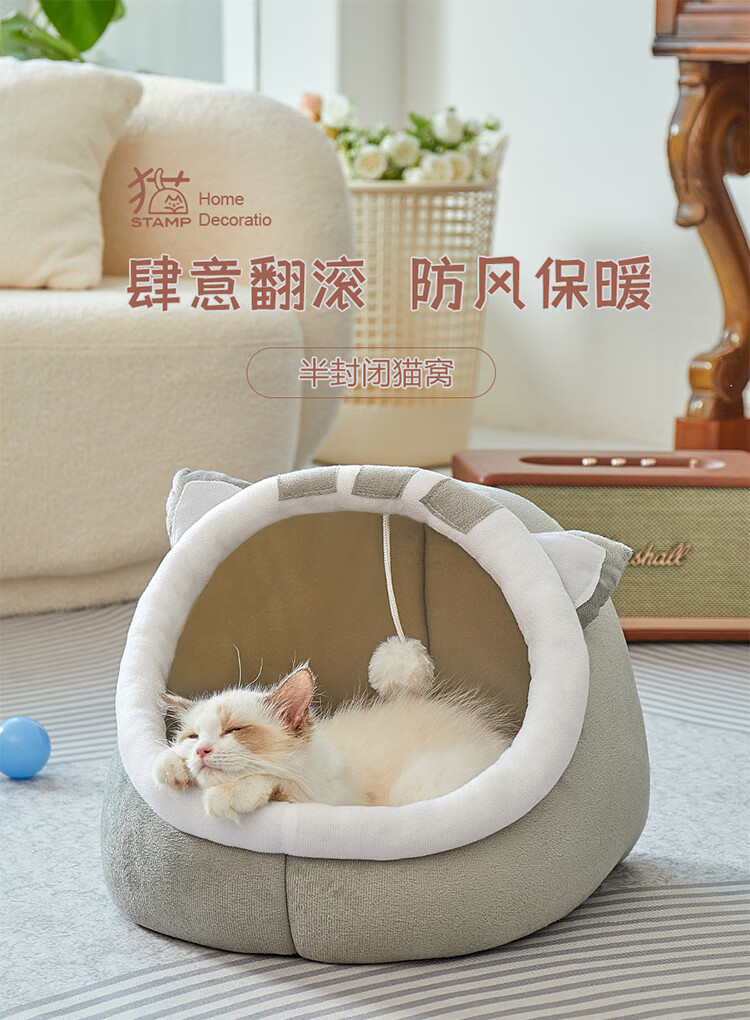 憨憨乐园猫窝冬季保暖宠物狗窝封闭式小型犬小狗猫咪睡觉用冬天房子用品