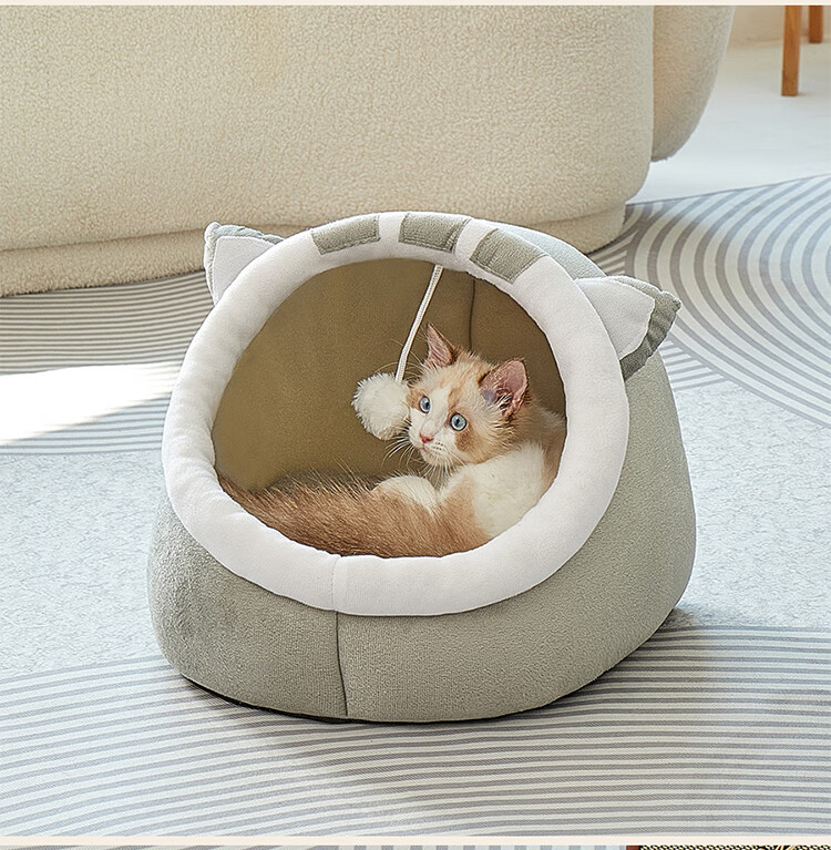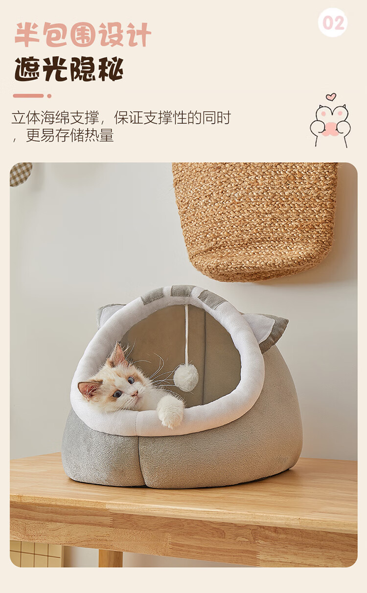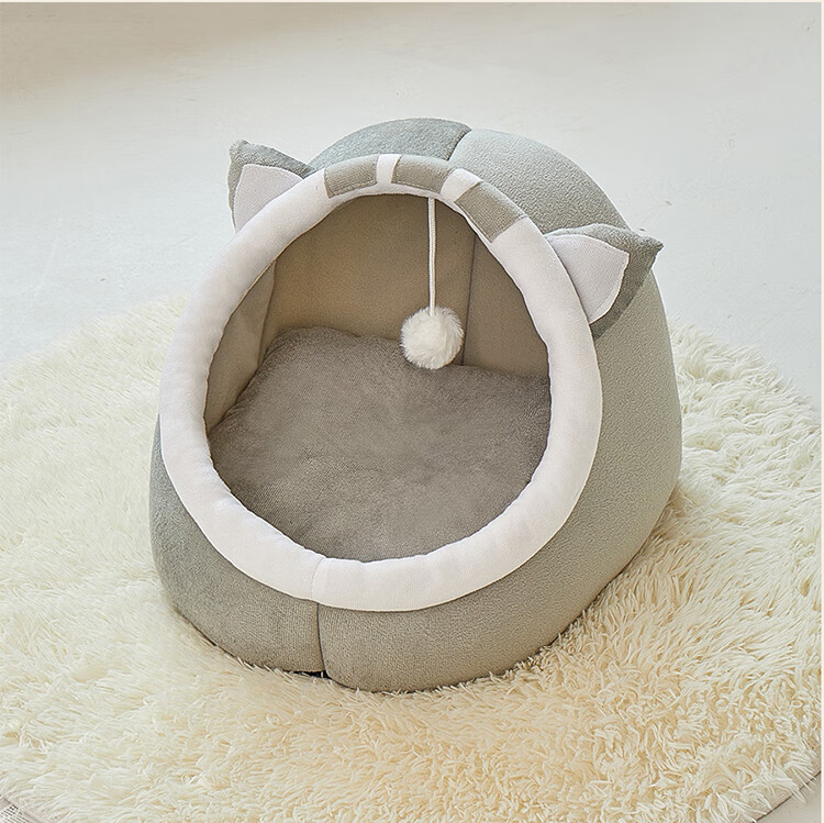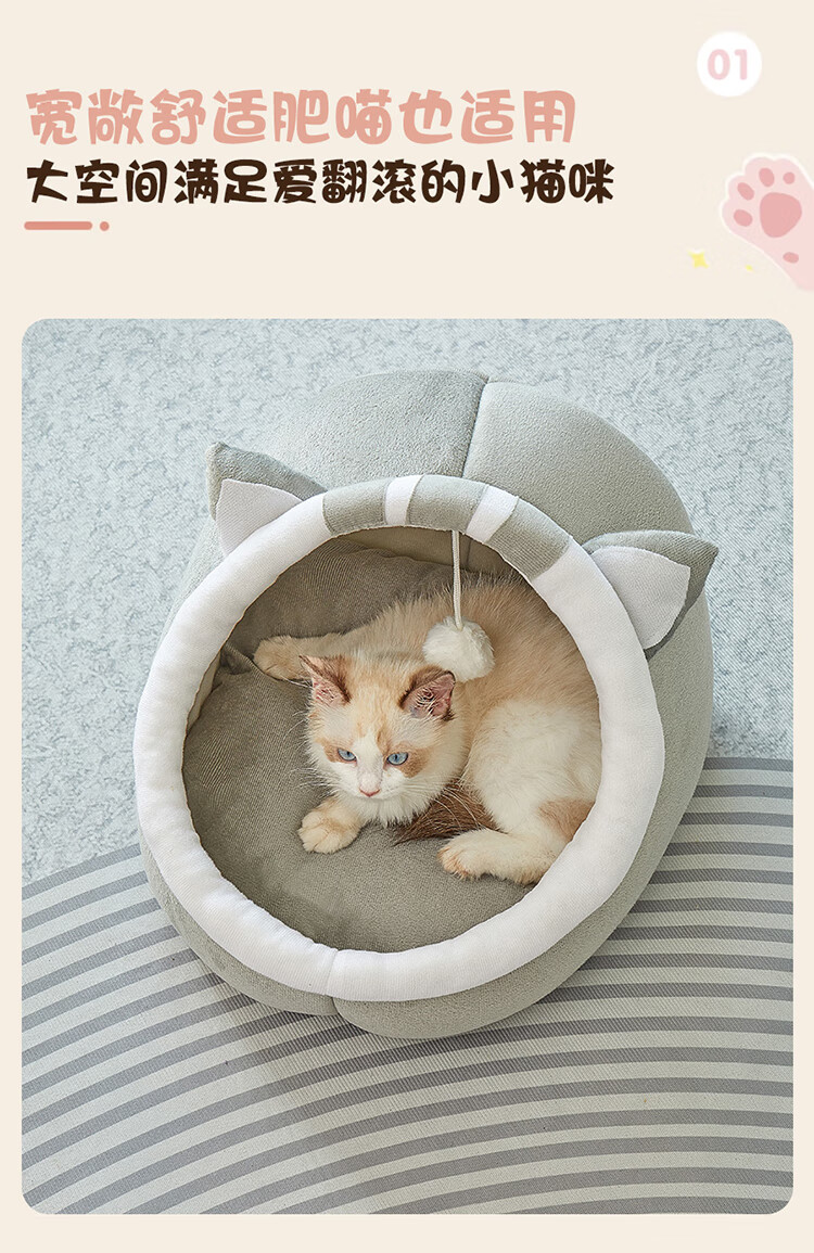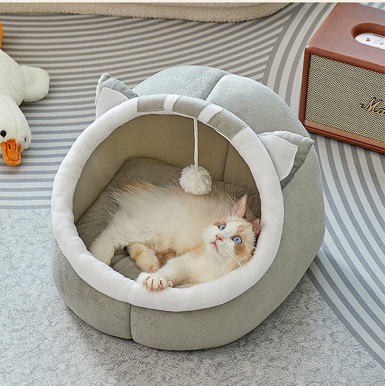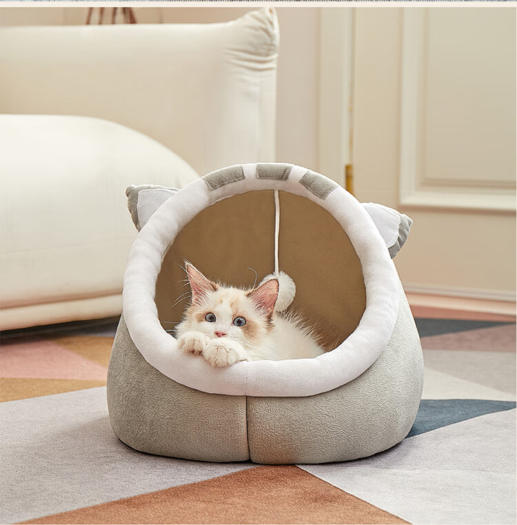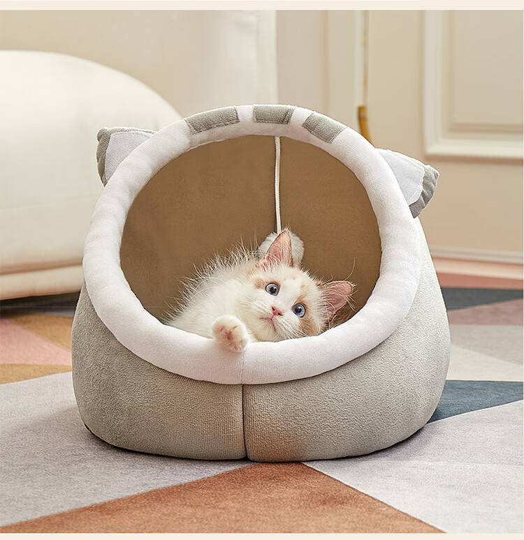 HOUYA冬季猫窝小型犬狗窝保暖封闭式猫屋睡觉垫四季通用玩睡一体