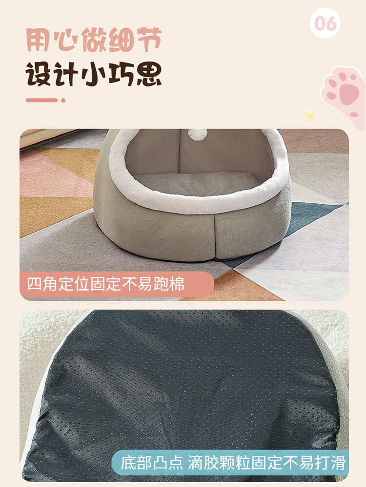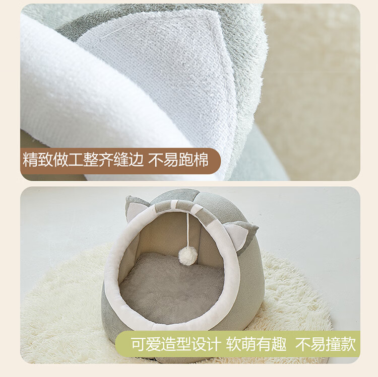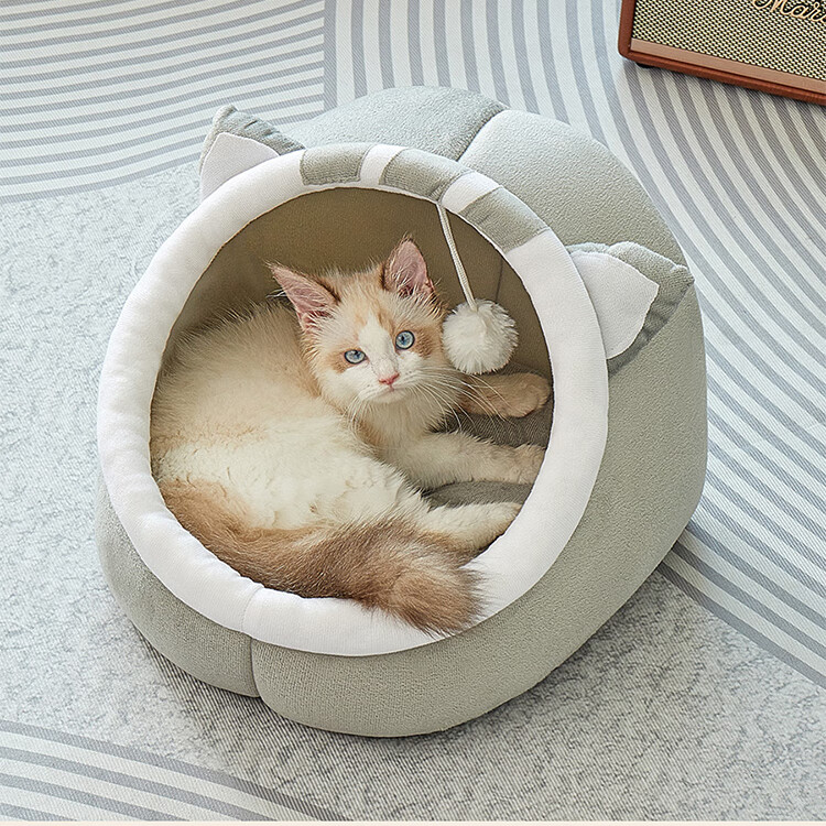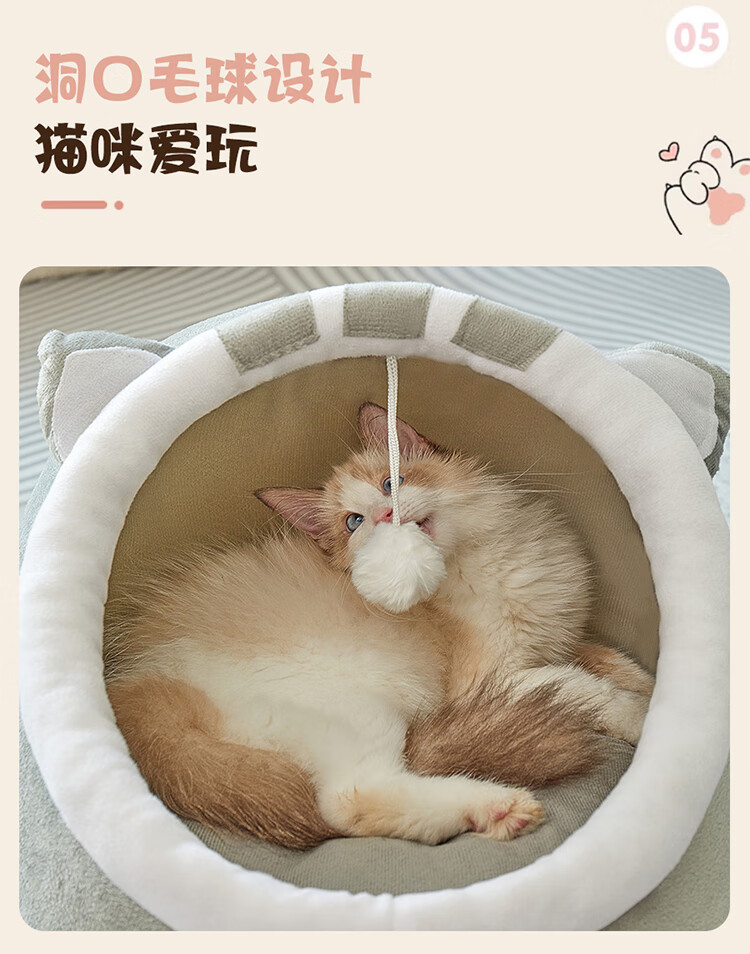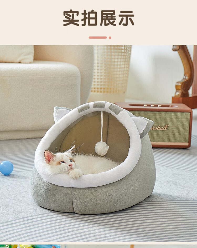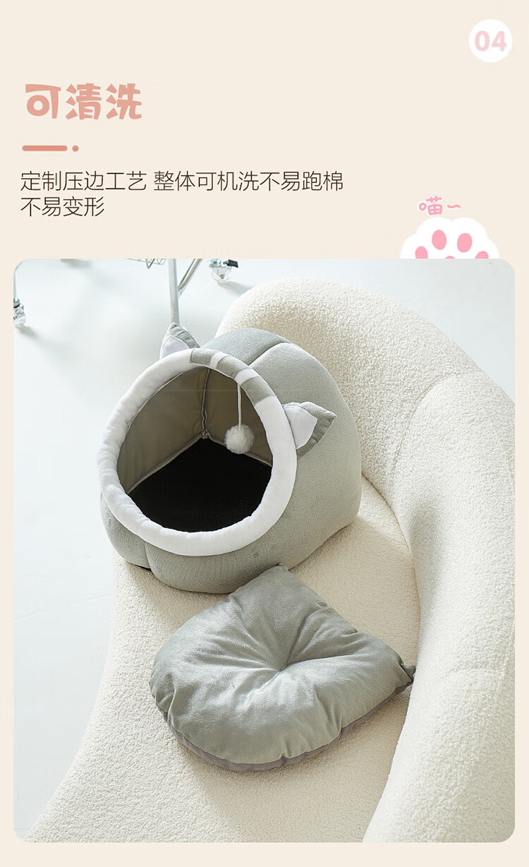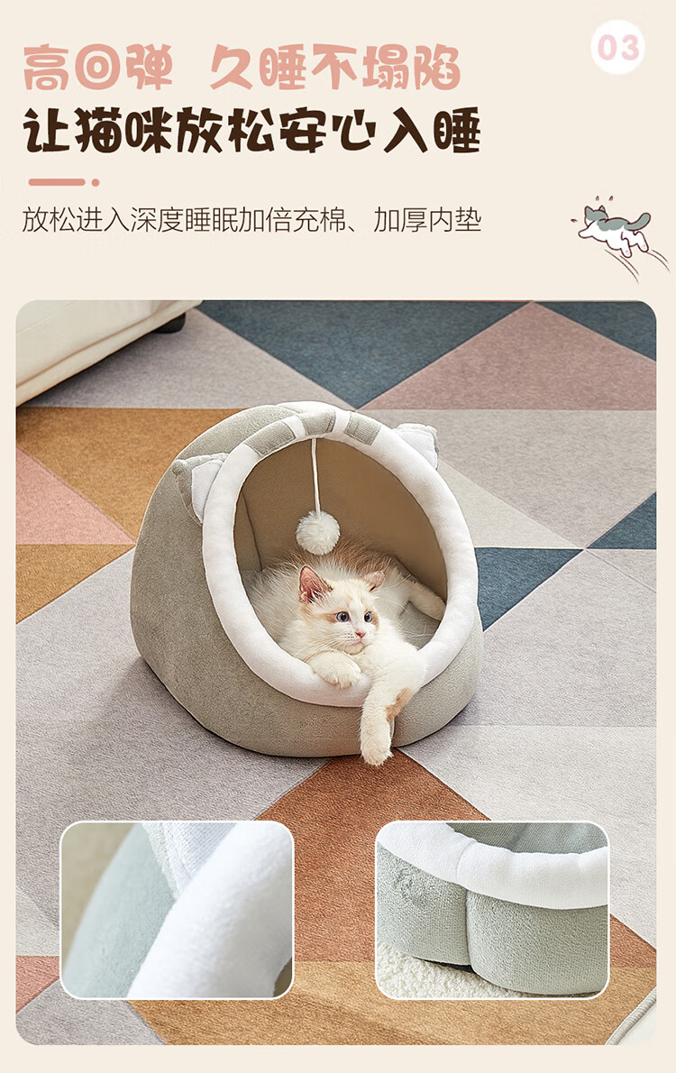 HOUYA冬季猫窝小型犬狗窝保暖封闭式猫屋睡觉垫四季通用玩睡一体