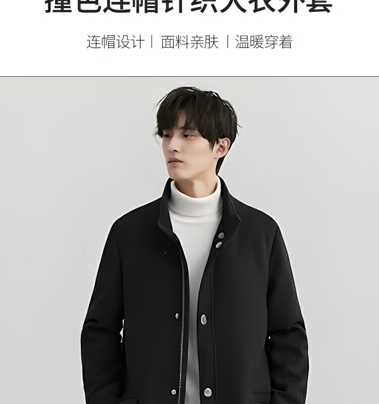 阿仕顿(ARTSDON)2025年秋季男装新款时尚穿搭潮流撞色休闲连帽中长款针织大衣外套 黑色 S (165) 推荐95-110斤