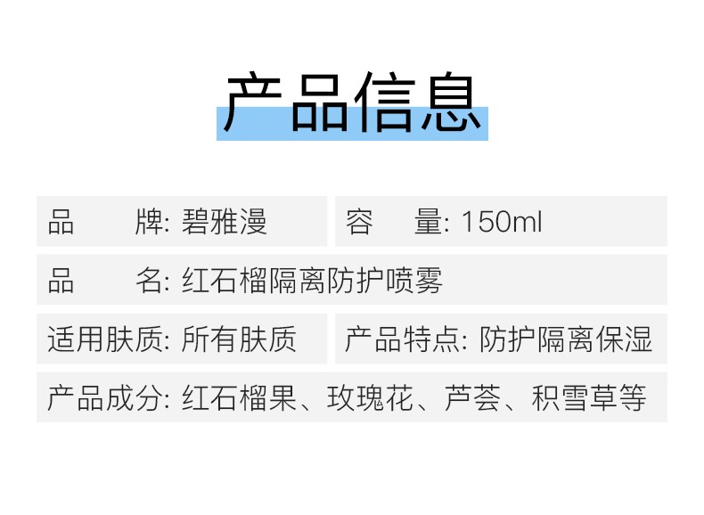 碧雅漫防护喷雾150ml提亮肤色晒后修护防水隔离素颜遮瑕面部可用男女 红石榴防护喷雾150mlX2瓶