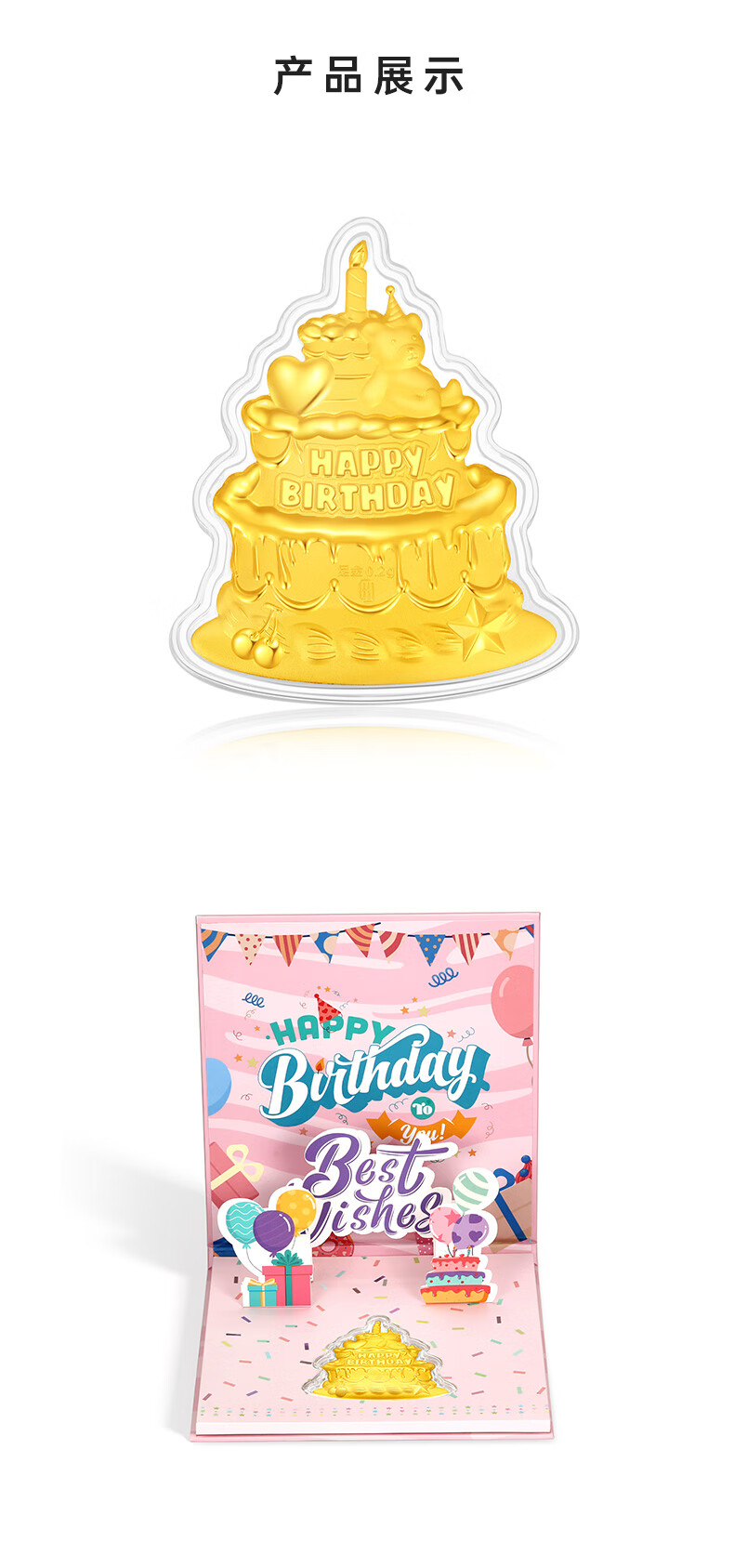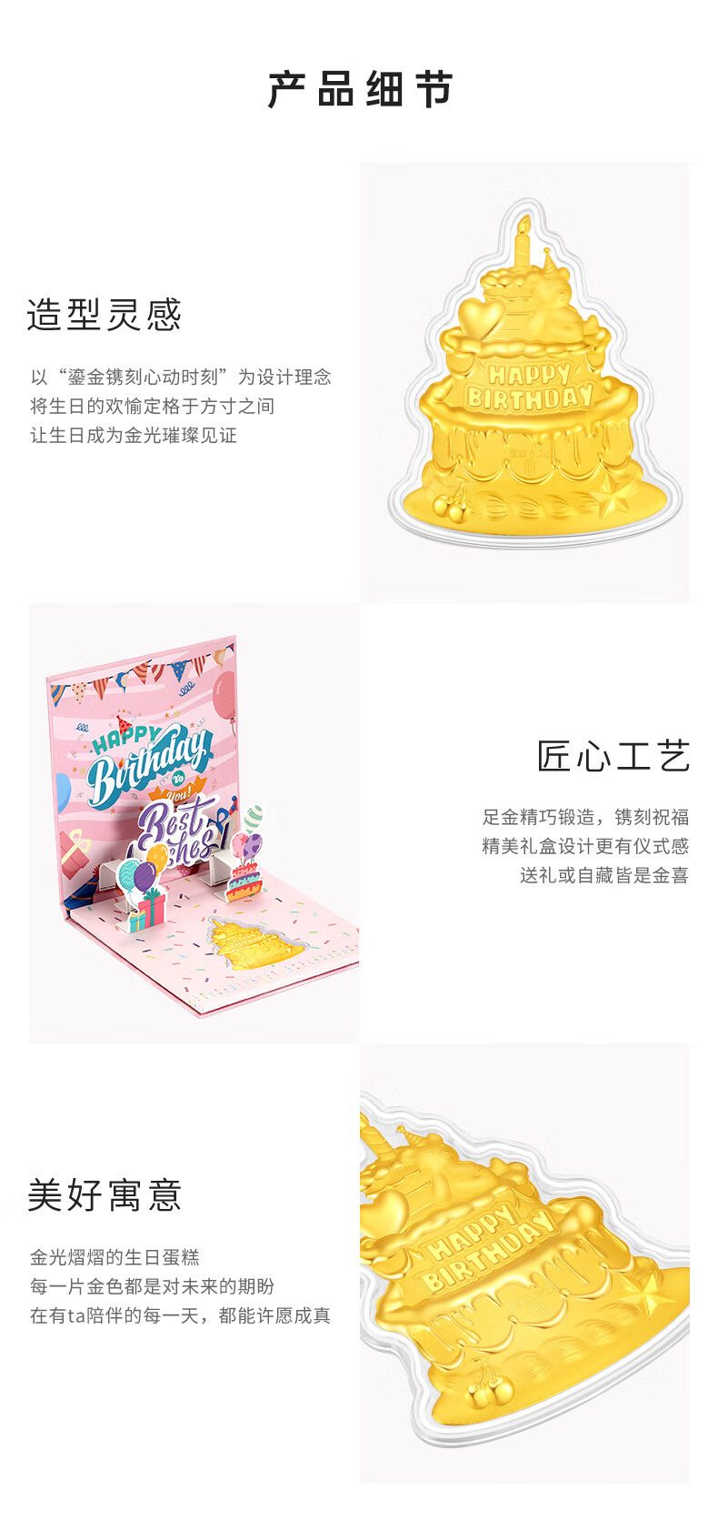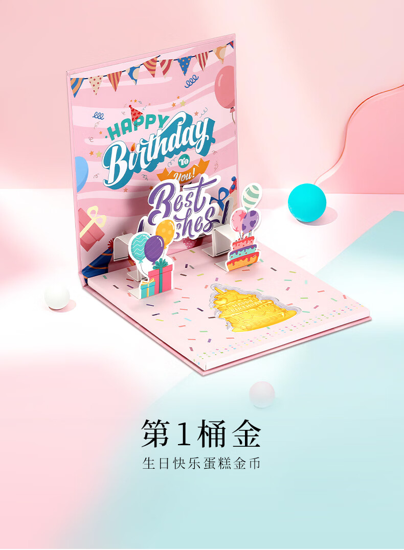潮宏基生日快乐蛋糕足金黄金金币摆件投资金送宝宝周岁礼物 礼盒