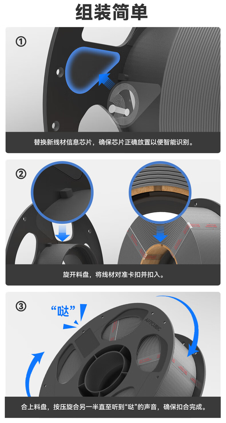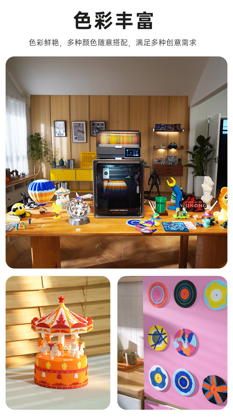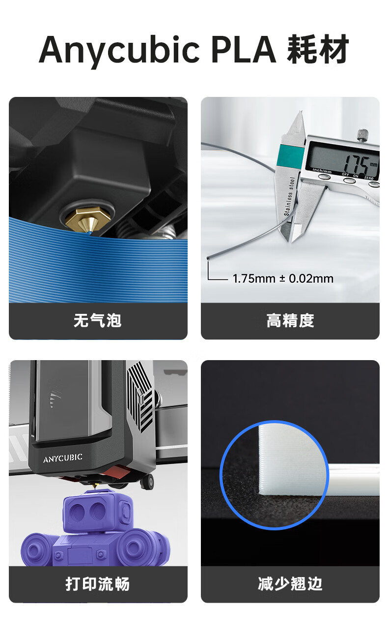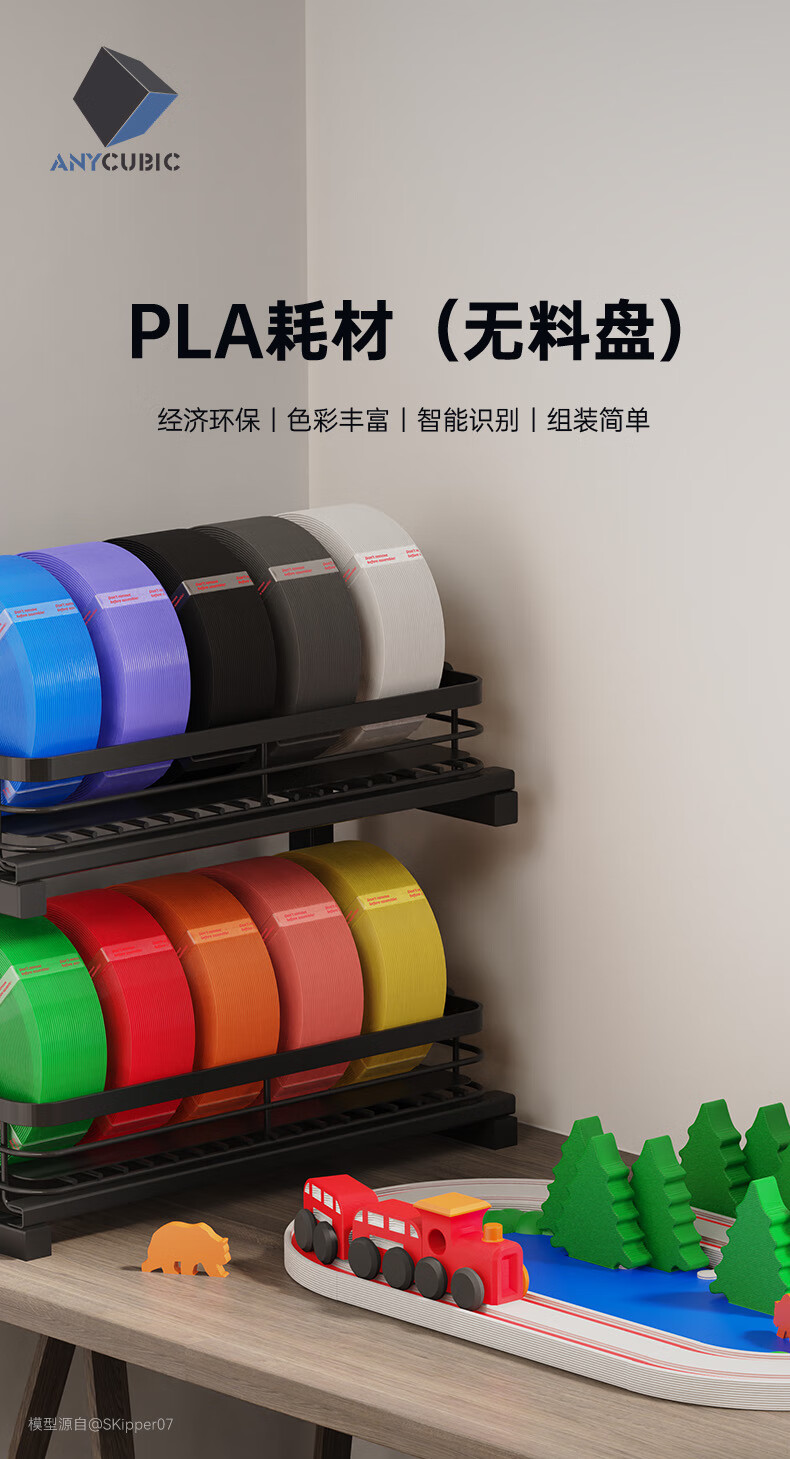 ANYCUBIC纵维立方官方PLA1.75mm无料盘耗材3D打印材料FDM环保整齐排线快速打印流畅多色RFID智能参数识别 白色1kg(无料盘)