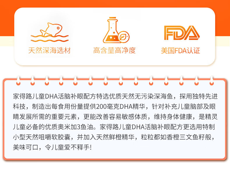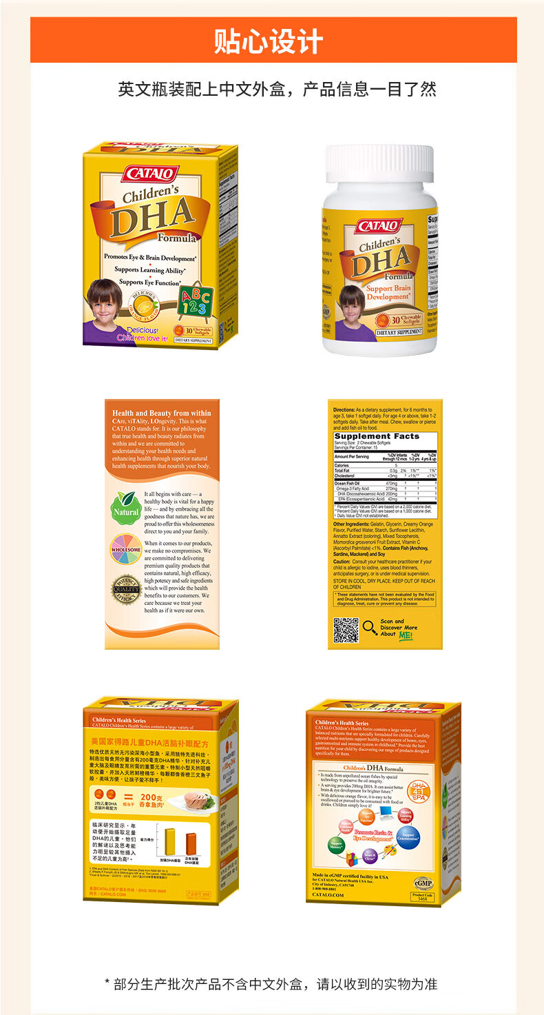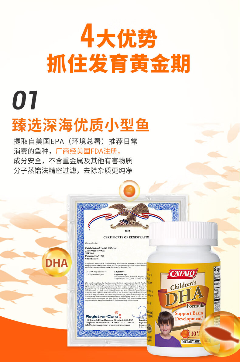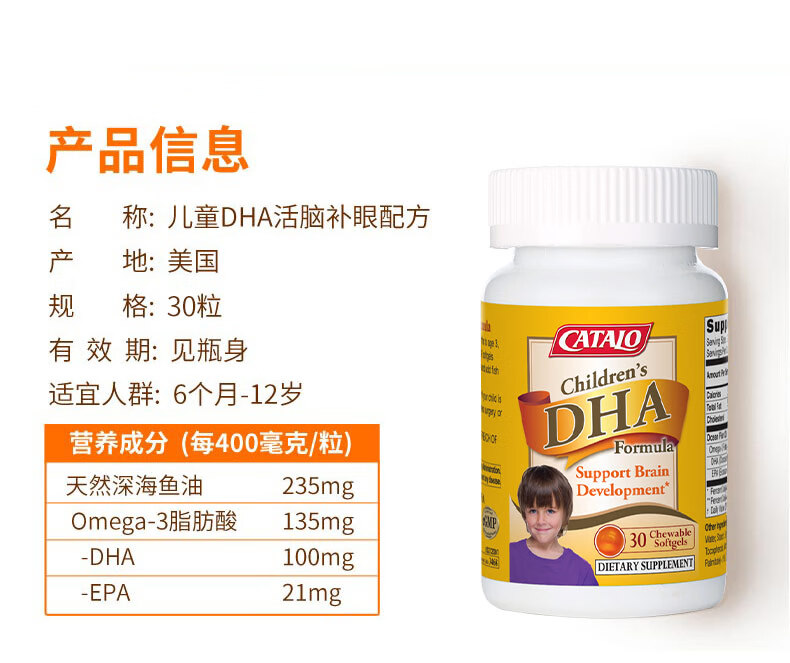 CATALO家得路儿童鱼油DHA活脑补眼配方软胶囊30粒