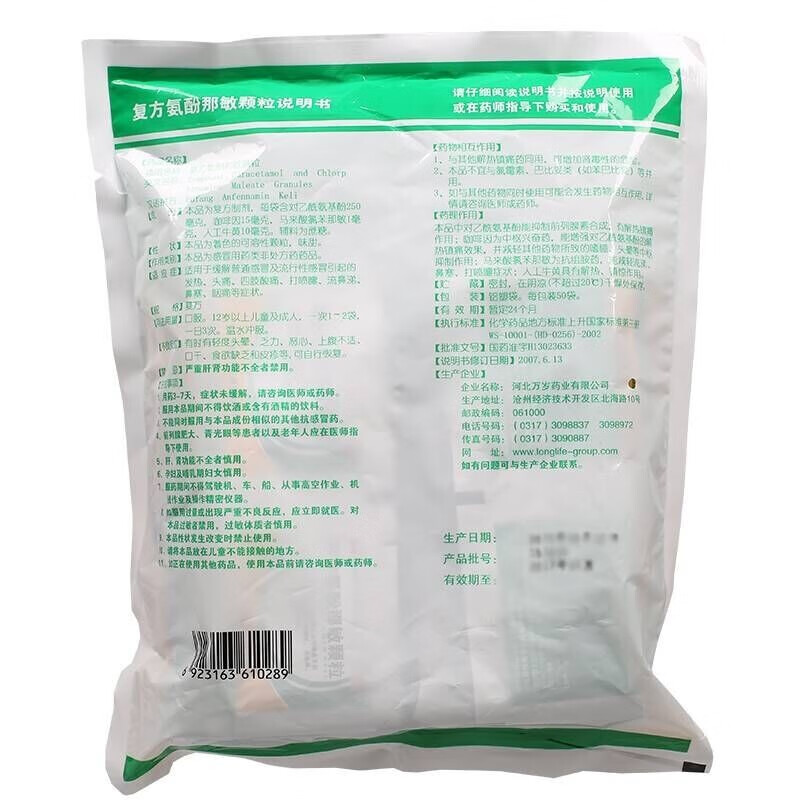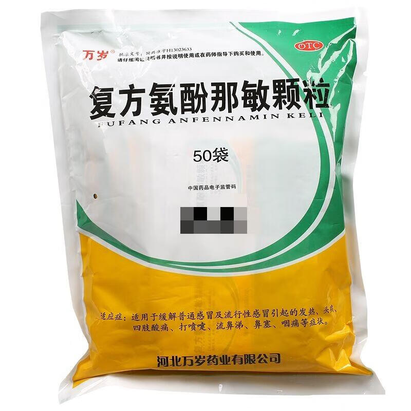 万岁 复方氨酚那敏颗粒 50袋 缓解普通感冒及流行性感冒引起的发热 头痛 四肢酸痛 打喷嚏 流鼻涕 鼻塞 咽痛