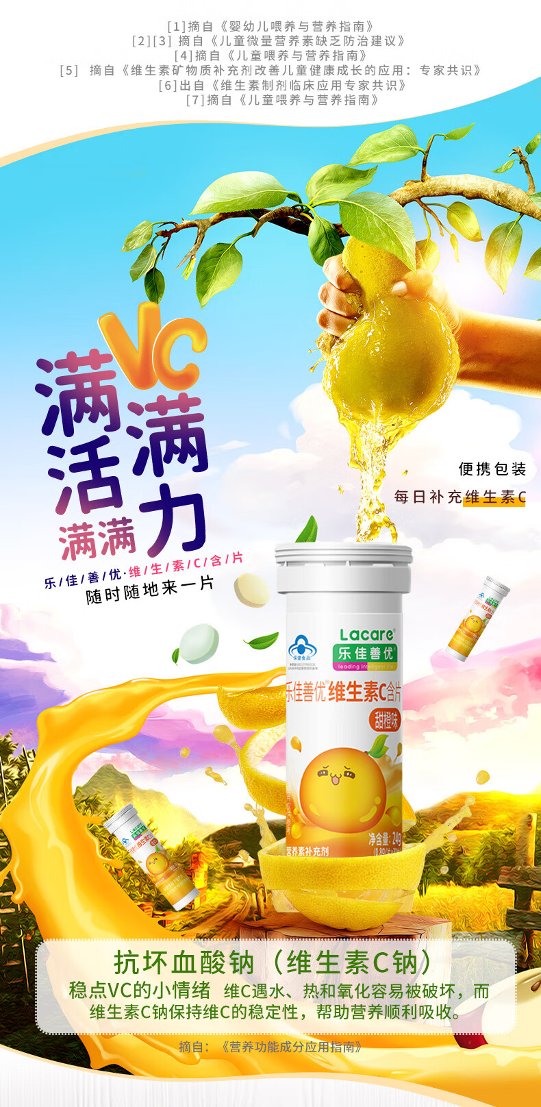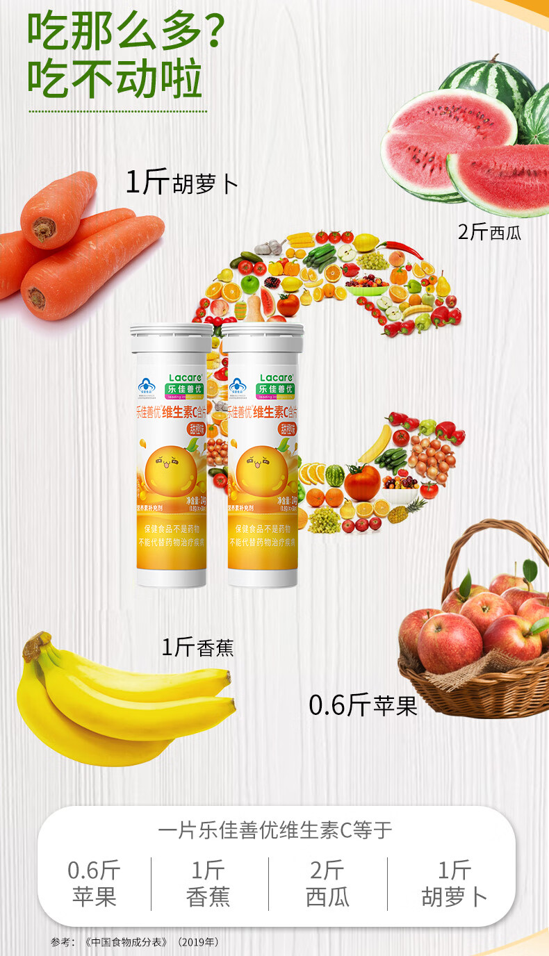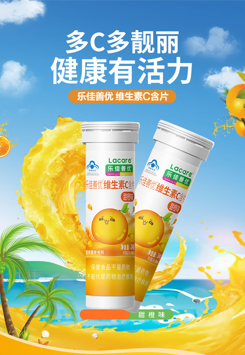 乐佳善优维生素C含片 成人/儿童咀嚼片vc(甜橙味)30片/瓶