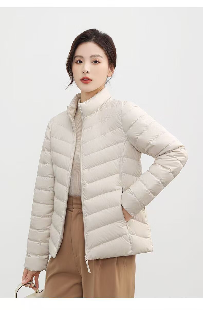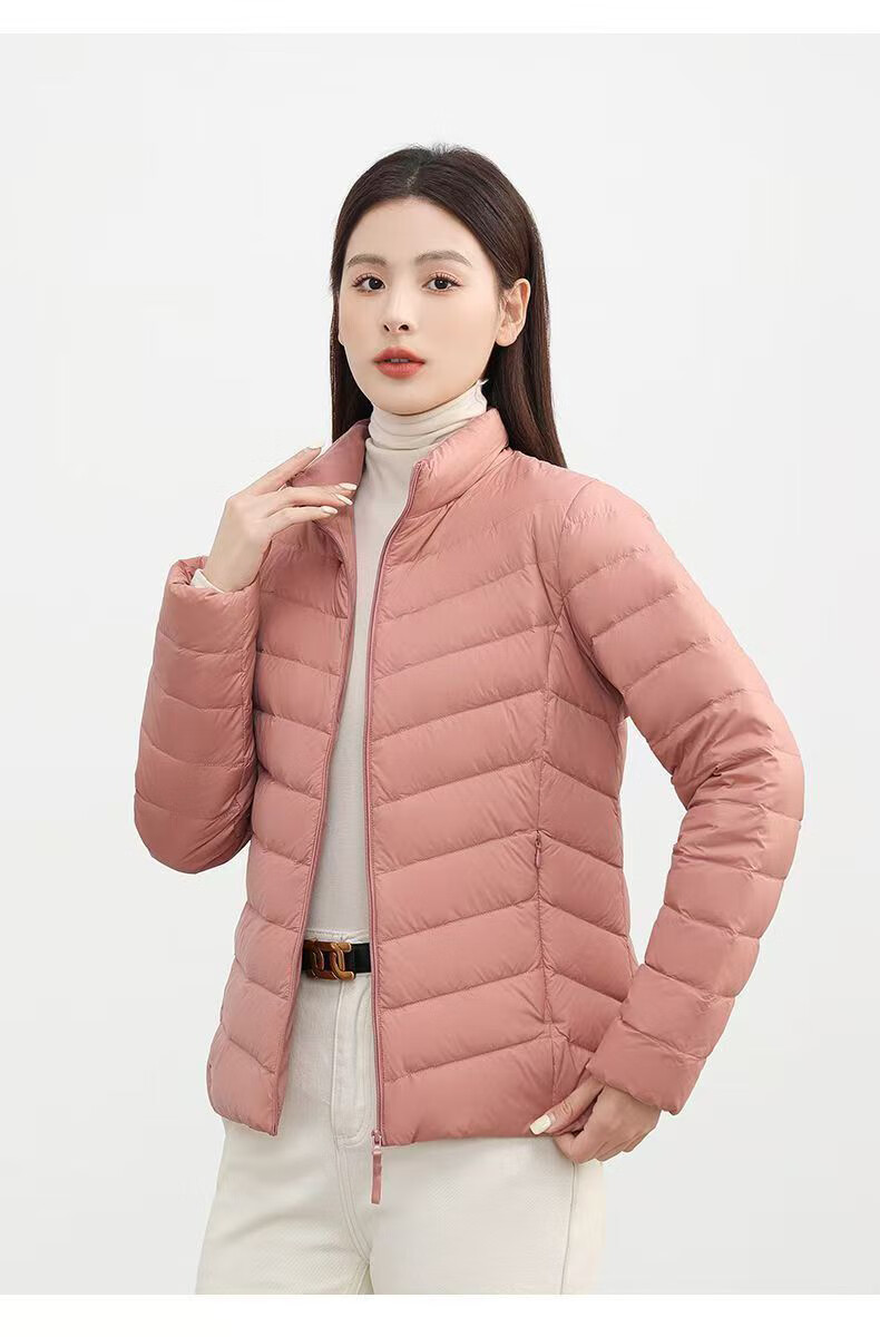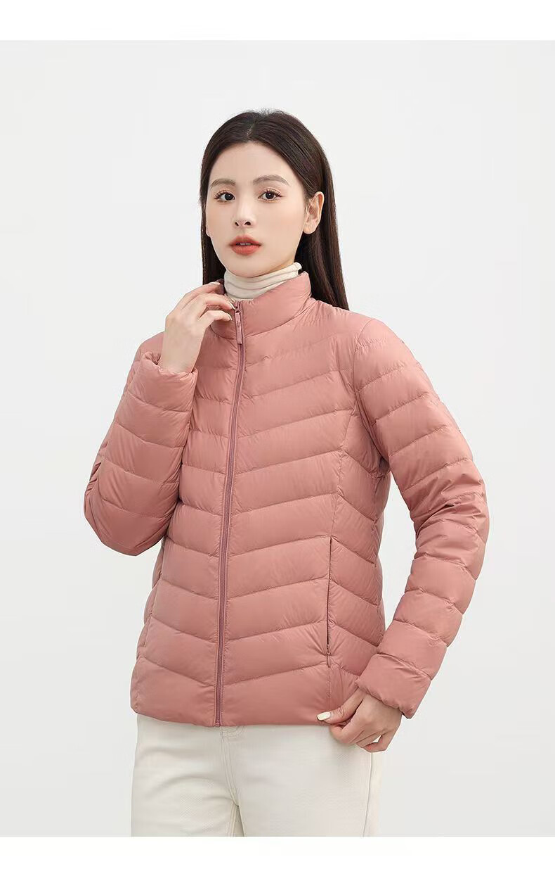 IKELUOZI2025秋季新款修身短款保暖外套立领轻薄羽绒服女 云粉色 M