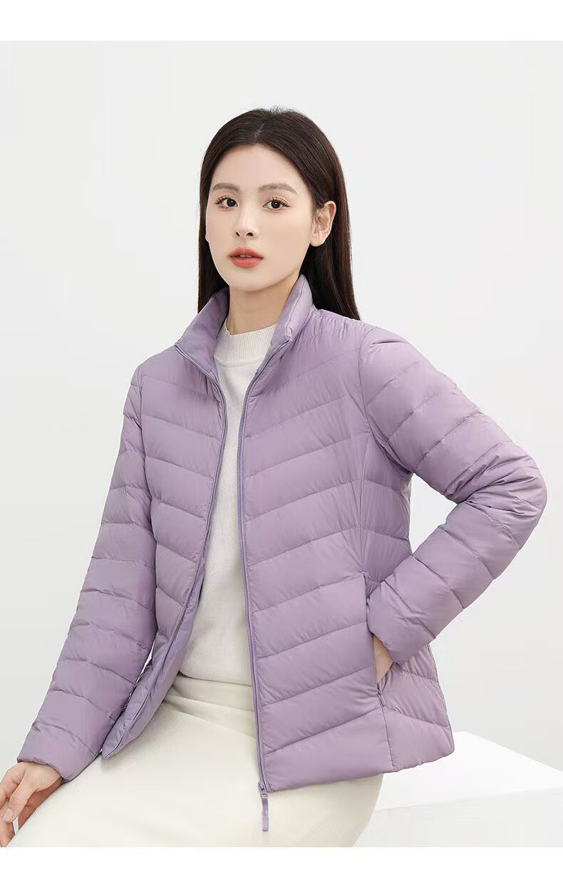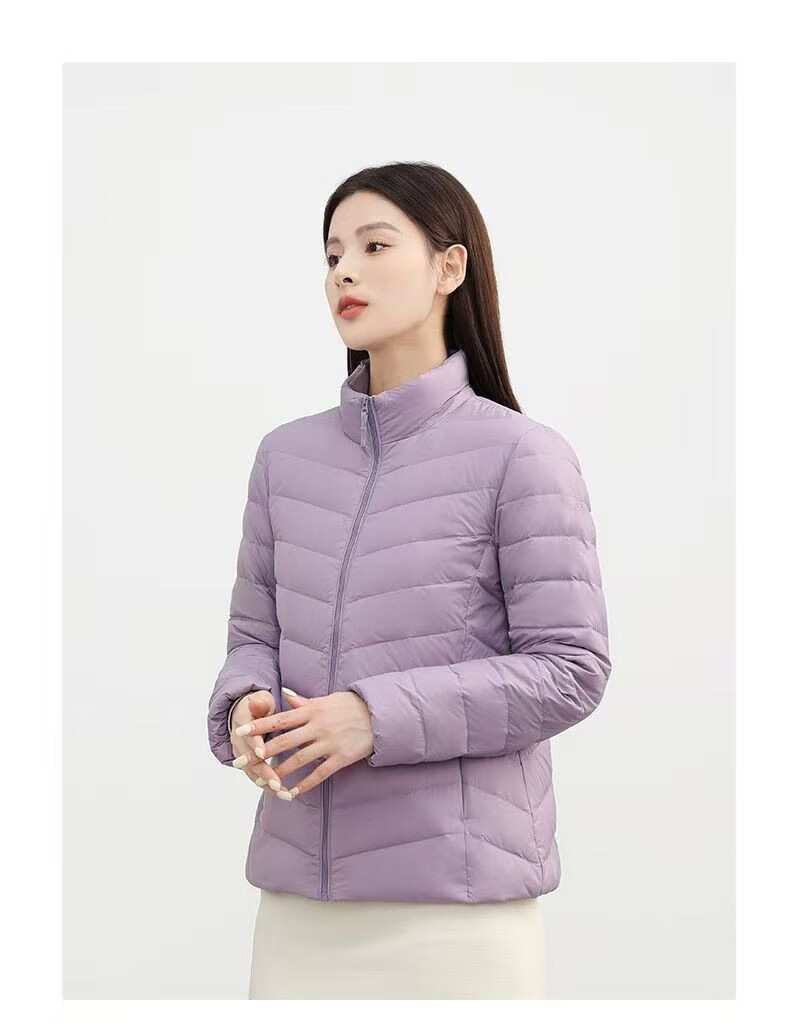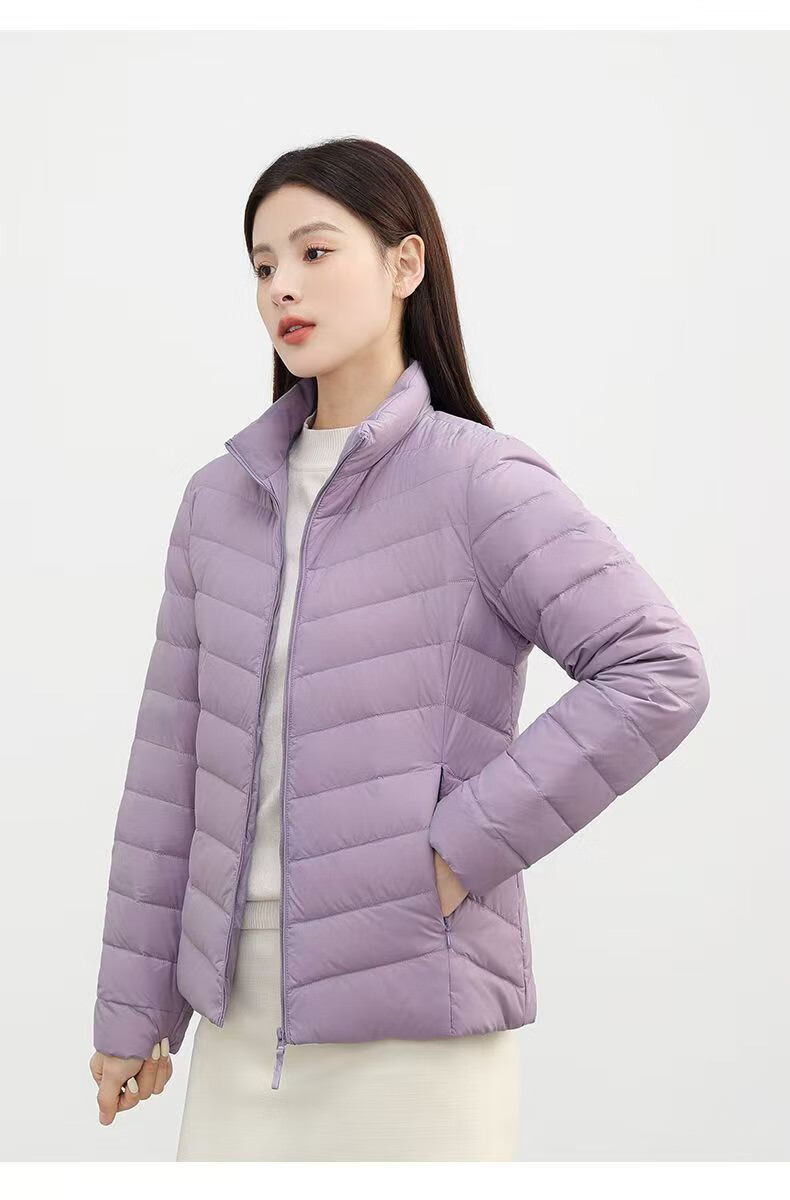 IKELUOZI2025秋季新款修身短款保暖外套立领轻薄羽绒服女 丁香紫 S