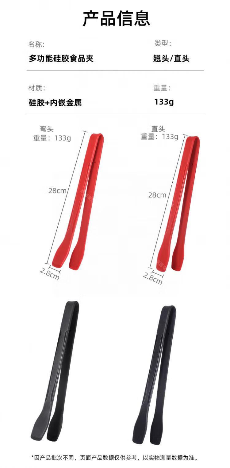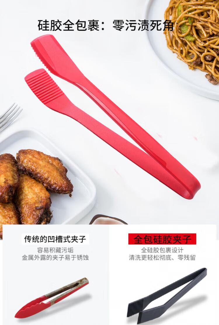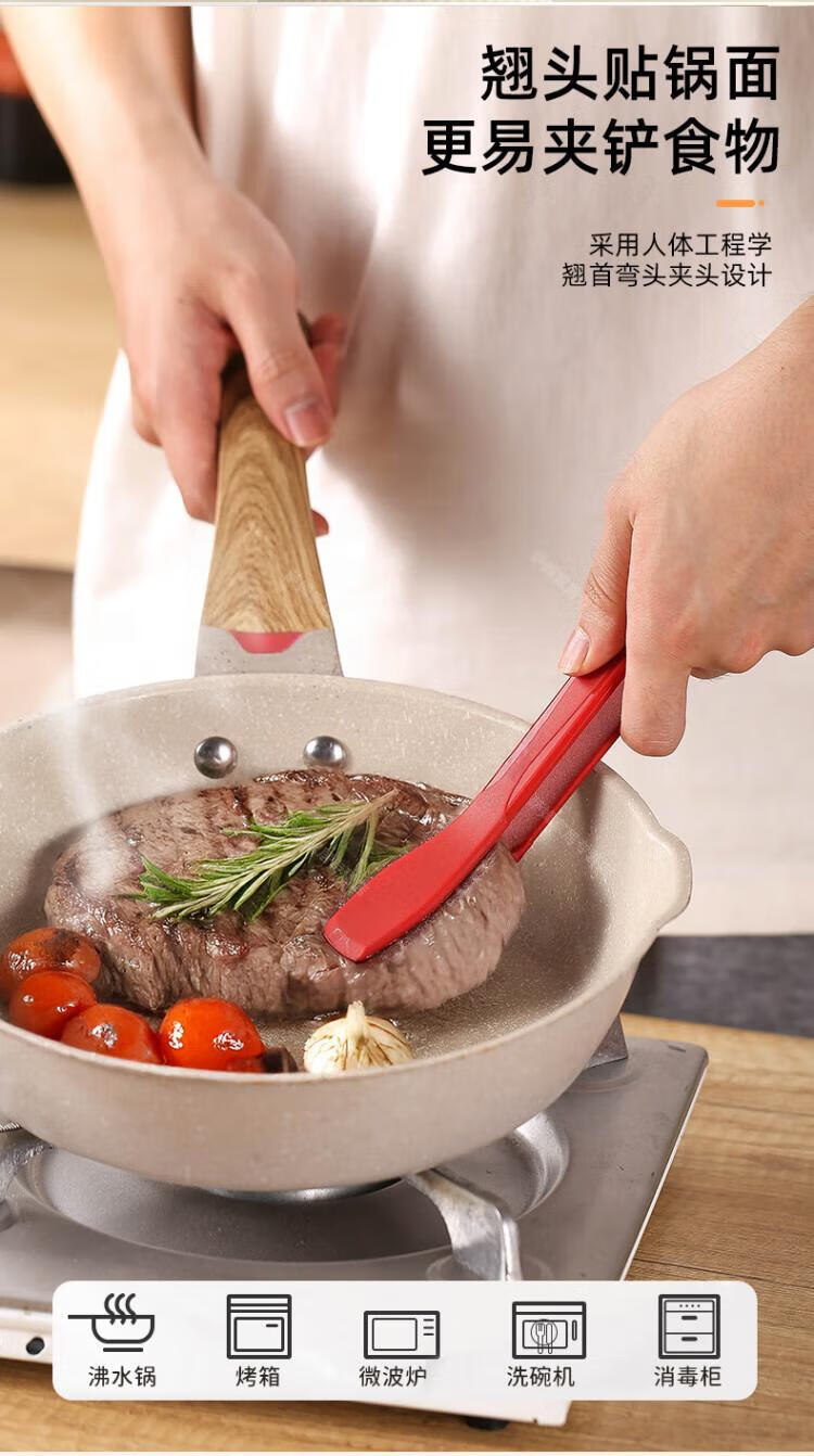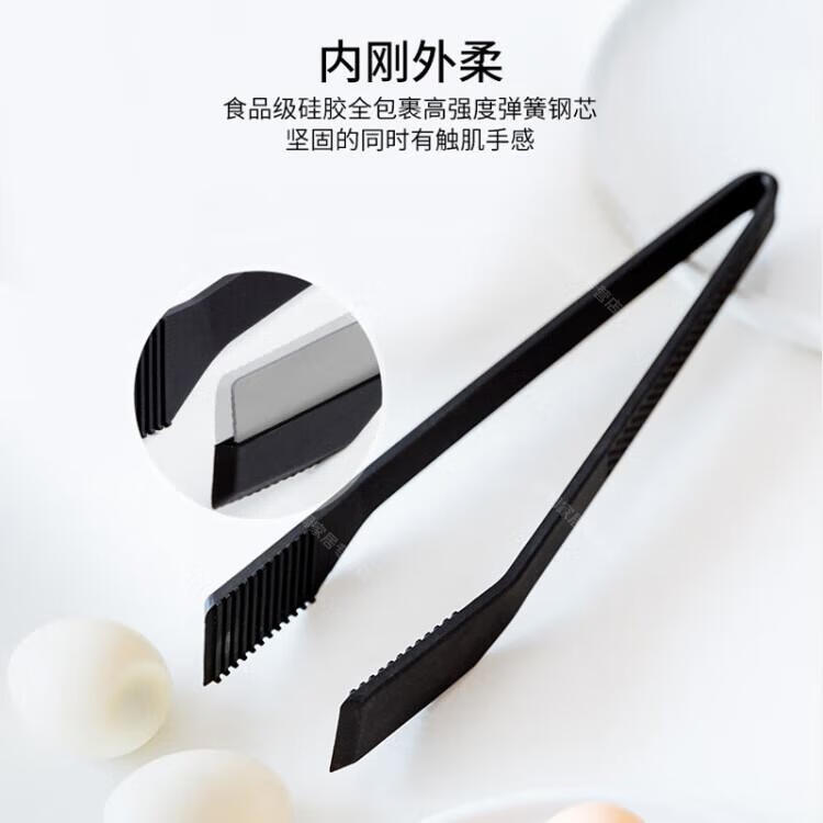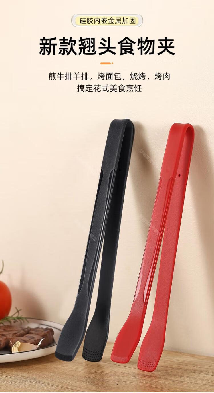 WCZ高端厚皮橙同款硅胶翘嘴食物夹硅胶牛排烧烤炒菜厨房夹子不粘锅 翘嘴*黑色 1个装