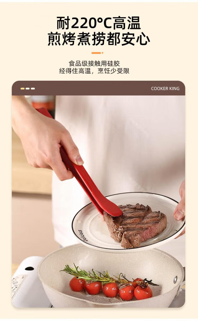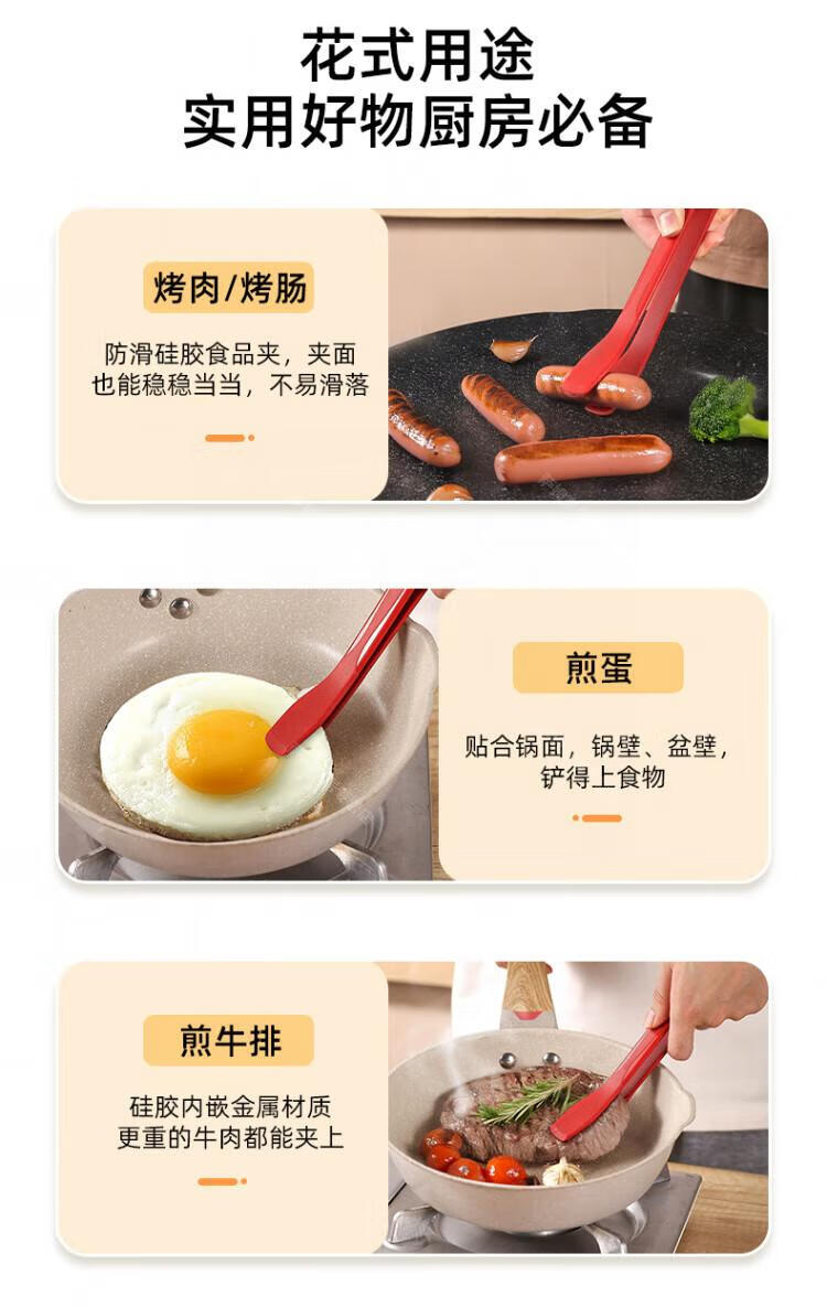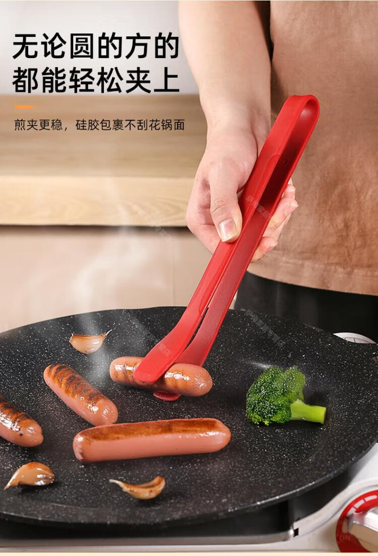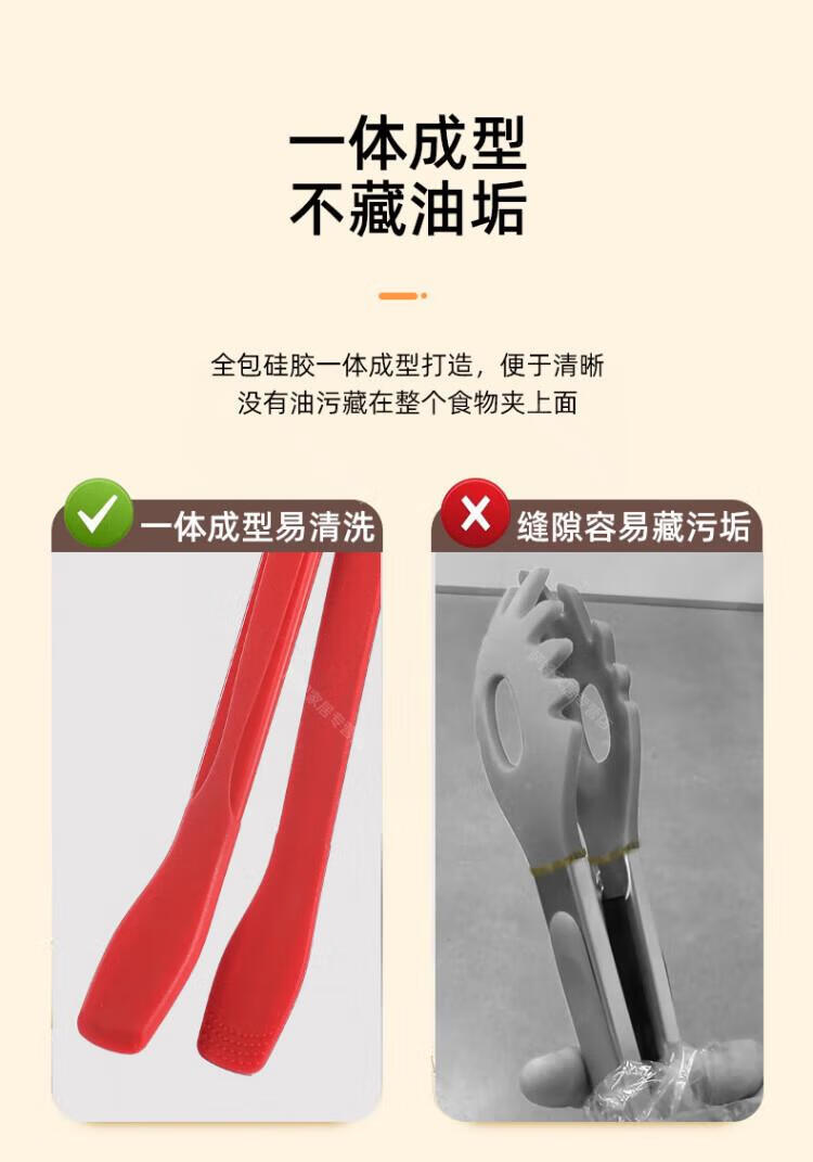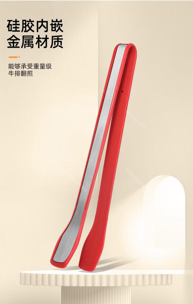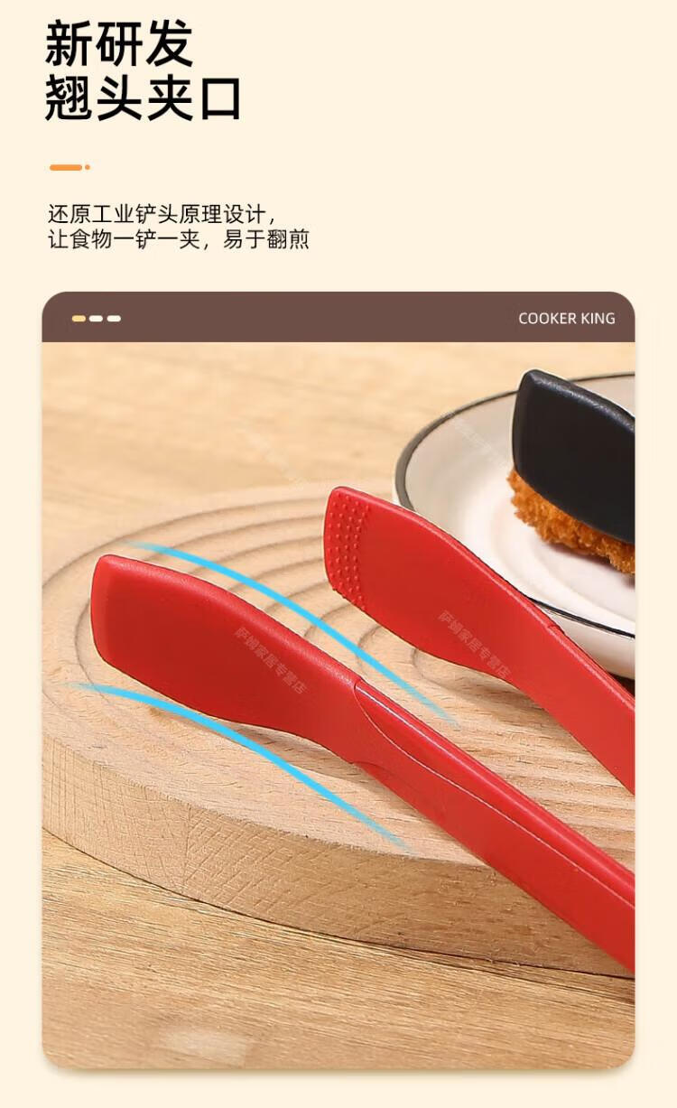 WCZ高端厚皮橙同款硅胶翘嘴食物夹硅胶牛排烧烤炒菜厨房夹子不粘锅 翘嘴*黑色 1个装