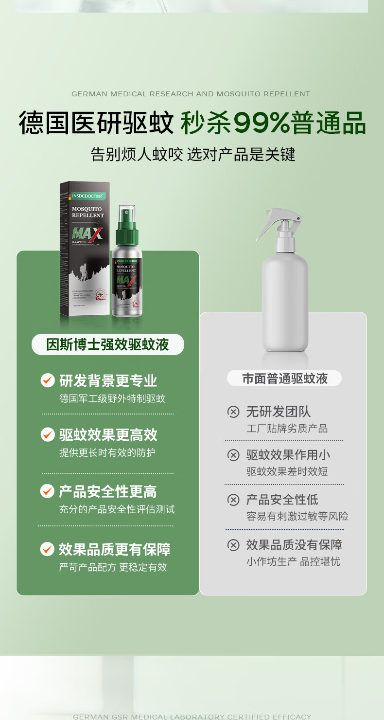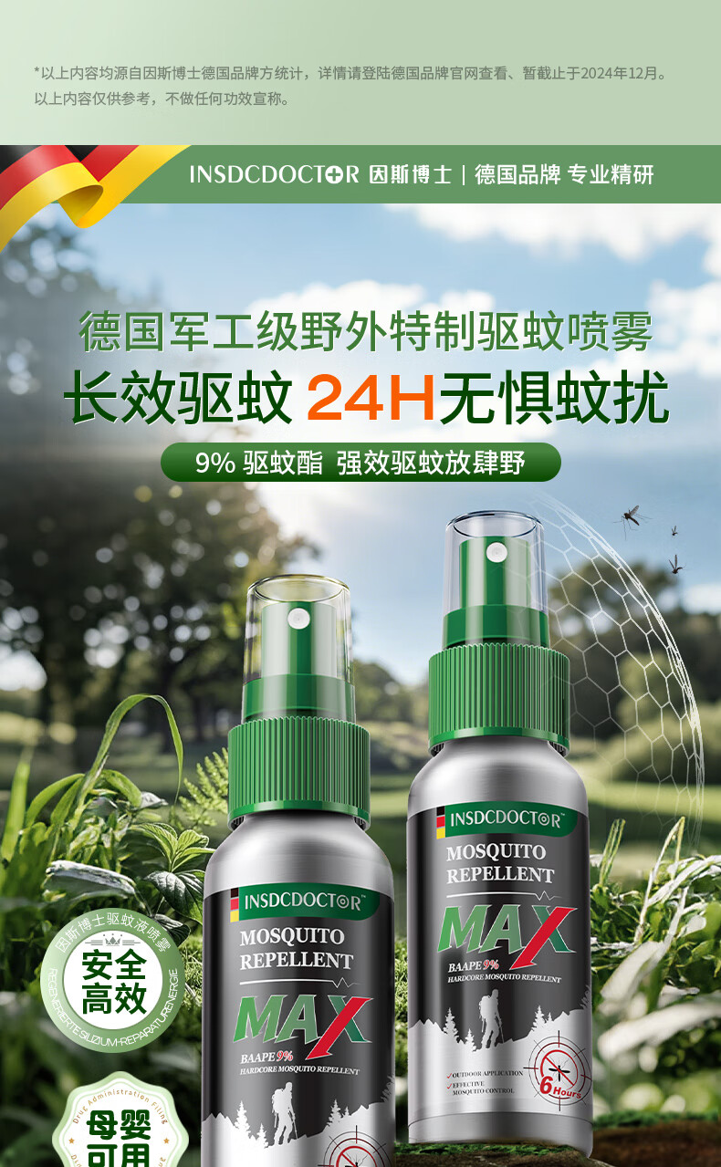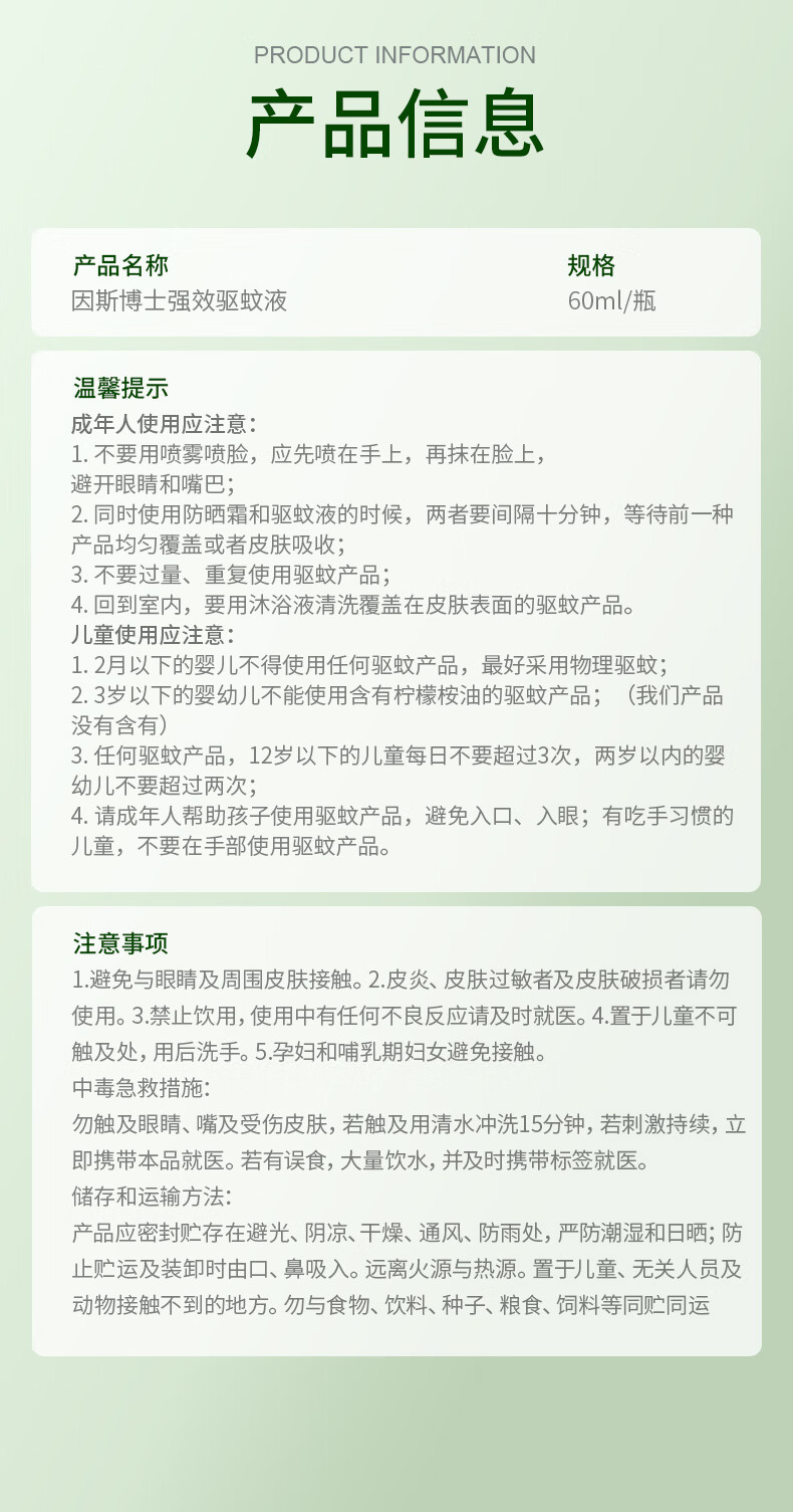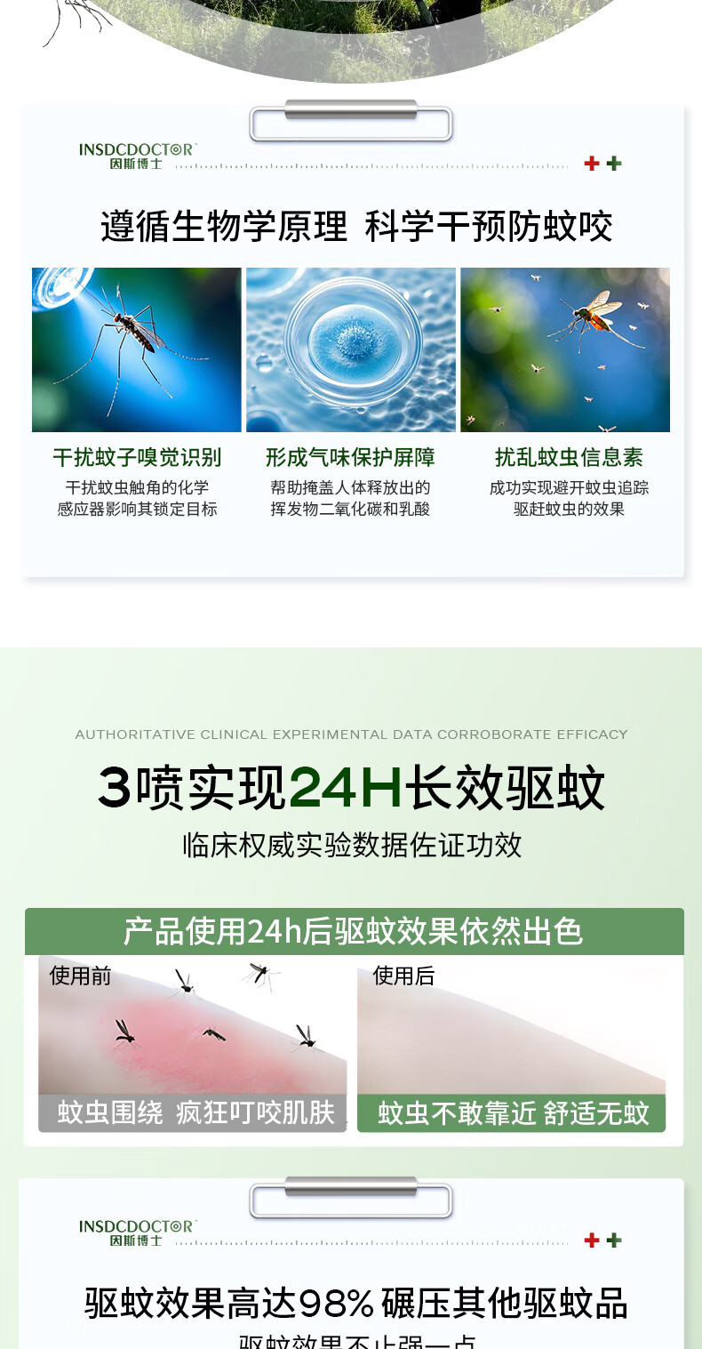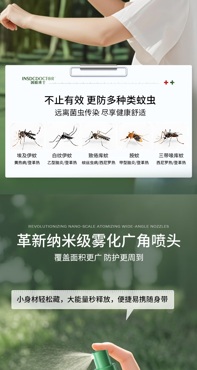 因斯博士驱蚊液喷雾户外基孔肯雅热防蚊虫叮咬消肿止痒儿童可用60ml*2瓶