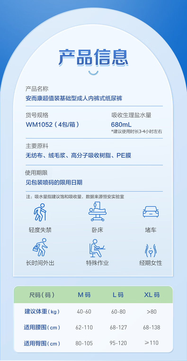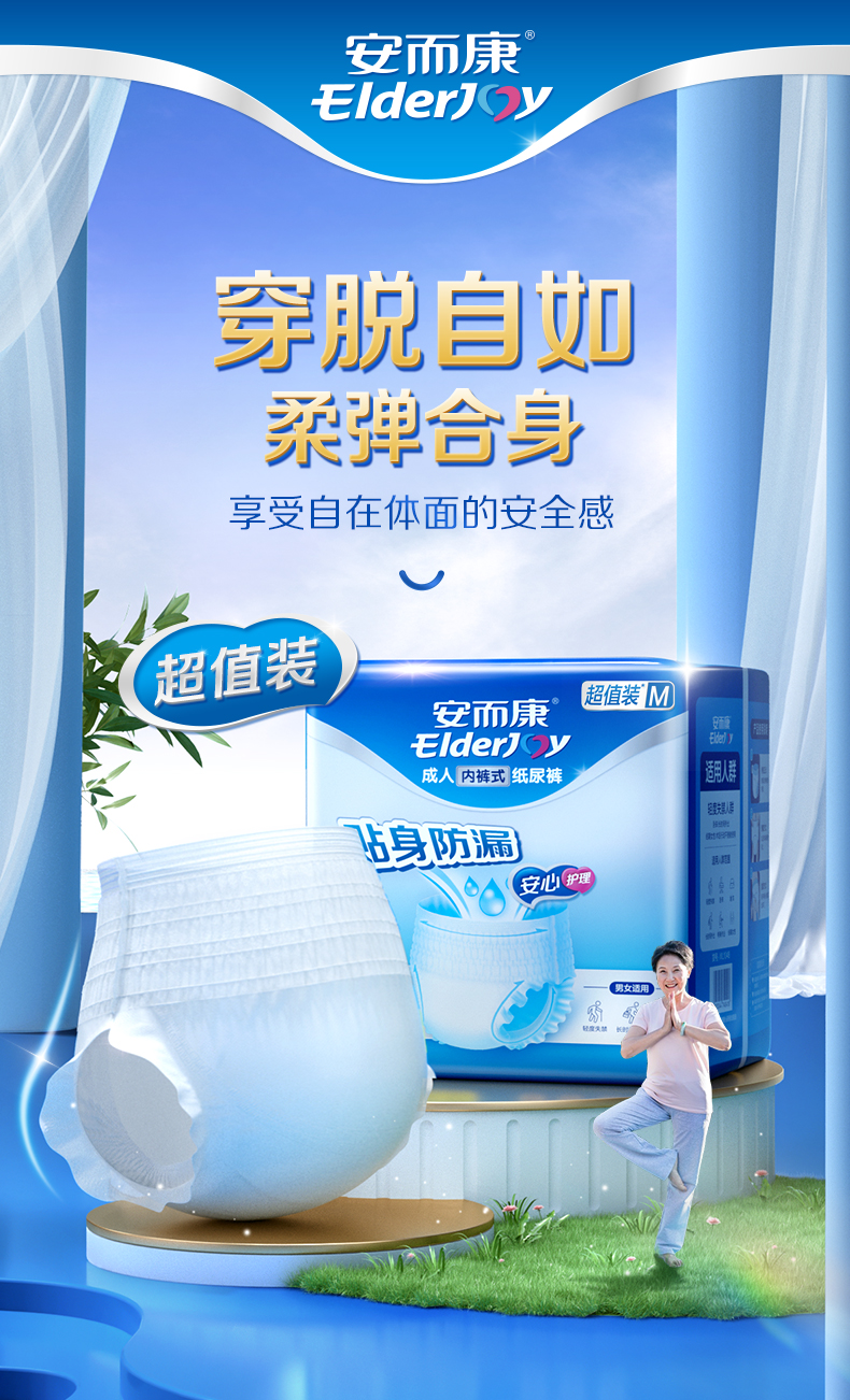 安而康(Elderjoy)超值装基础型成人拉拉裤M52片臀围80-105cm内裤式成人纸尿裤老人