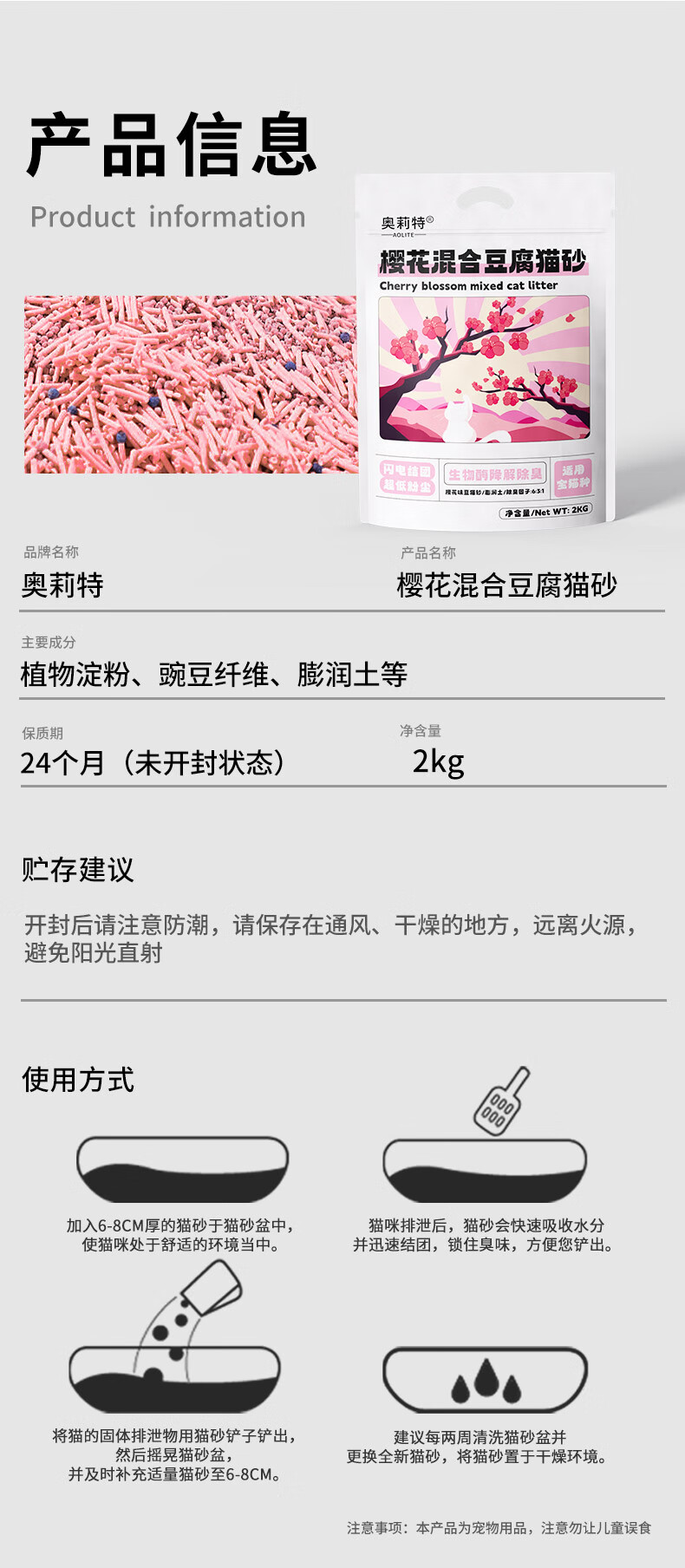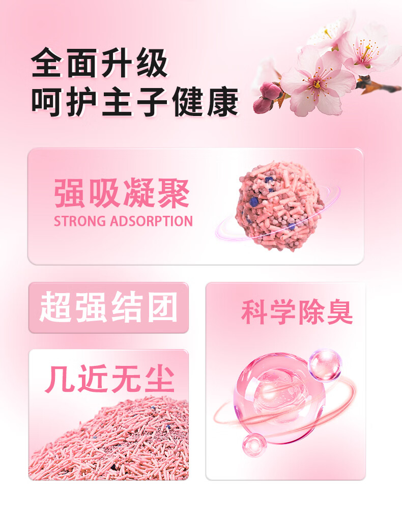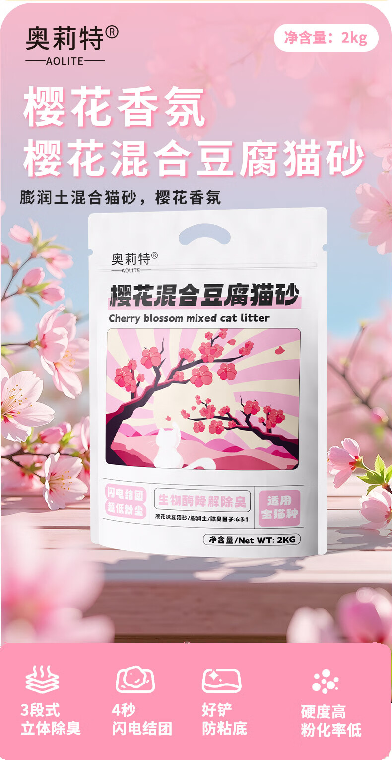 奥莉特樱花混合猫砂除臭低尘可冲厕豆腐猫砂秒结团不散团猫咪用品 樱花味混合猫砂2kg*2袋