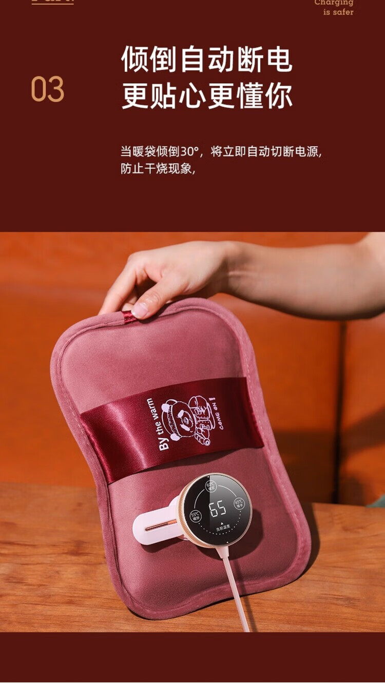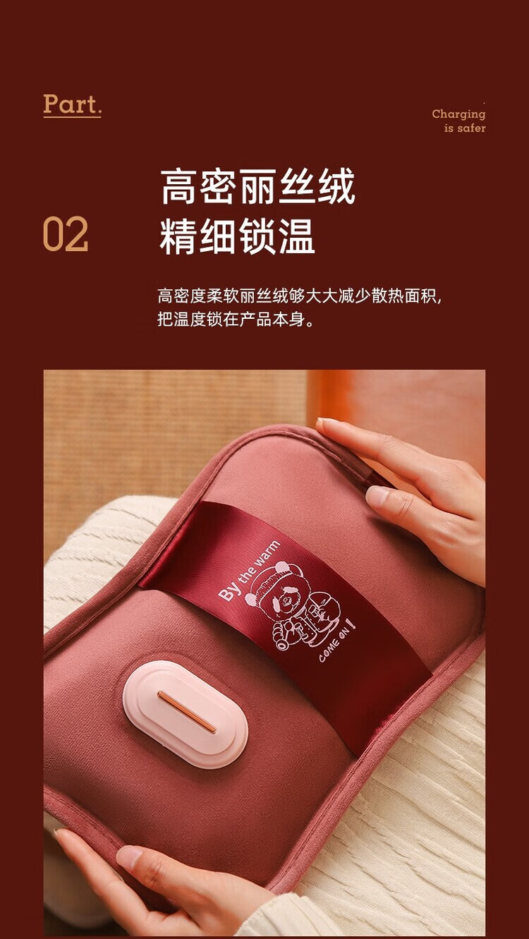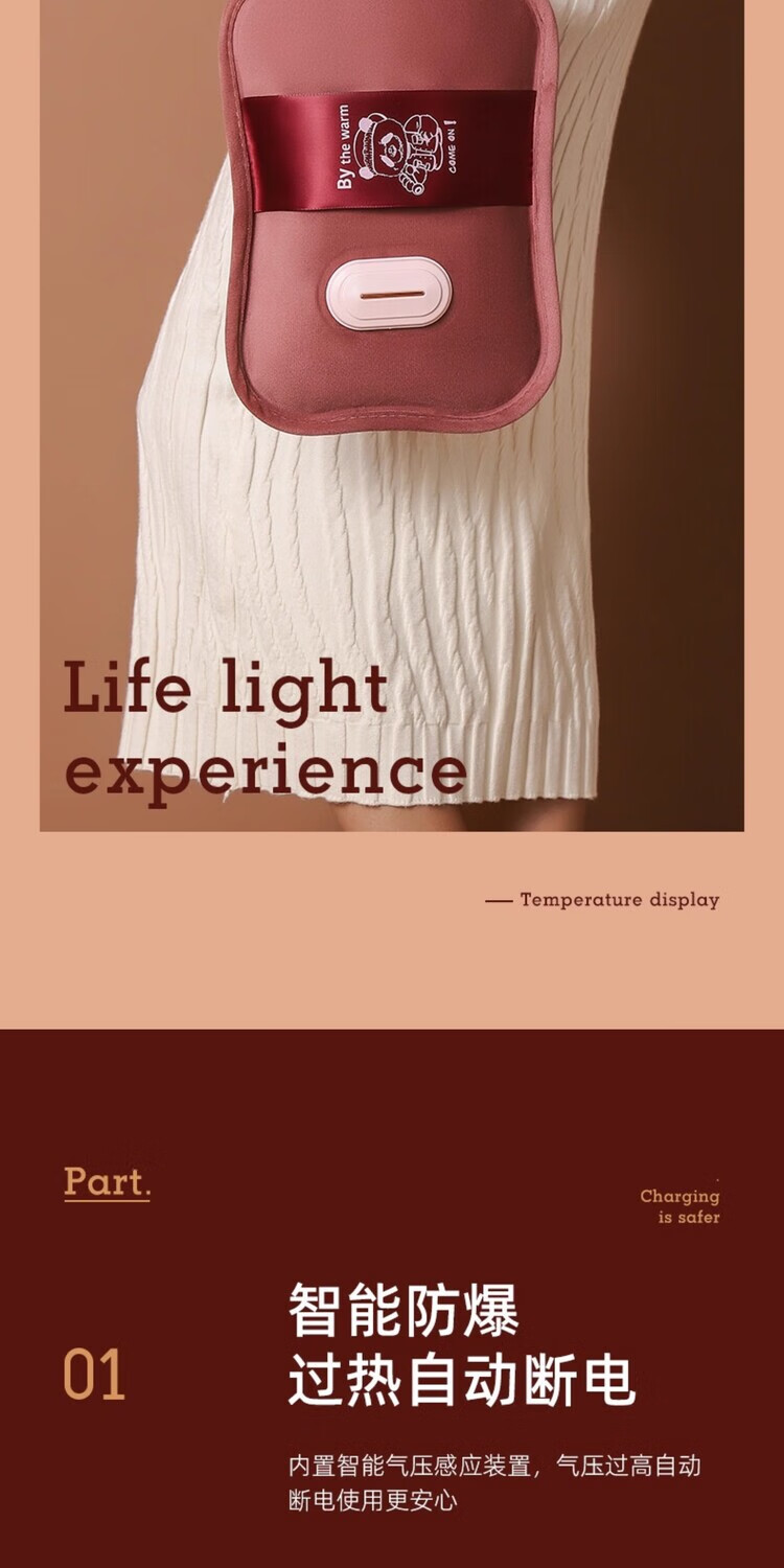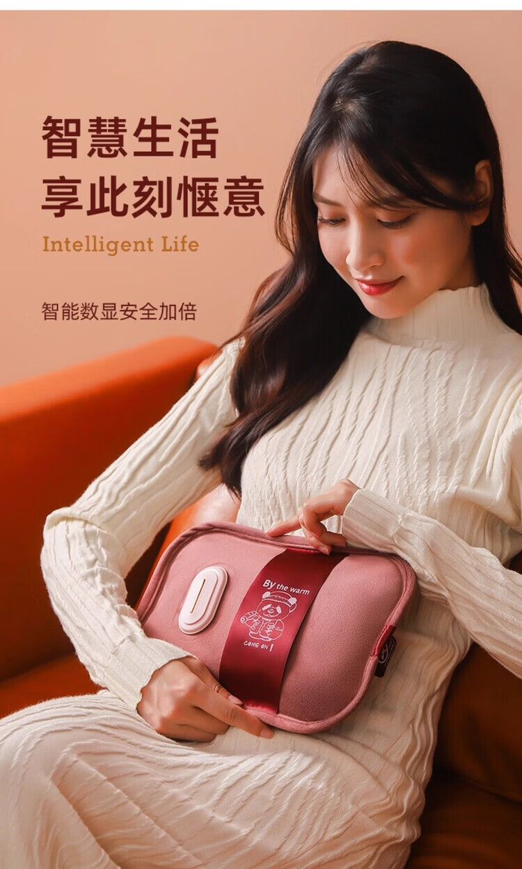 AILUKI日本智能热水袋充电式加厚防爆免注水暖手宝新款老人专用暖肚子 拉菲红)热水袋+无极控温充电器