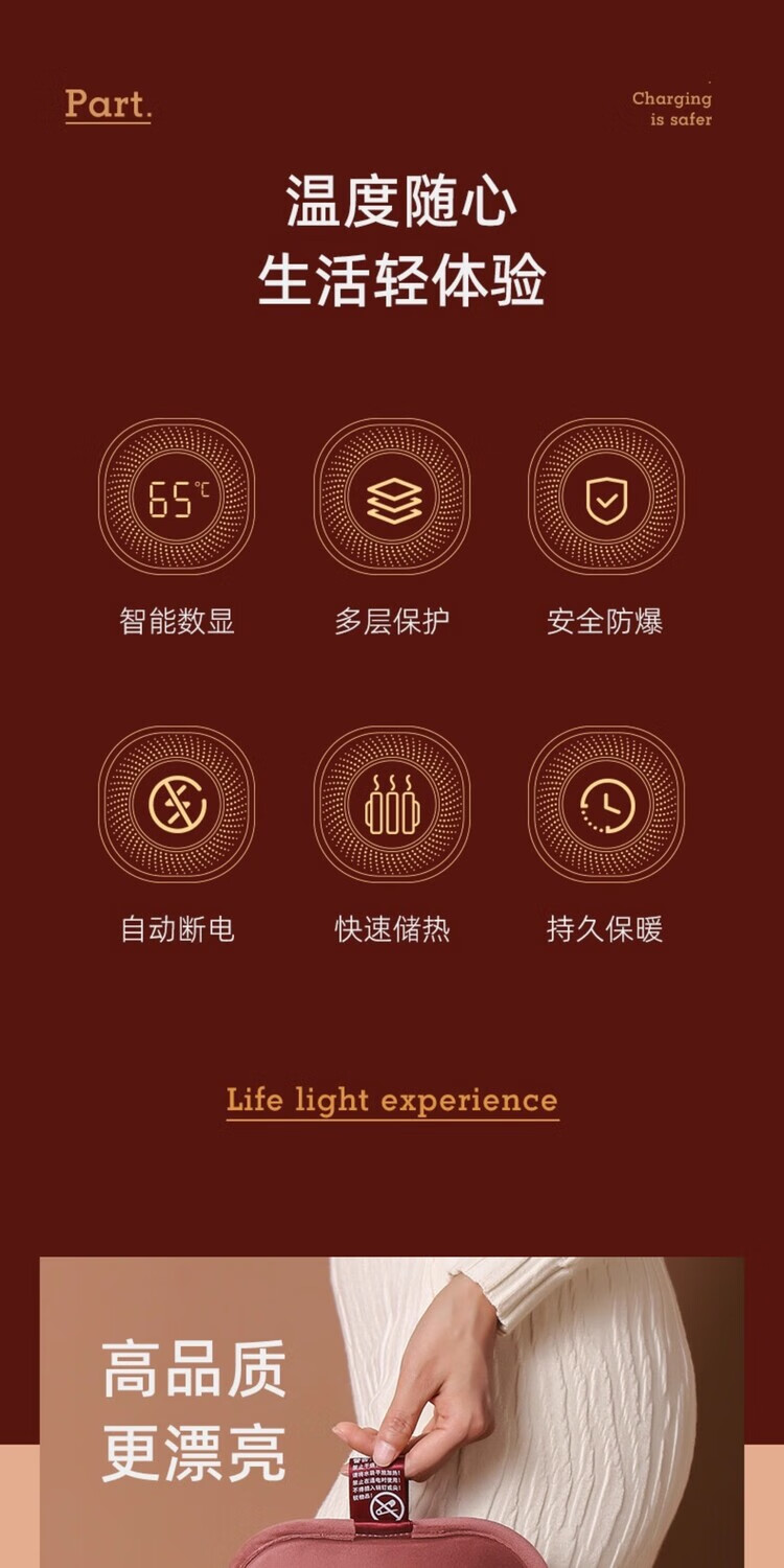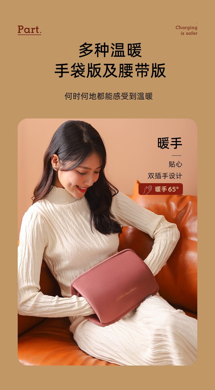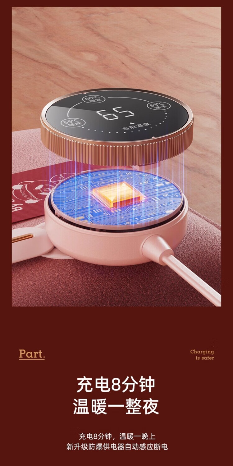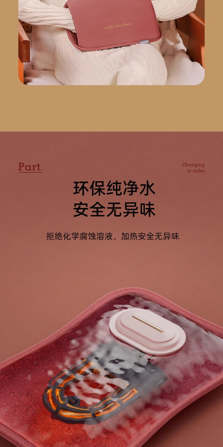 AILUKI日本智能热水袋充电式加厚防爆免注水暖手宝新款老人专用暖肚子 拉菲红)热水袋+无极控温充电器