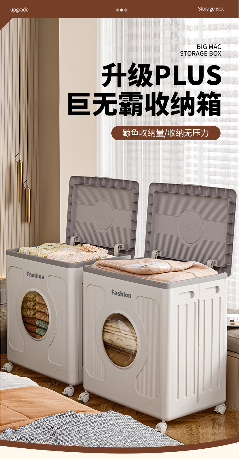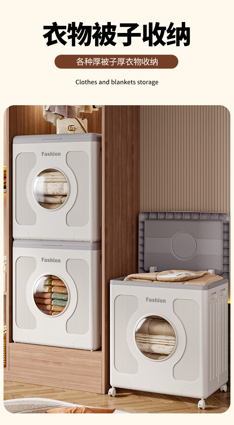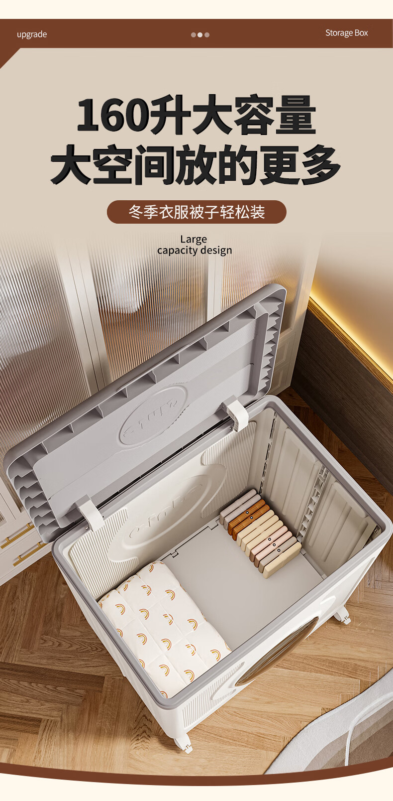 BABY VIEW衣服收纳箱家用大容量翻盖玩具杂物被子整理箱可折叠收纳柜储物柜 160L 灰色 【带滑轮+翻盖】1个装