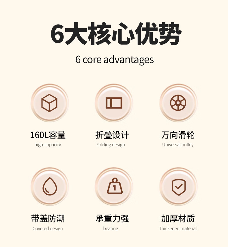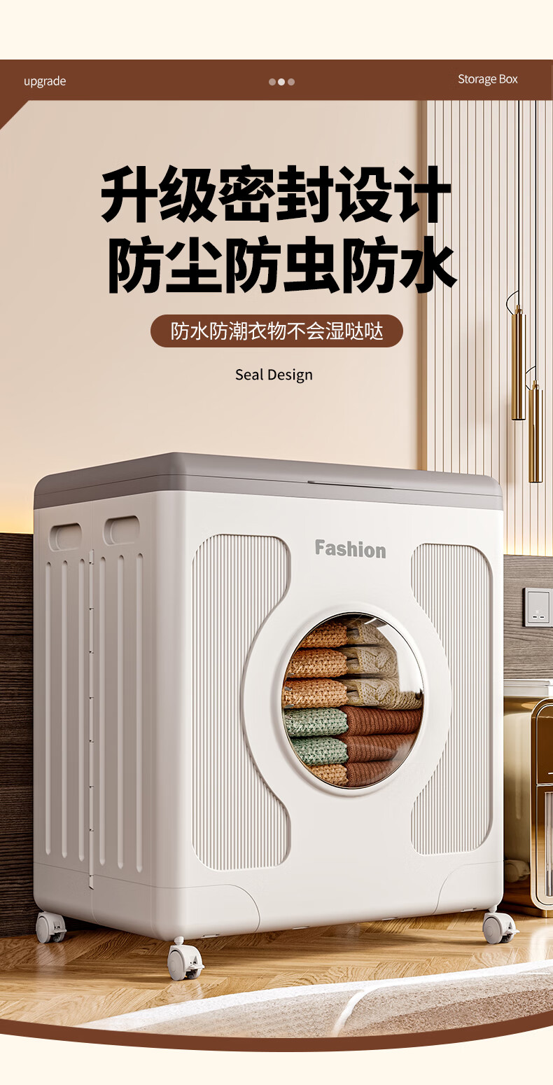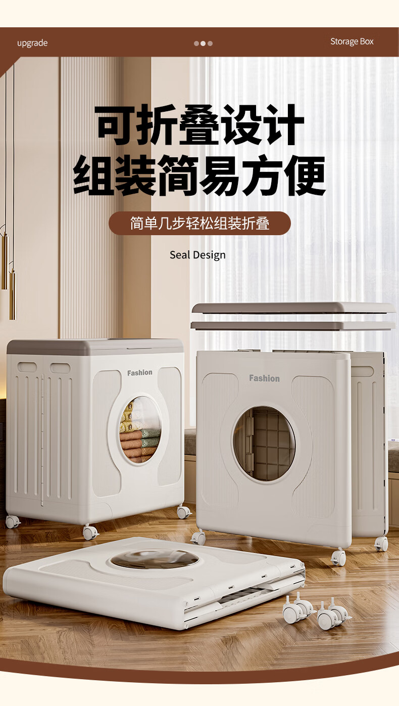 BABY VIEW衣服收纳箱家用大容量翻盖玩具杂物被子整理箱可折叠收纳柜储物柜 160L 灰色 【带滑轮+翻盖】1个装