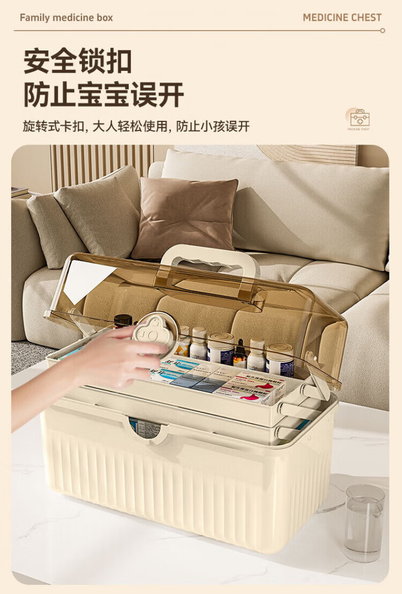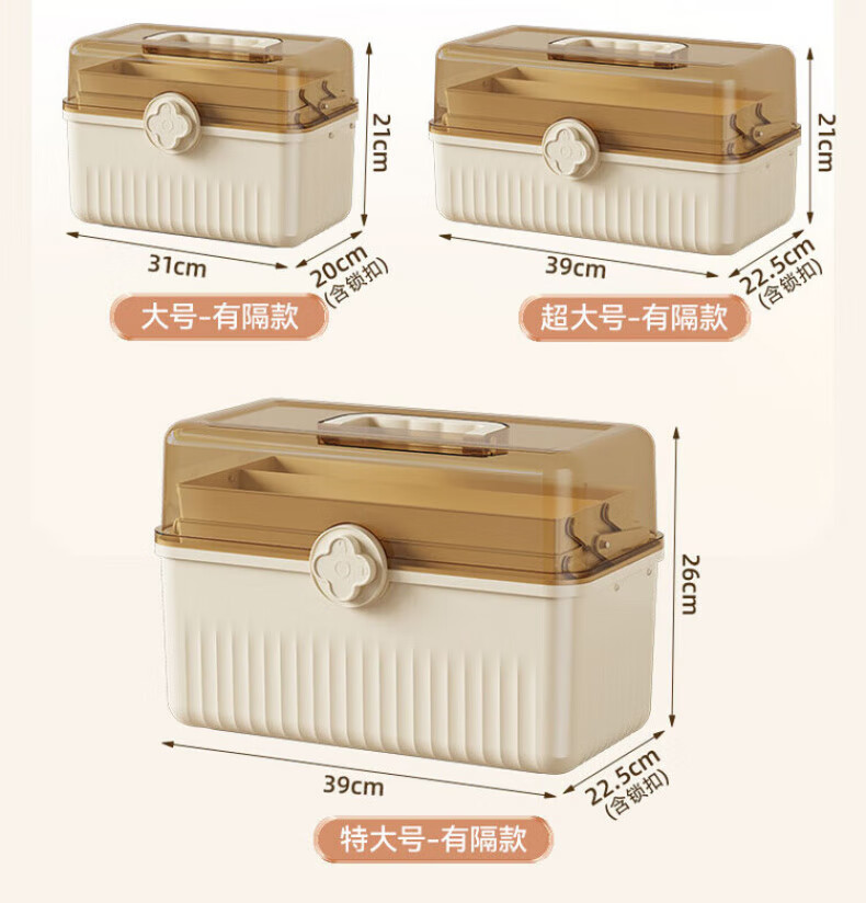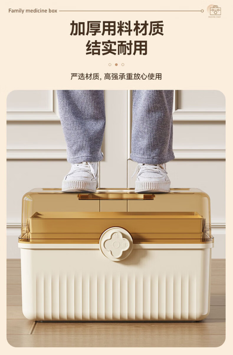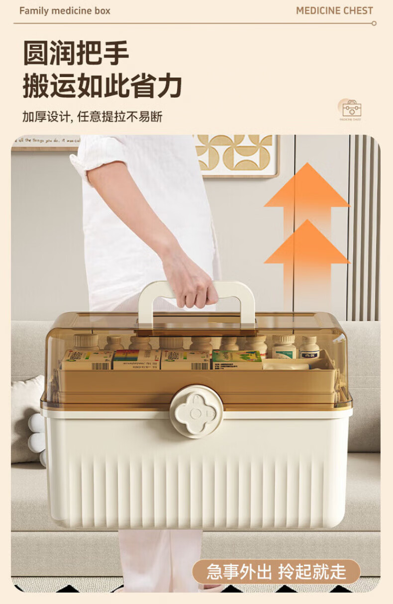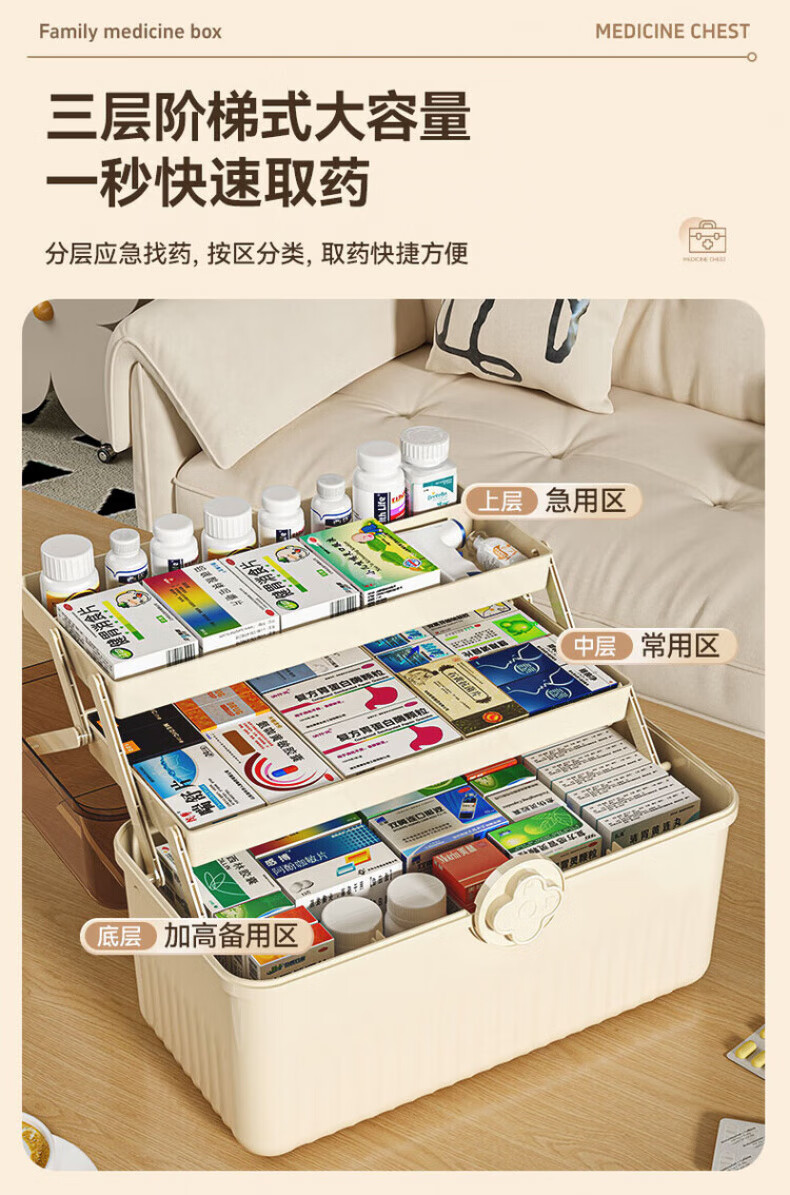 DEATKN德国药箱收纳盒大号家庭装医药箱家用药物装药品大容量手提医疗箱 特大号3层 奶油白 升级加厚【推荐4-6人家庭】