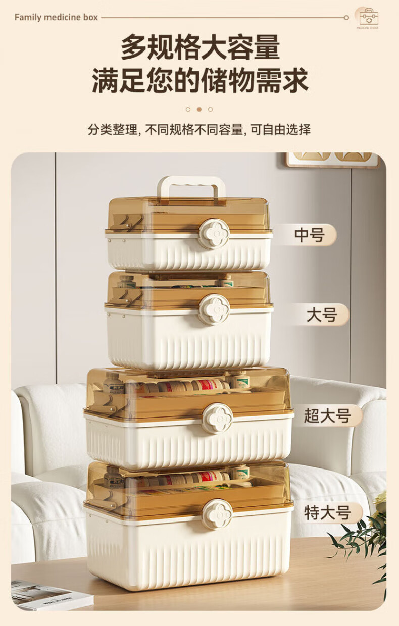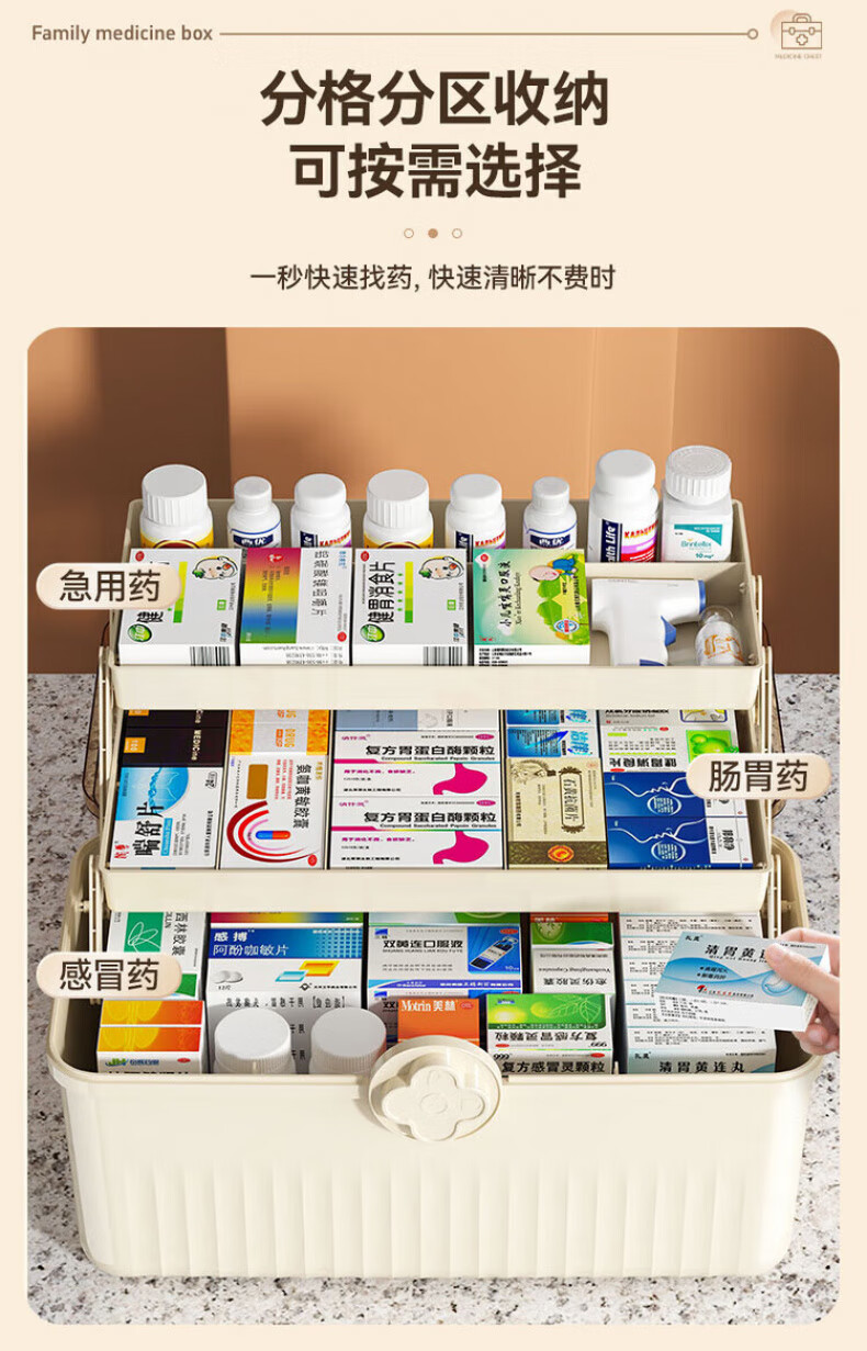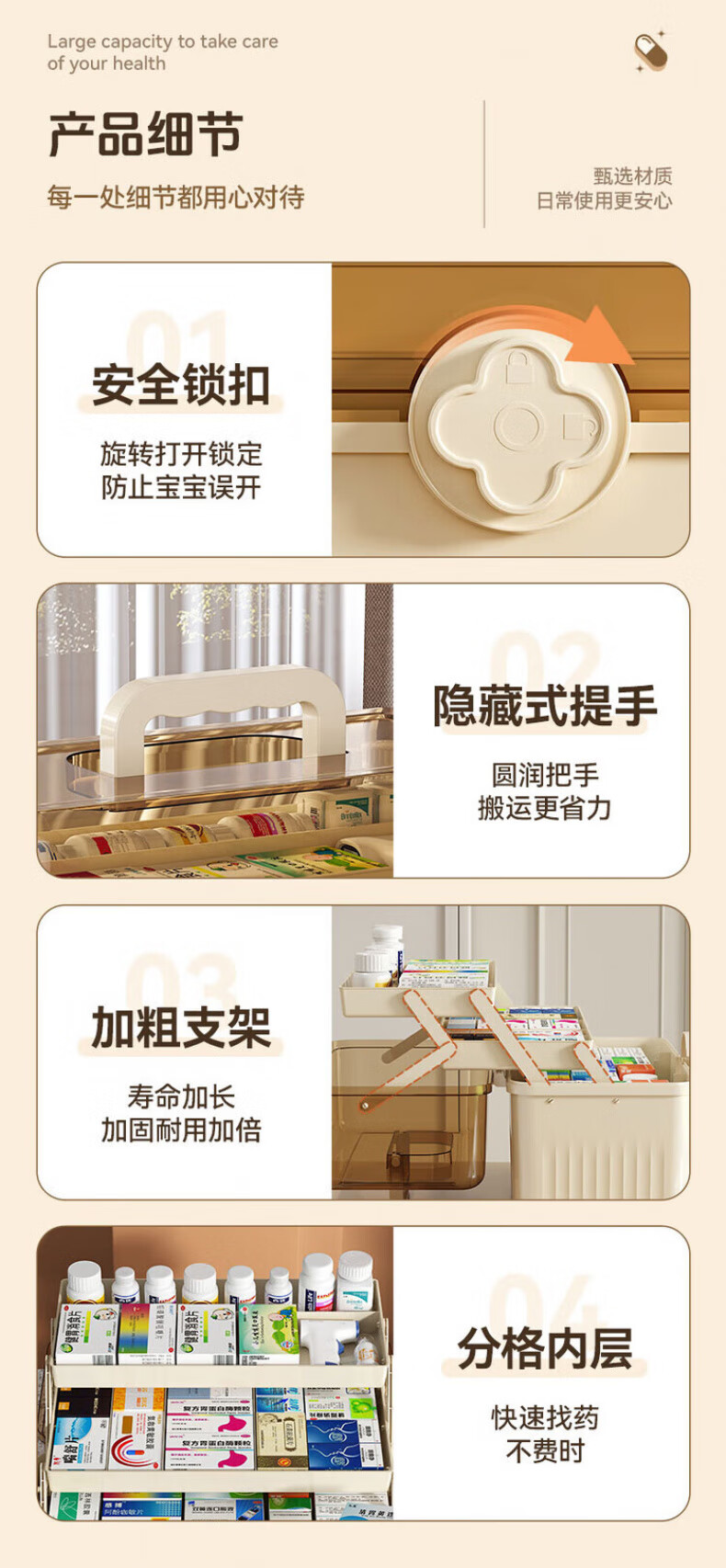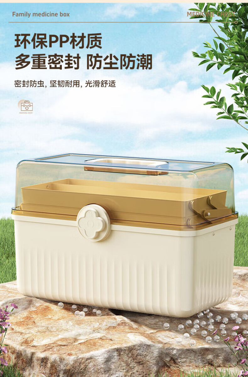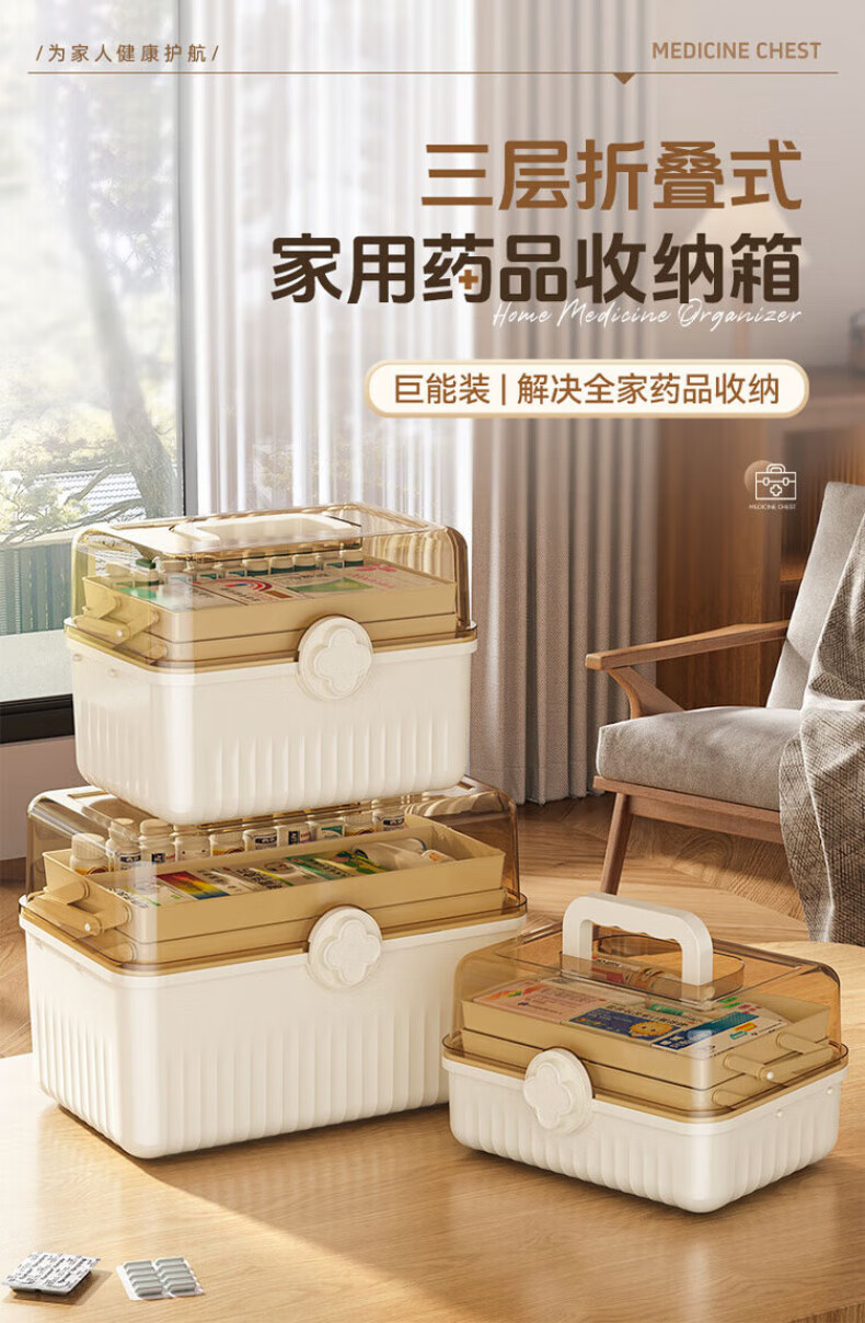 DEATKN德国药箱收纳盒大号家庭装医药箱家用药物装药品大容量手提医疗箱 特大号3层 奶油白 升级加厚【推荐4-6人家庭】
