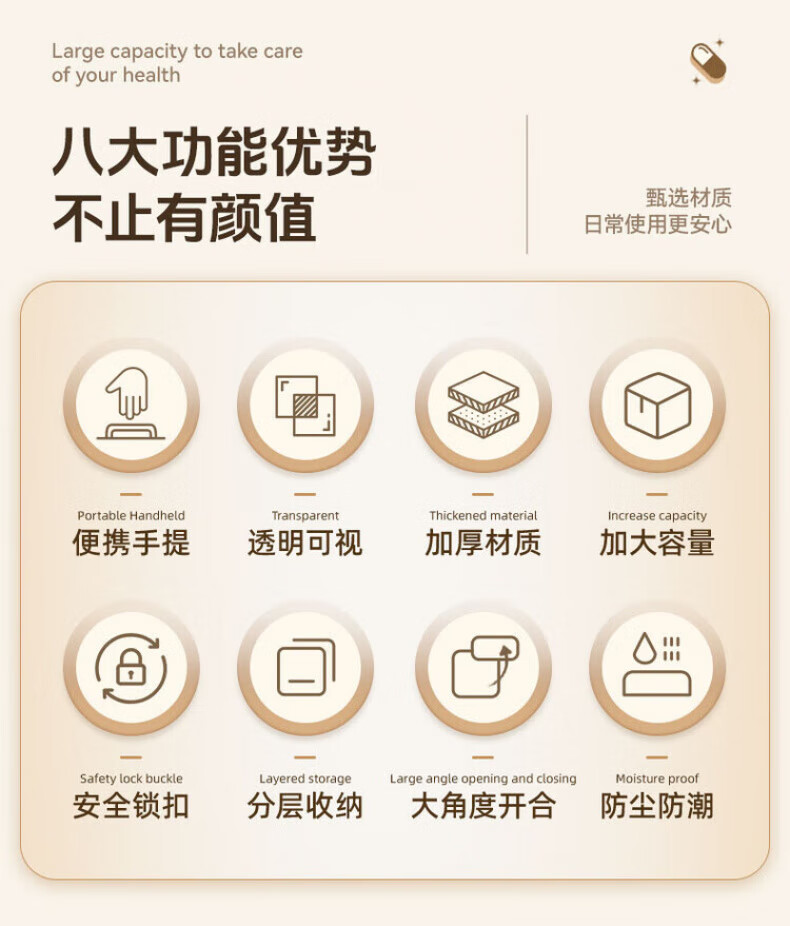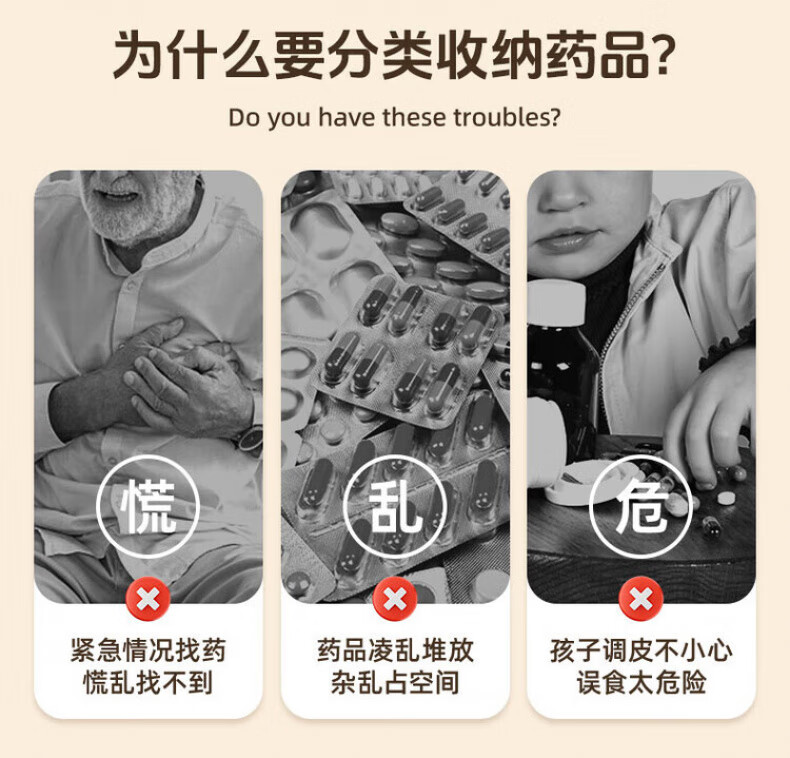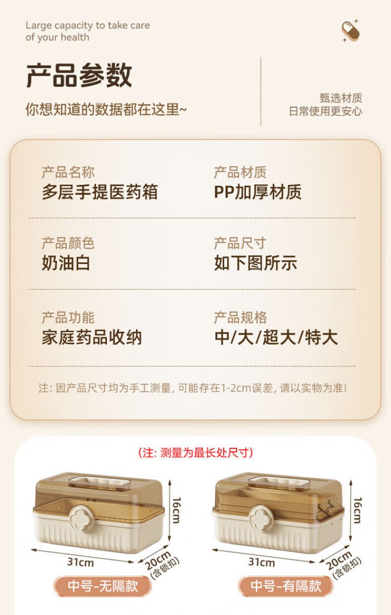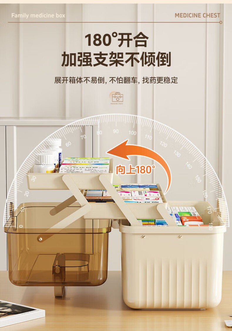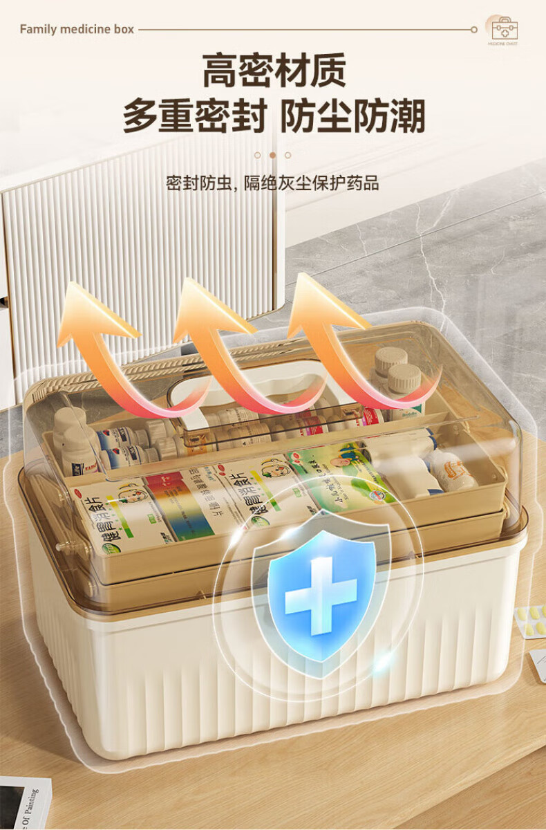 DEATKN德国药箱收纳盒大号家庭装医药箱家用药物装药品大容量手提医疗箱 特大号3层 奶油白 升级加厚【推荐4-6人家庭】