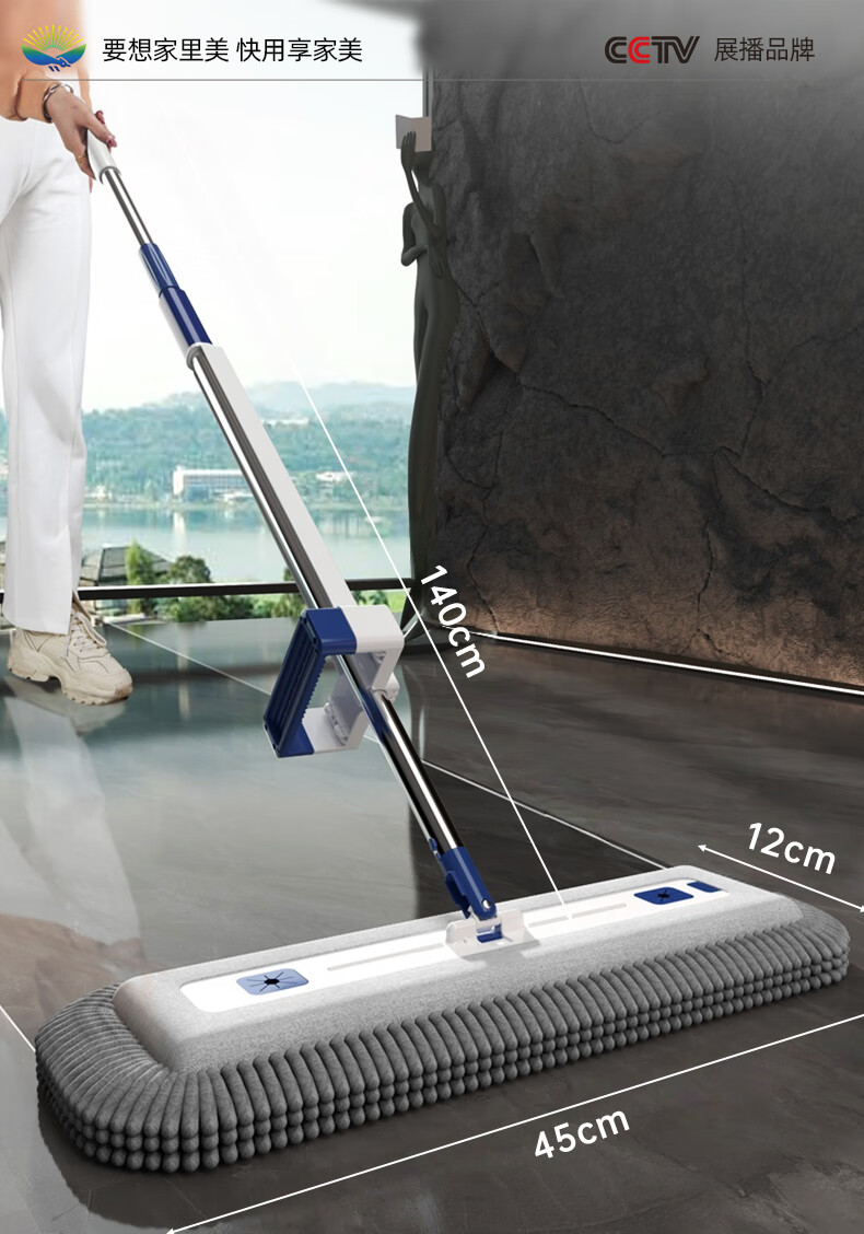 DEATKN德国雪尼尔拖把家用一拖净2025新款免手洗懒人拖地吸水平板墩干湿 蓝色送桶套装【45cm大拖把+2块原装布】优质雪尼