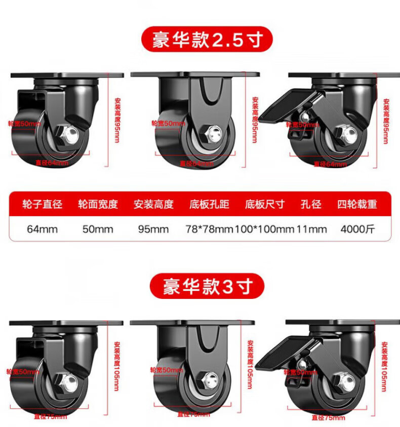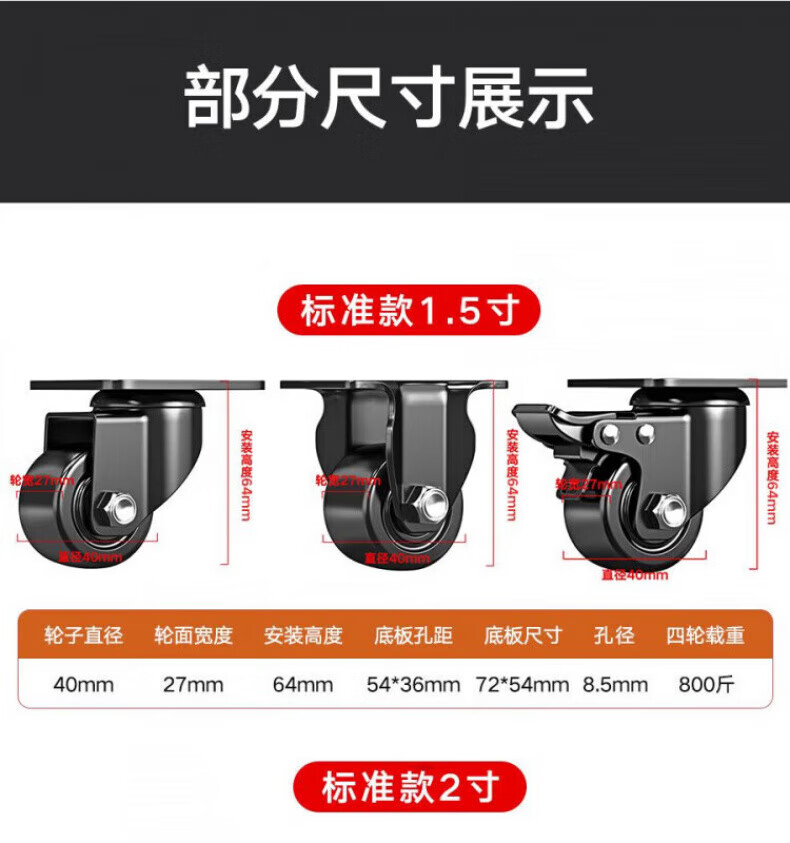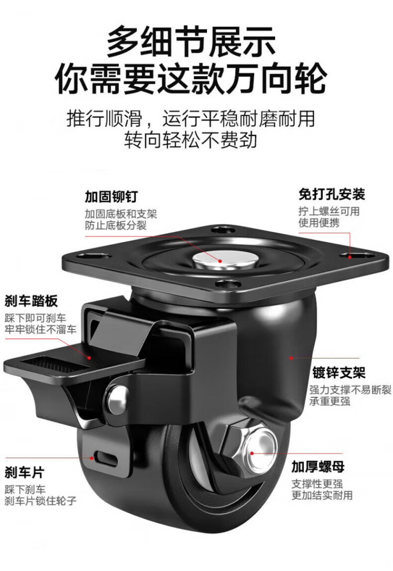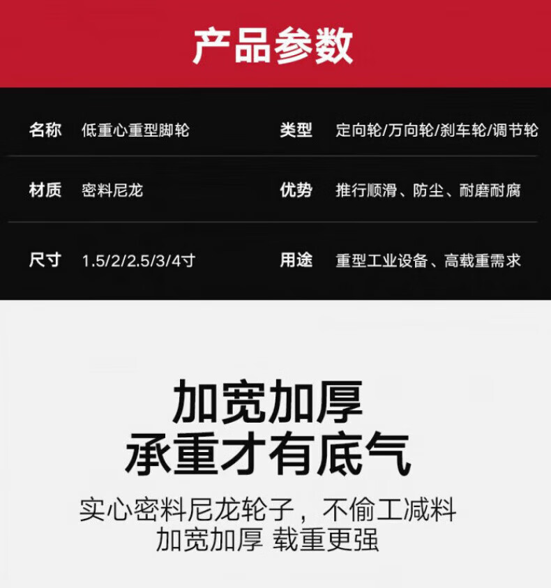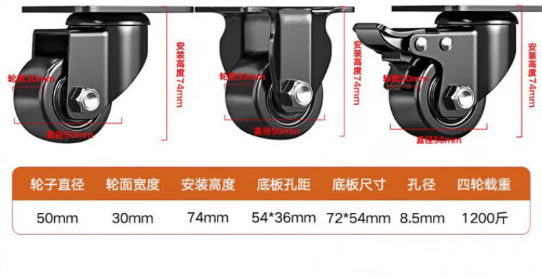 DEATKN德国超重型脚轮万向轮子低重心工业级顺滑尼龙推车轱辘承重 1.5寸(4只万向轮)