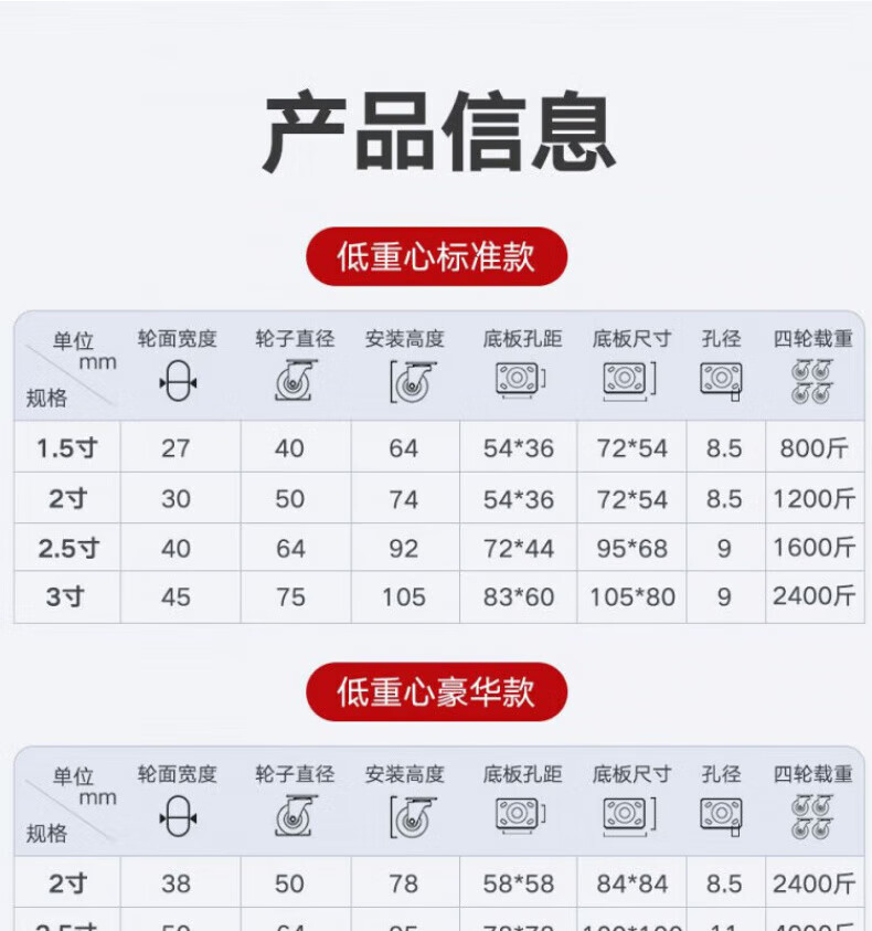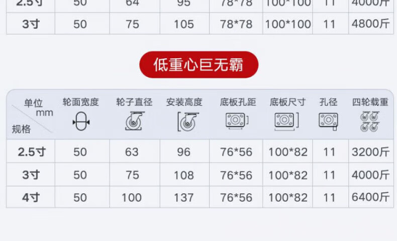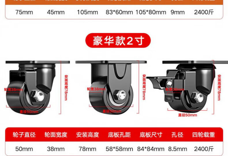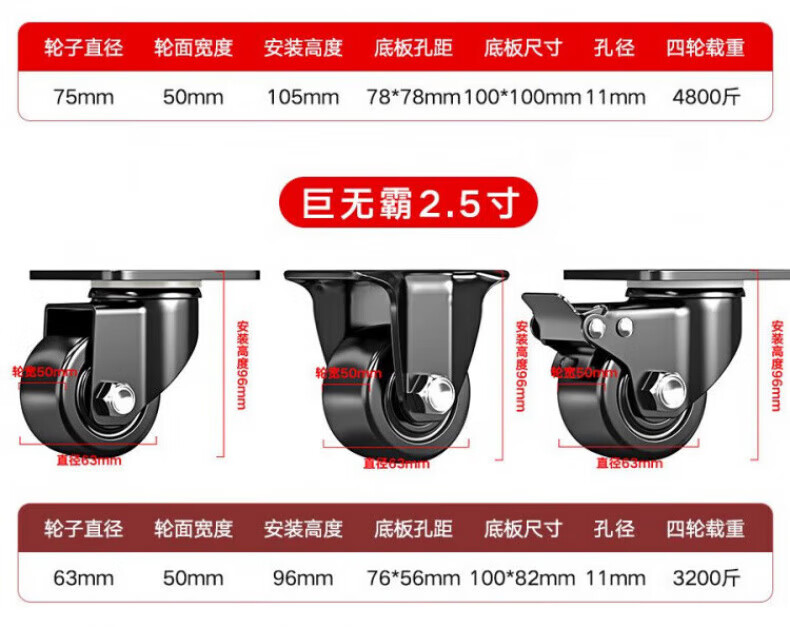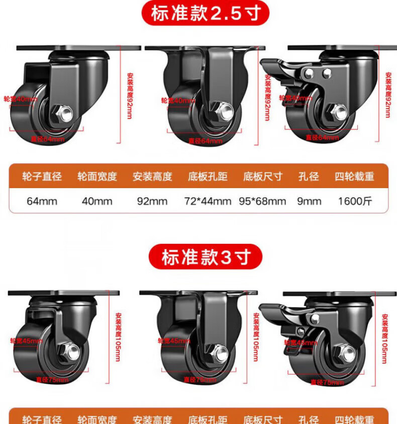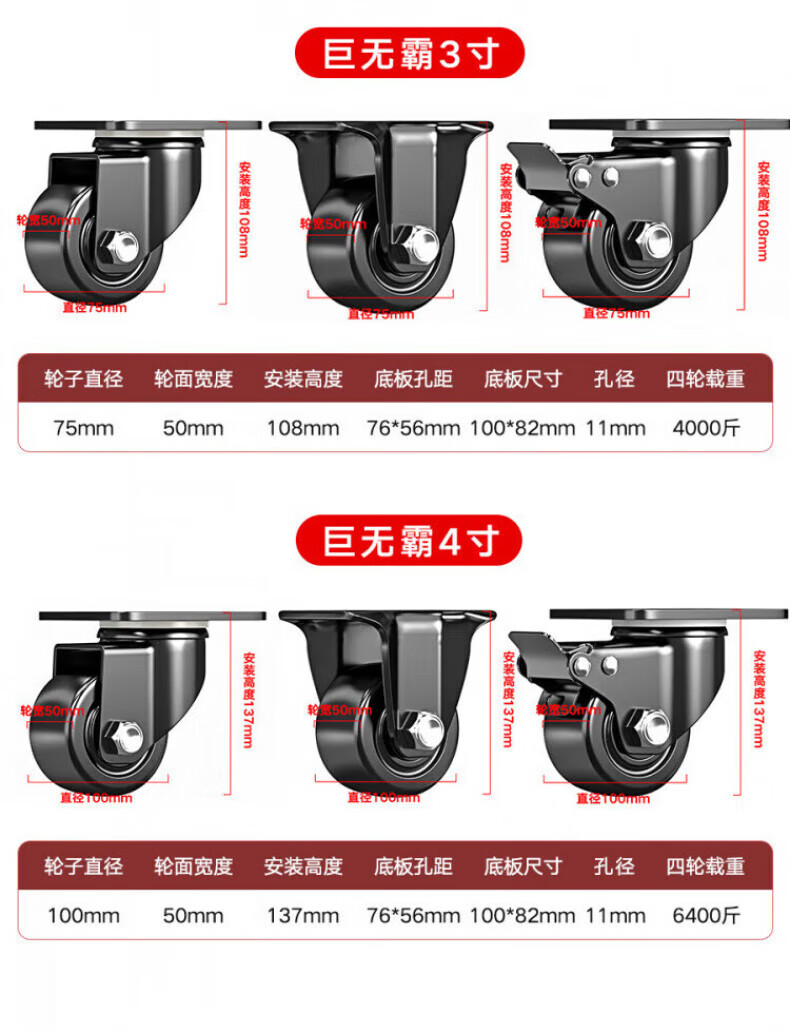 DEATKN德国超重型脚轮万向轮子低重心工业级顺滑尼龙推车轱辘承重 1.5寸(4只万向轮)