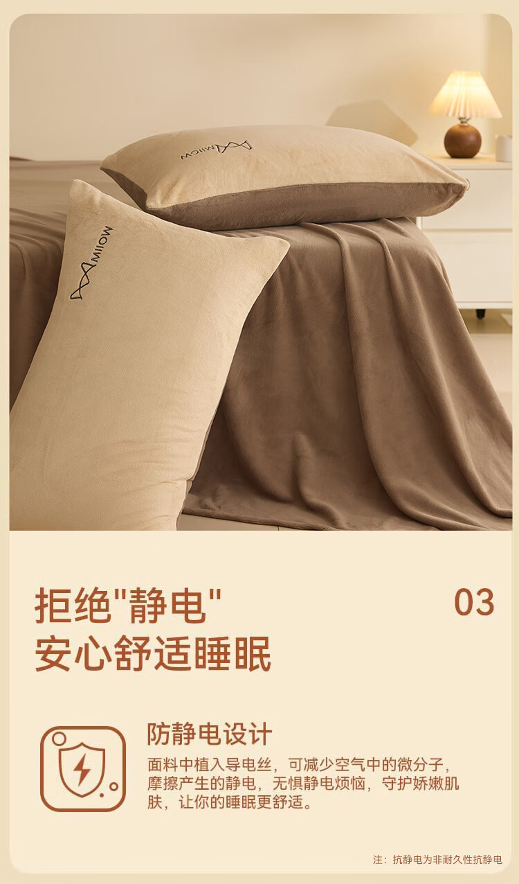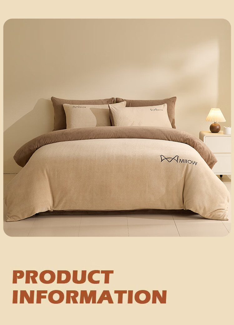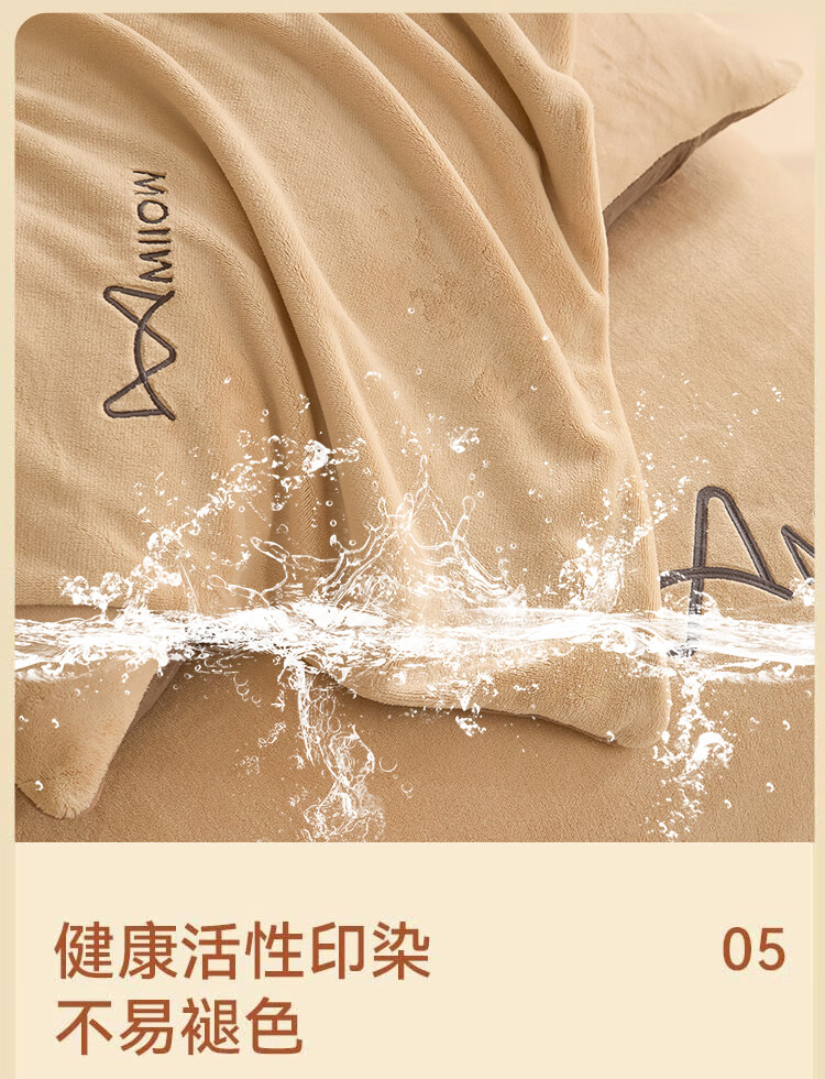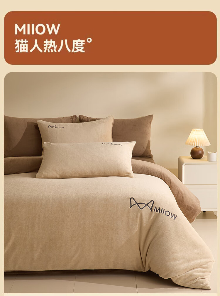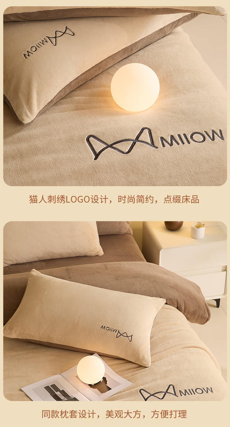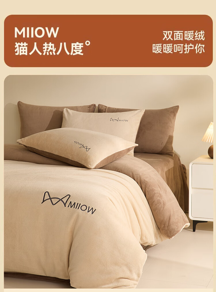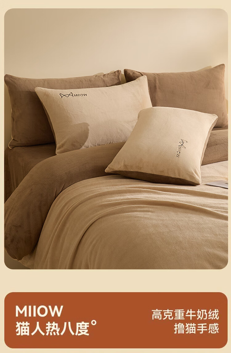 猫人牛奶绒纯色床上用品四件套秋冬季保暖床单被套床笠珊瑚绒三件套 杏仁色-米咖【高克重牛奶绒】 1.8m 床单款 四件套-200x230cm被套