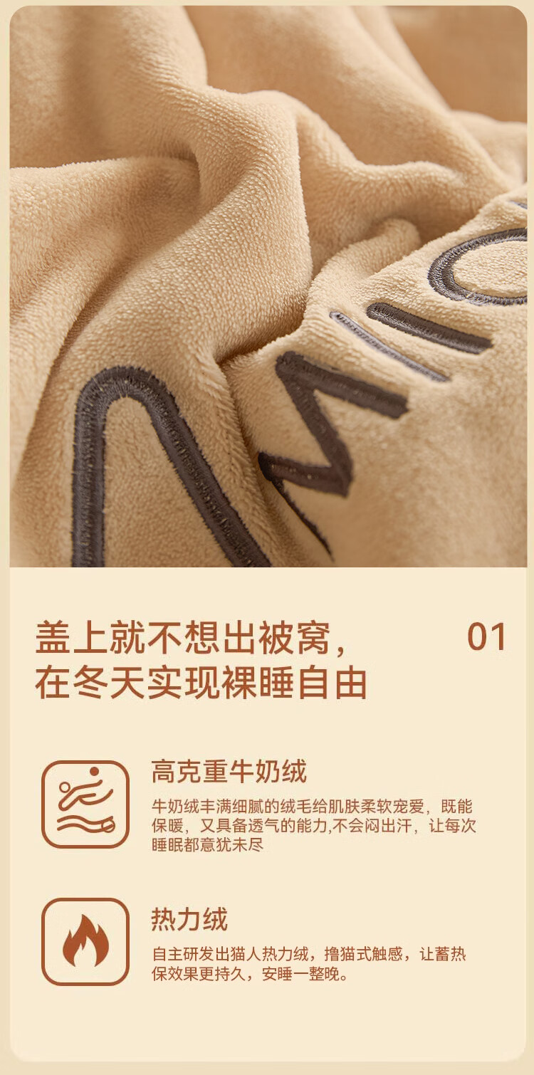 名创优品法兰绒毛毯冬季加厚加绒珊瑚绒午睡小毯子披肩学生单人空调盖被子 欧式-奶咖色【加厚绒毛 抗静电】 【加大单人毯】150*200cm