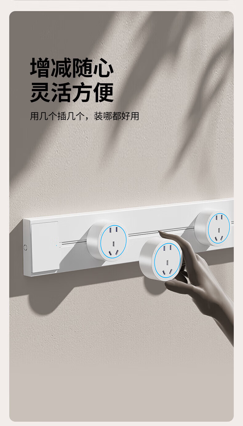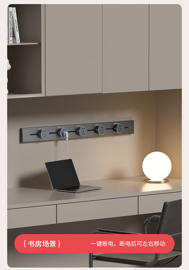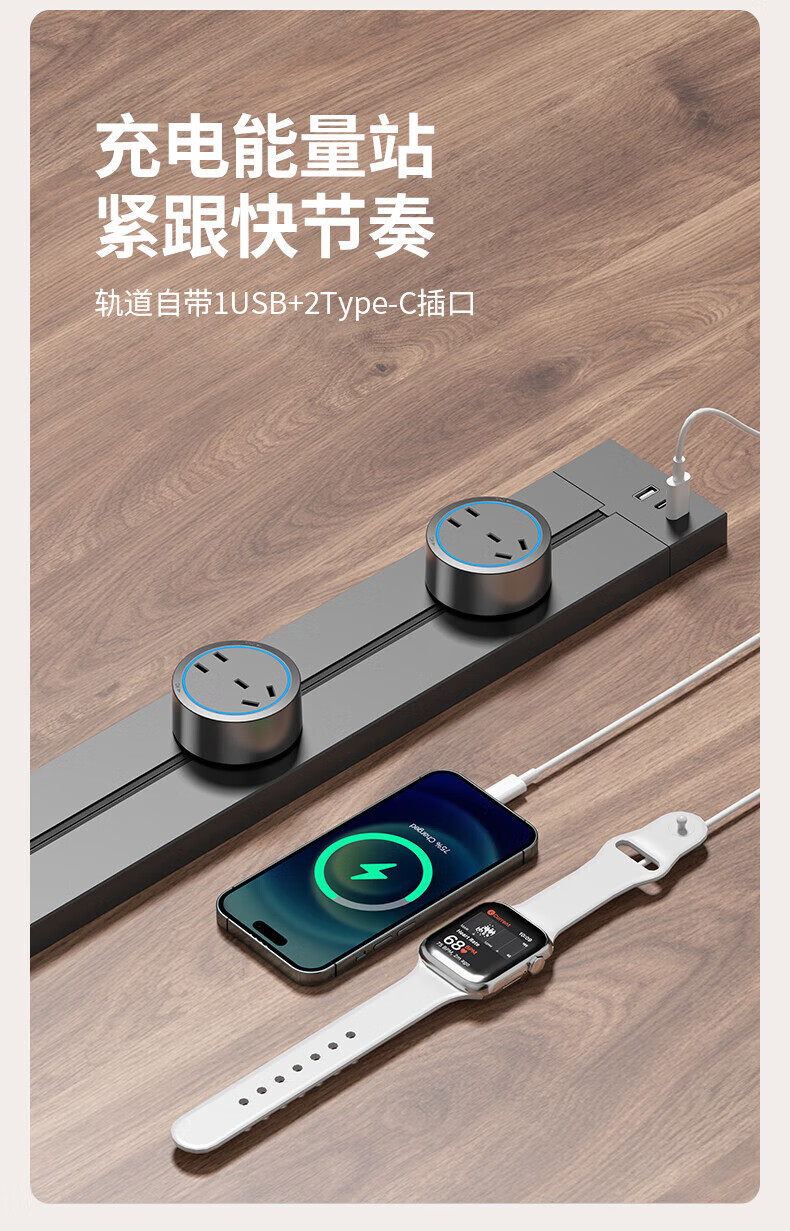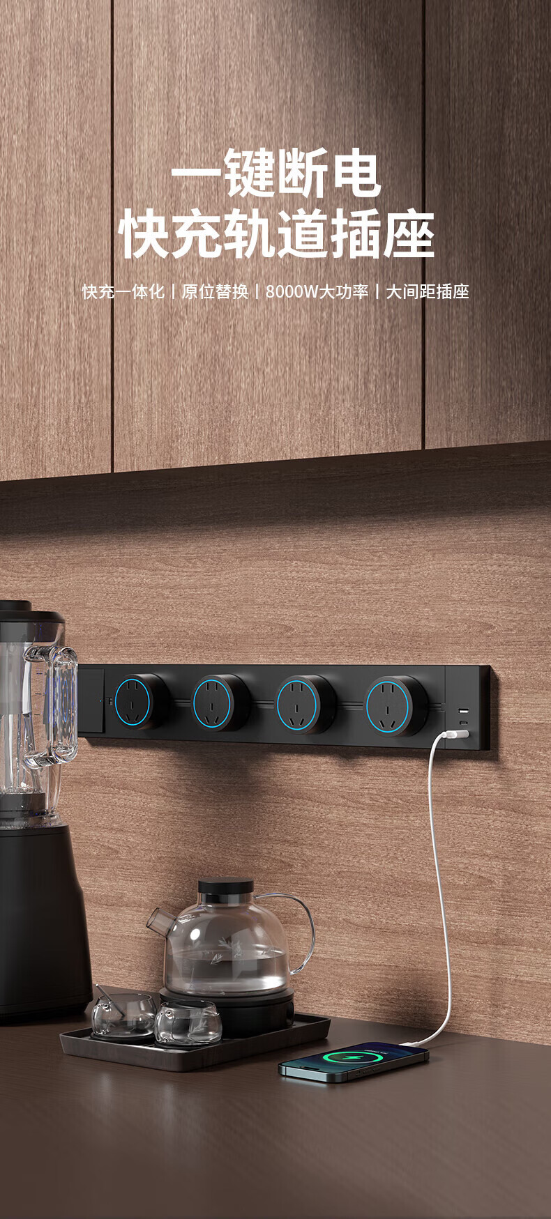 国际电工可移动快充轨道插座家用厨房餐边柜滑轨滑动导轨插排usb+c明装 白色【快充U/C】带总控-30厘米+2个大五孔