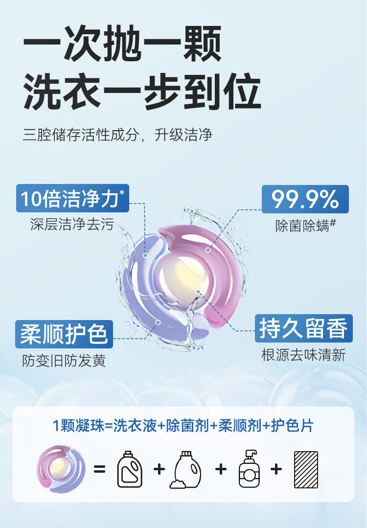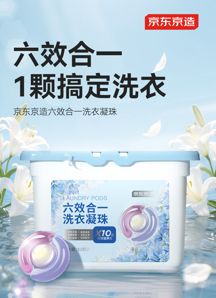 京东京造洗衣凝珠208颗六效合一 洁净浓缩香氛洗衣液 99%除菌除螨百合香氛