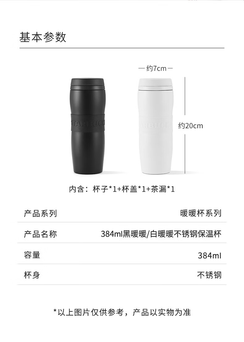 星巴克(Starbucks)保温保冷杯384ml咖啡杯泡茶杯保冷水杯子黑暖暖经典款生日礼物