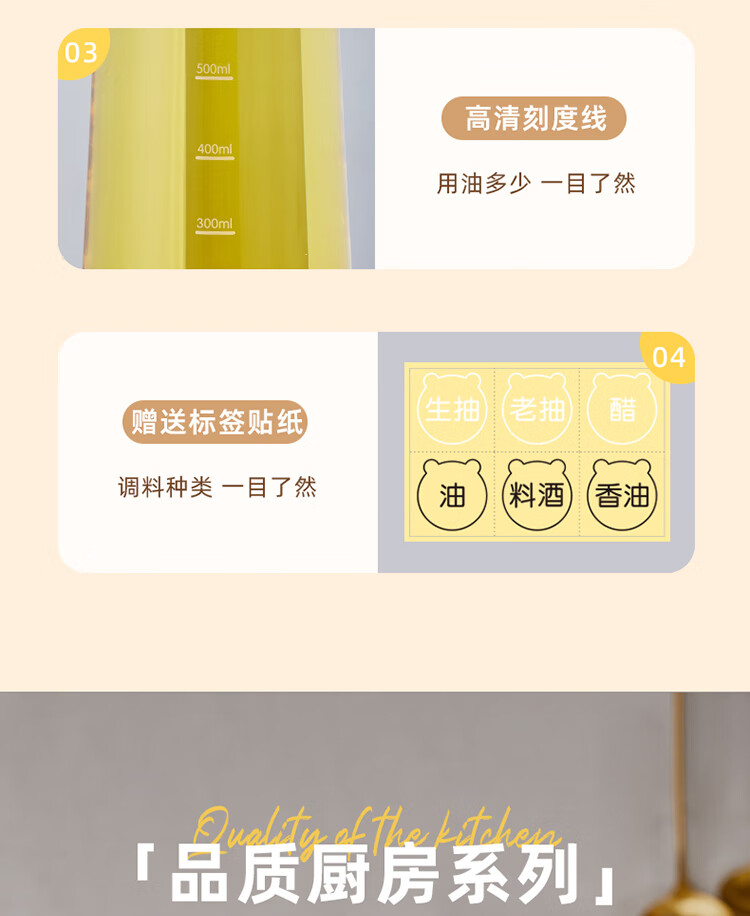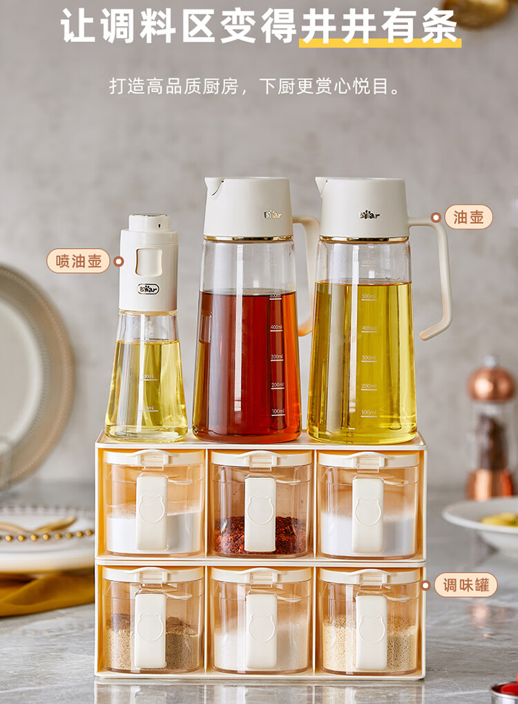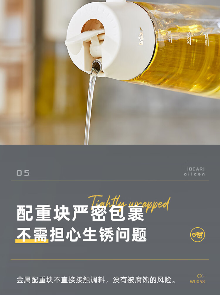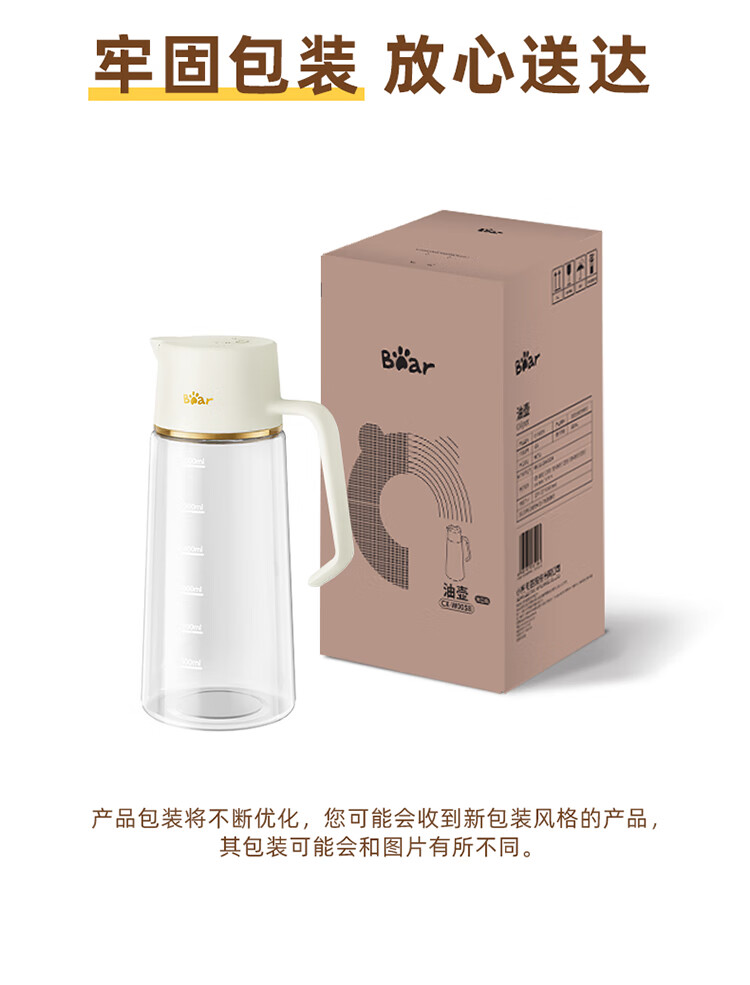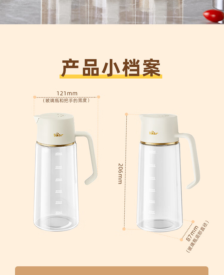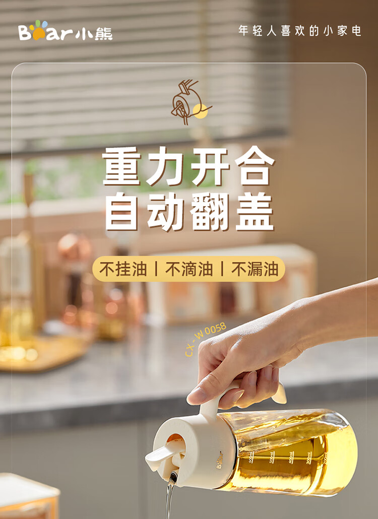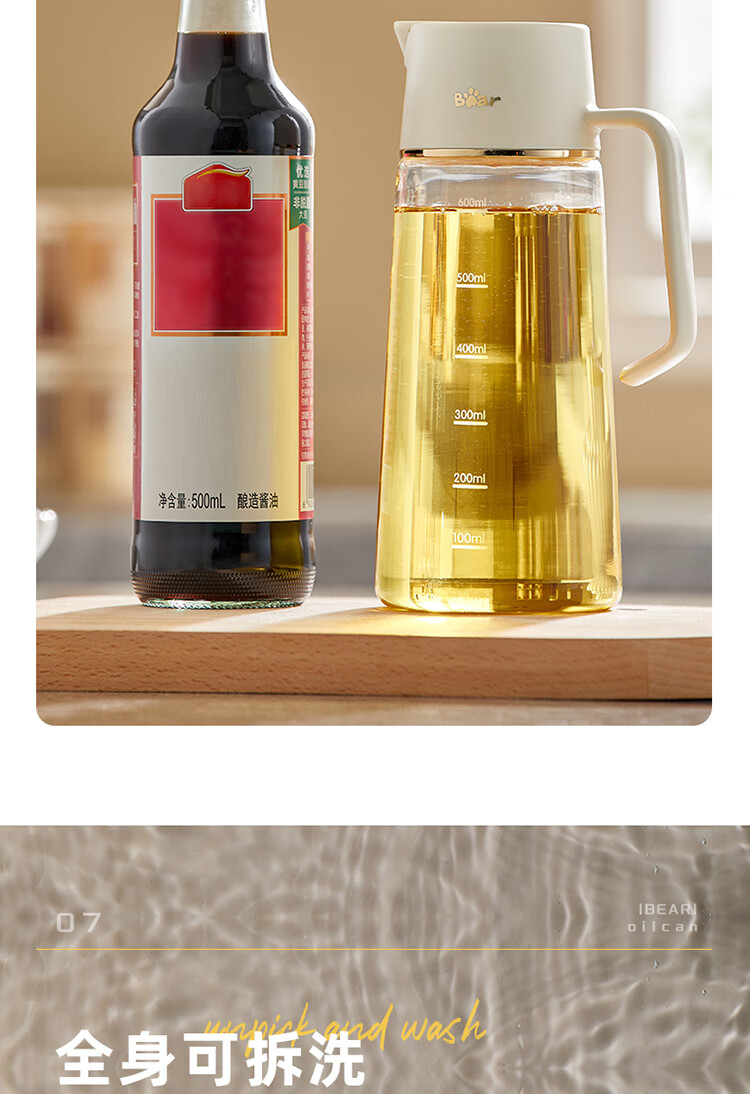 小熊(Bear)油壶 调料瓶抗菌玻璃油瓶酱油瓶600ml 自动开合不挂油CX-W0058