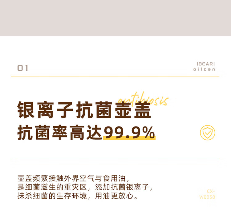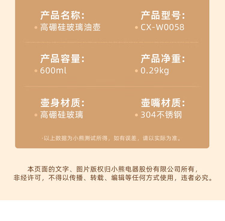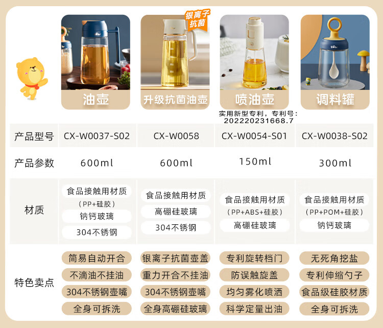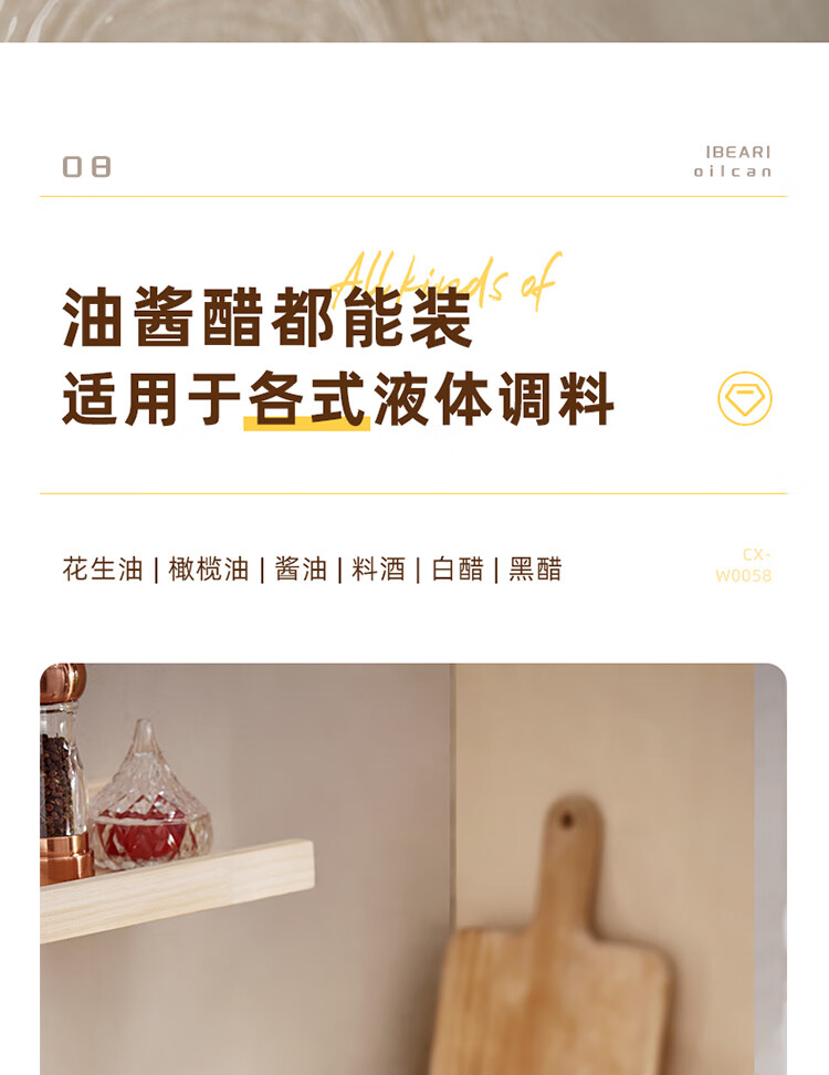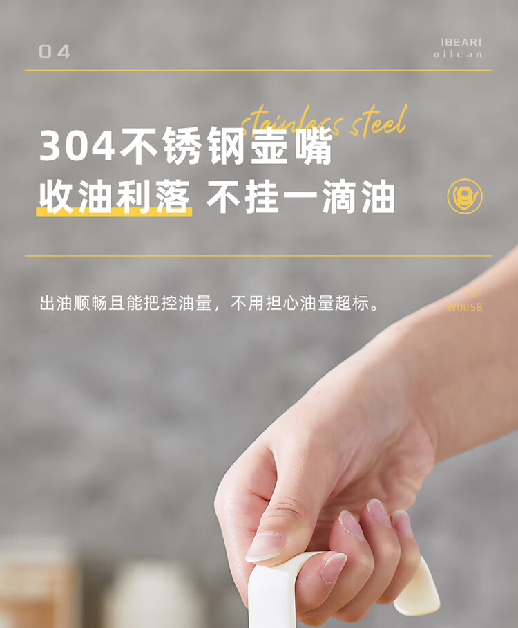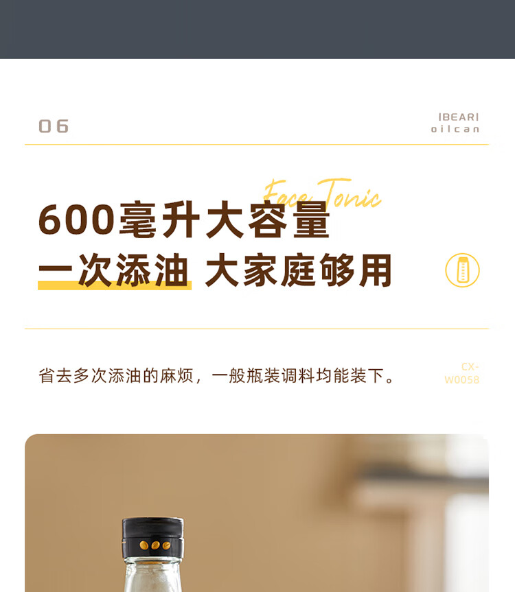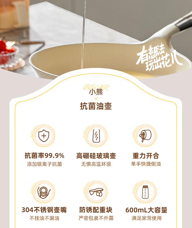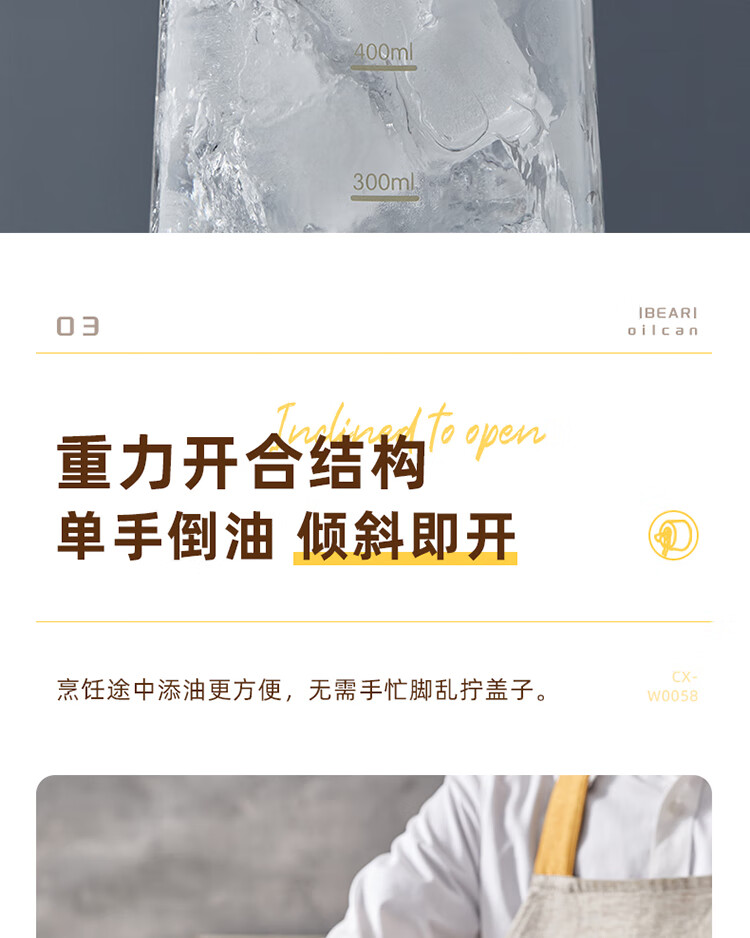 小熊(Bear)油壶 调料瓶抗菌玻璃油瓶酱油瓶600ml 自动开合不挂油CX-W0058