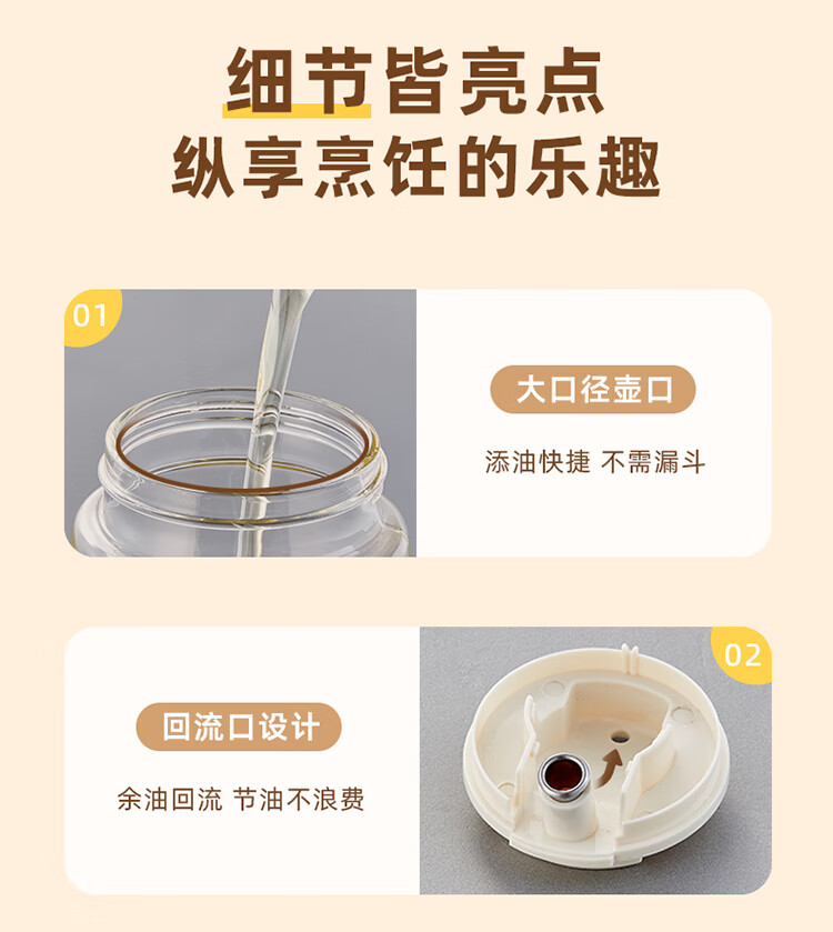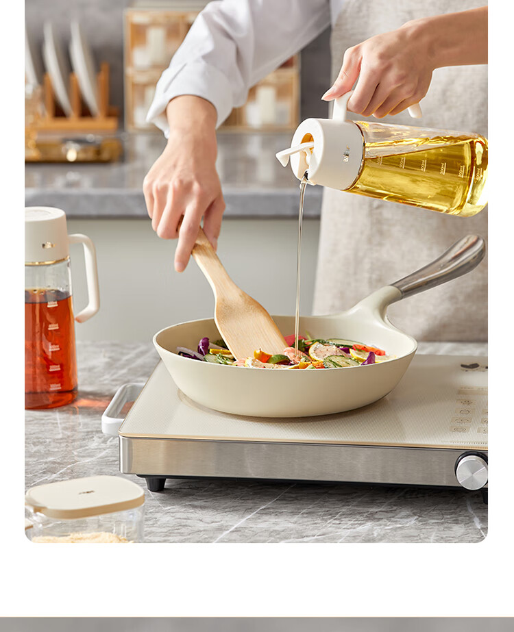 双枪油壶喷油壶 倒油喷油一体食用油玻璃油壶厨房家用不挂油 奶油白