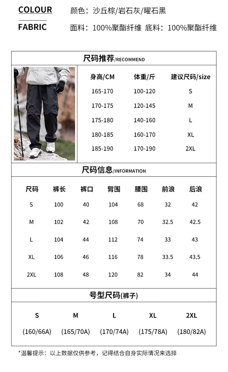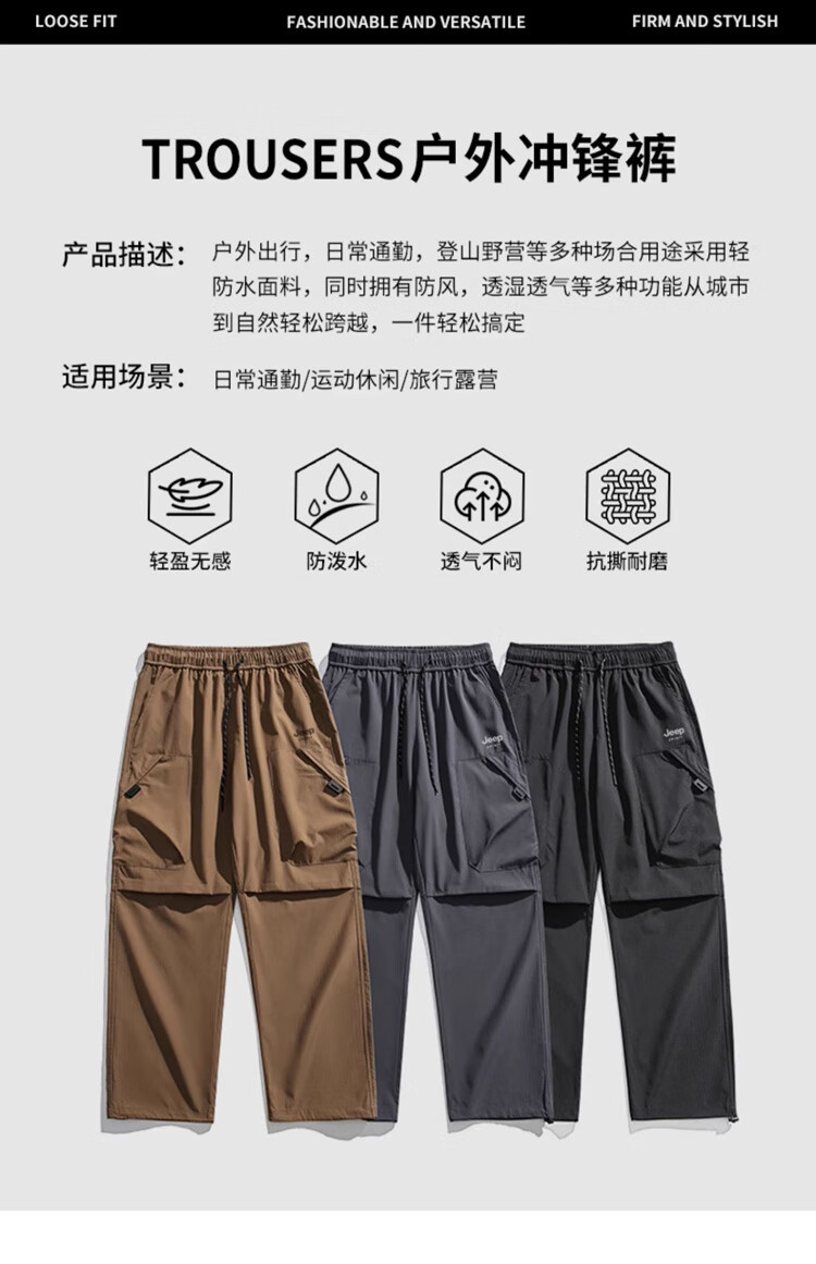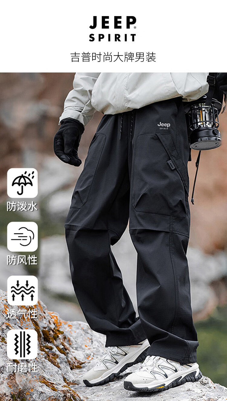 JEEP SPIRIT吉普冲锋裤男士裤子男款春秋季工装裤休闲裤直筒运动长裤