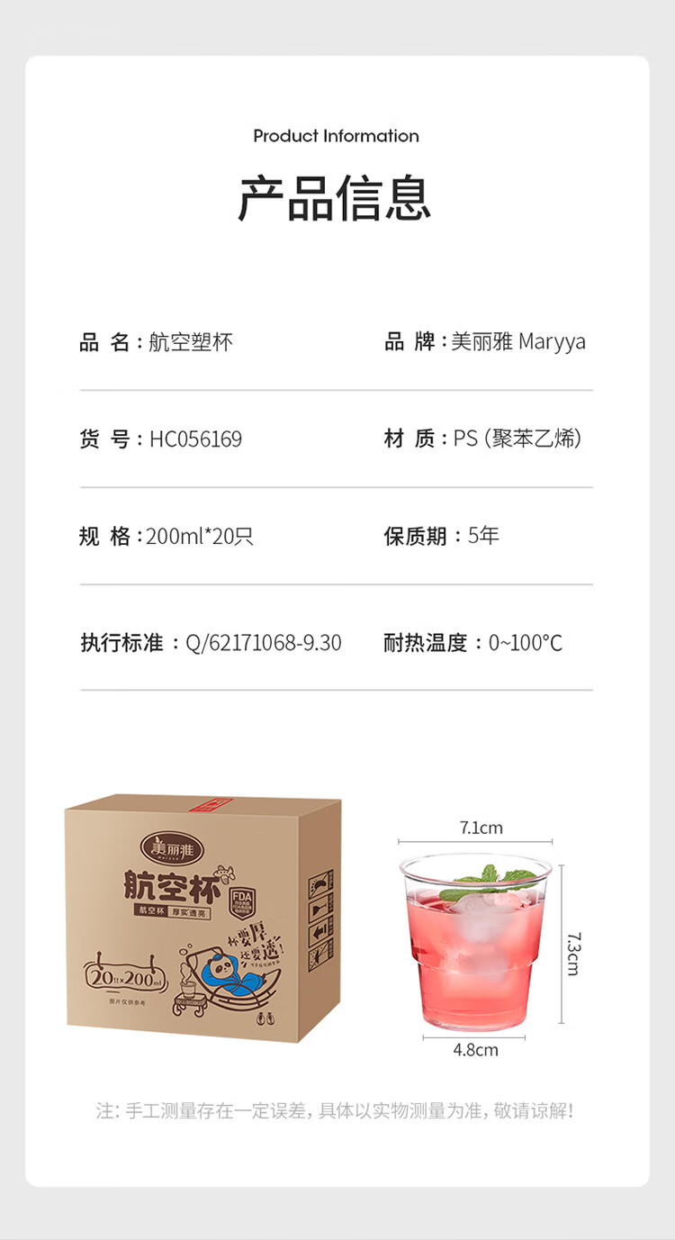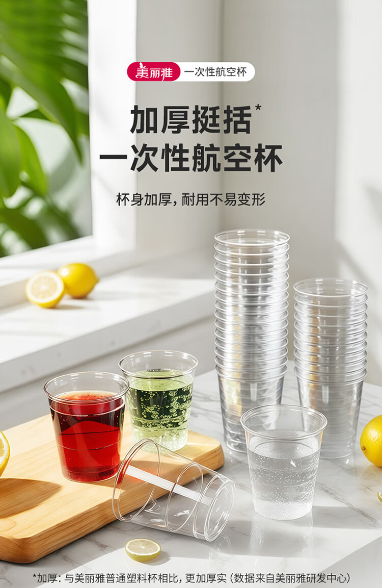 美丽雅一次性杯子航空杯 200ml*20只太空杯 加厚塑料饮料果汁茶水杯