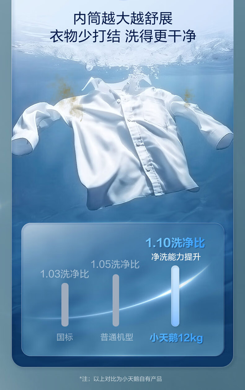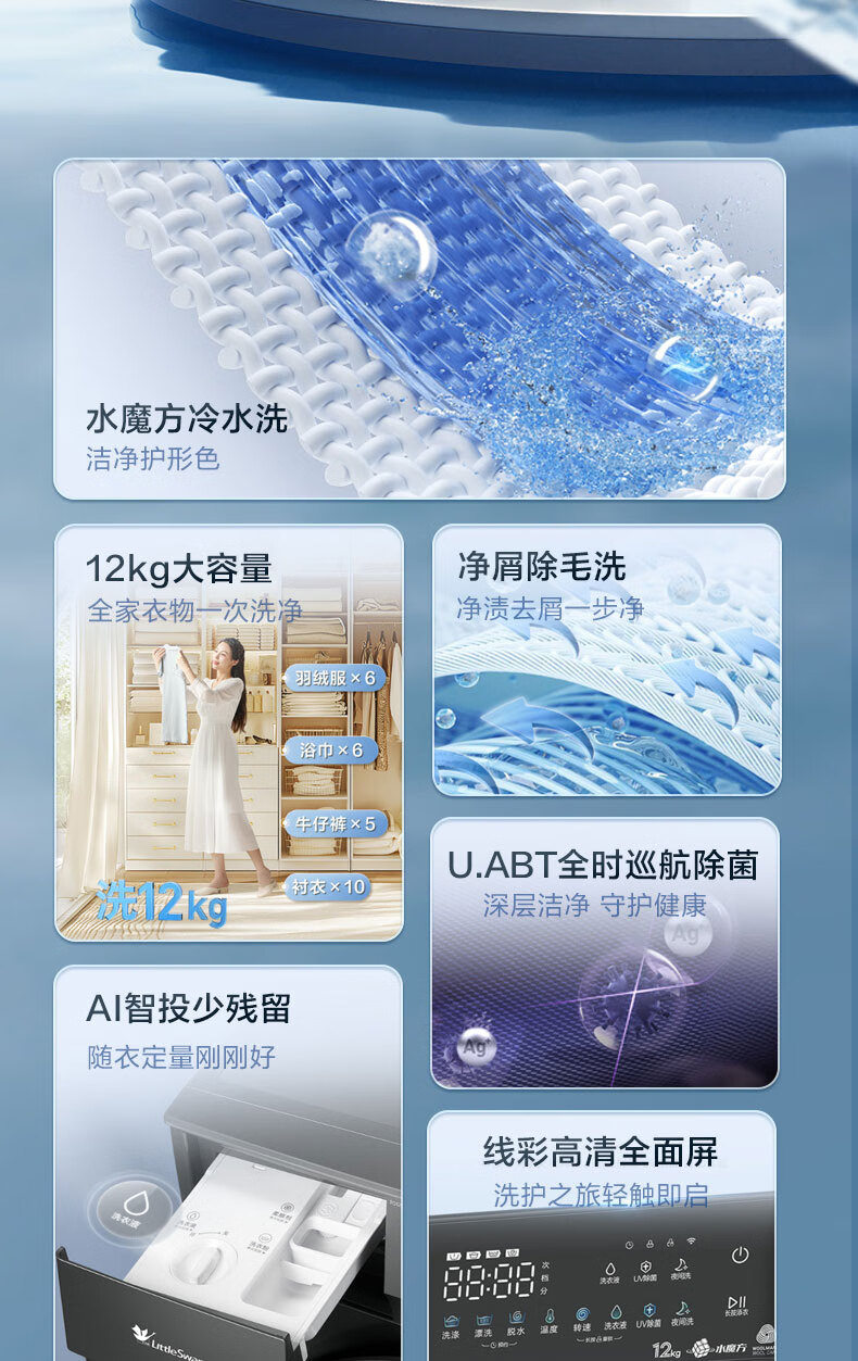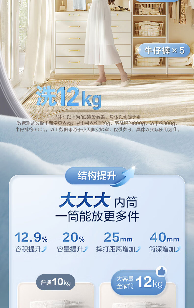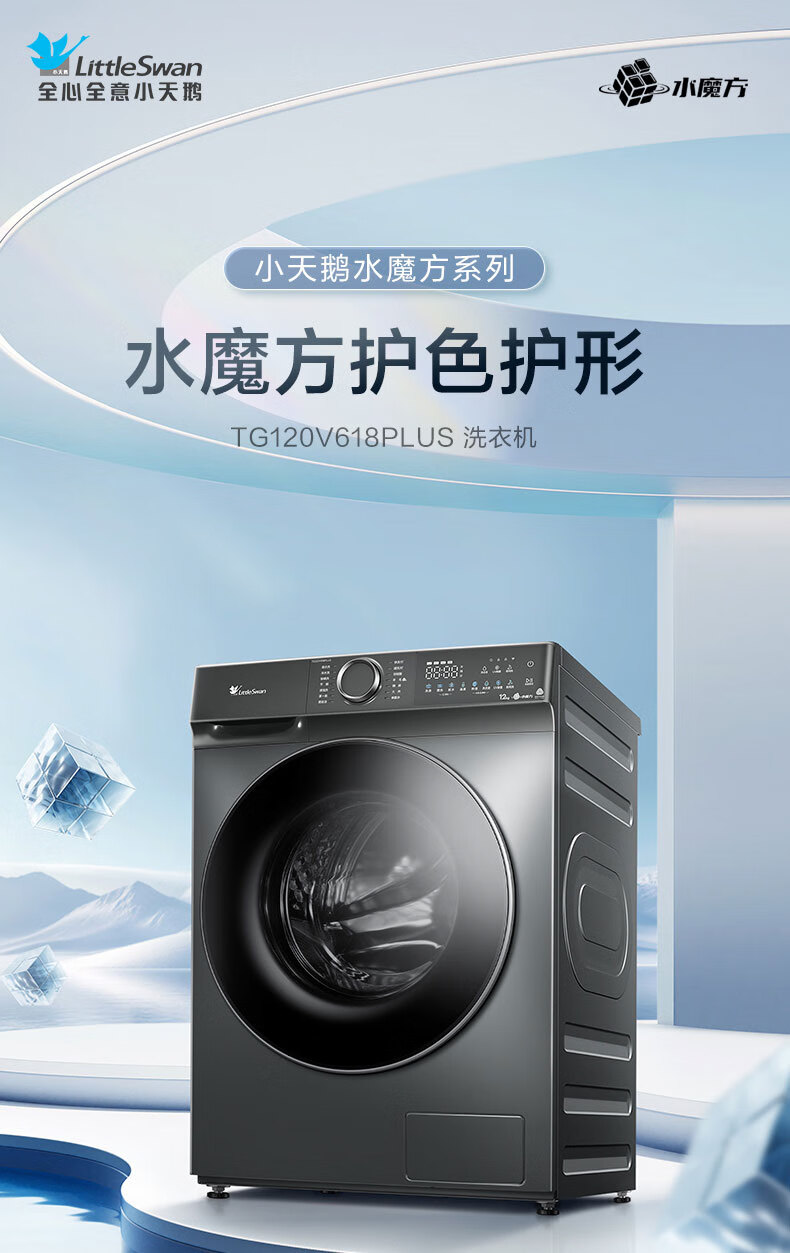 小天鹅(LittleSwan)12公斤大容量滚筒洗衣机全自动 水魔方护色护形 全时巡航除菌 1.1洗净比国家补贴20%一级能效 TG120V618PLUS